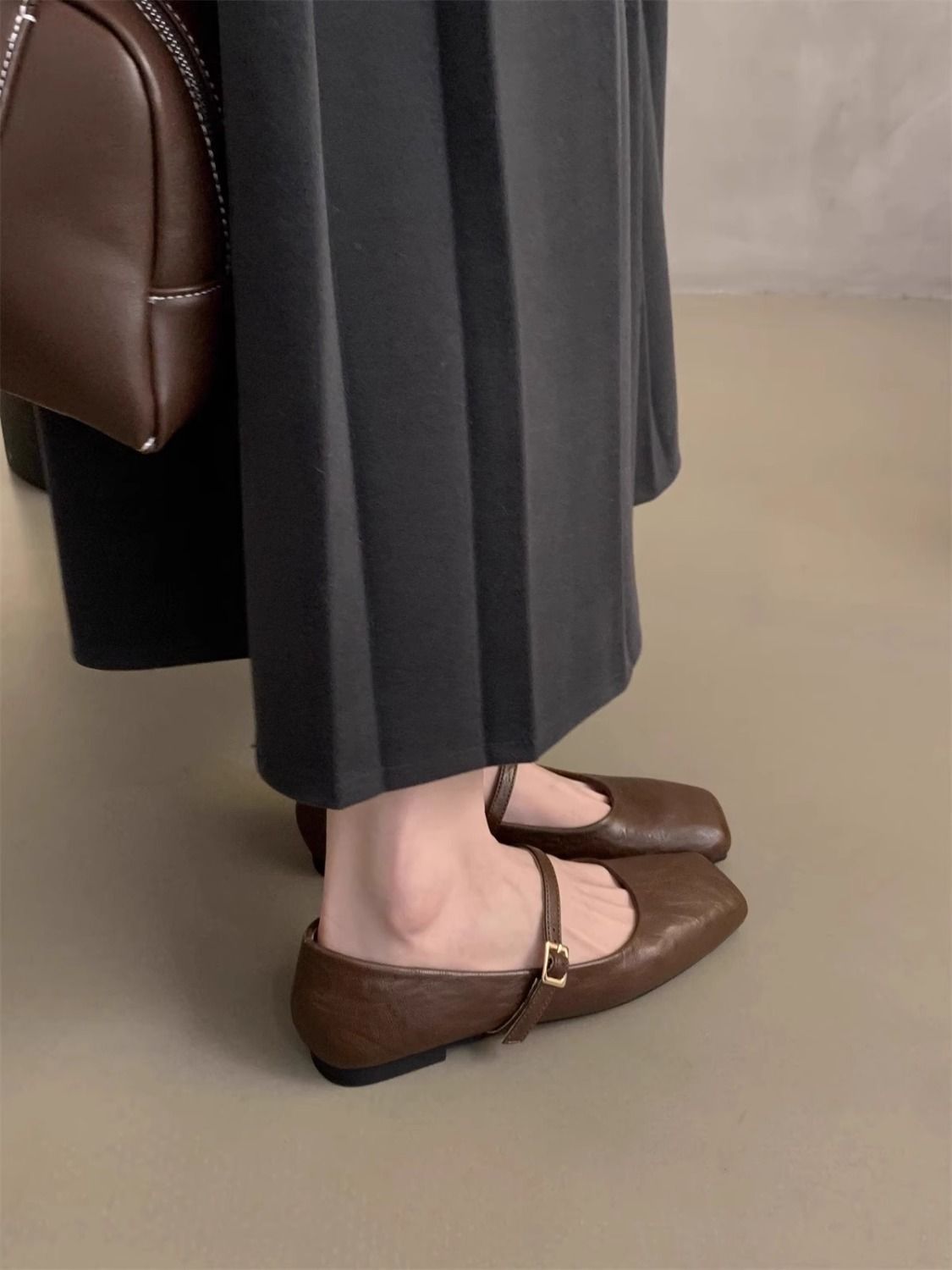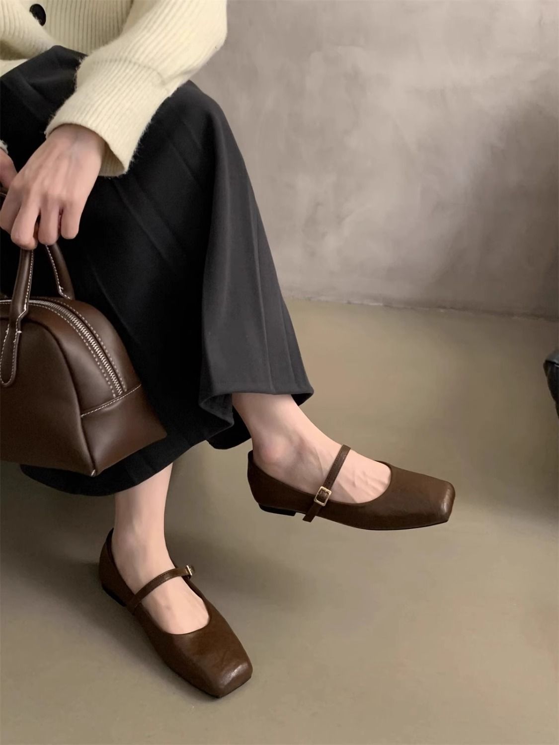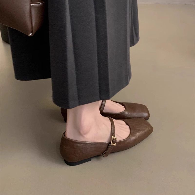棕色小皮鞋女英伦韩版复古休闲软皮一脚蹬乐福鞋平底休闲方头单鞋