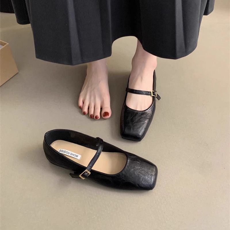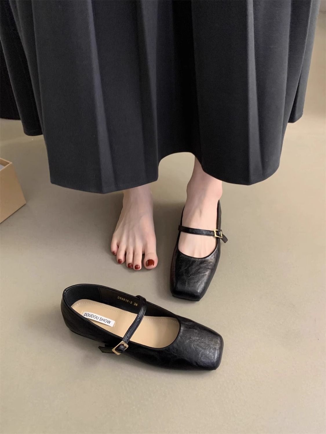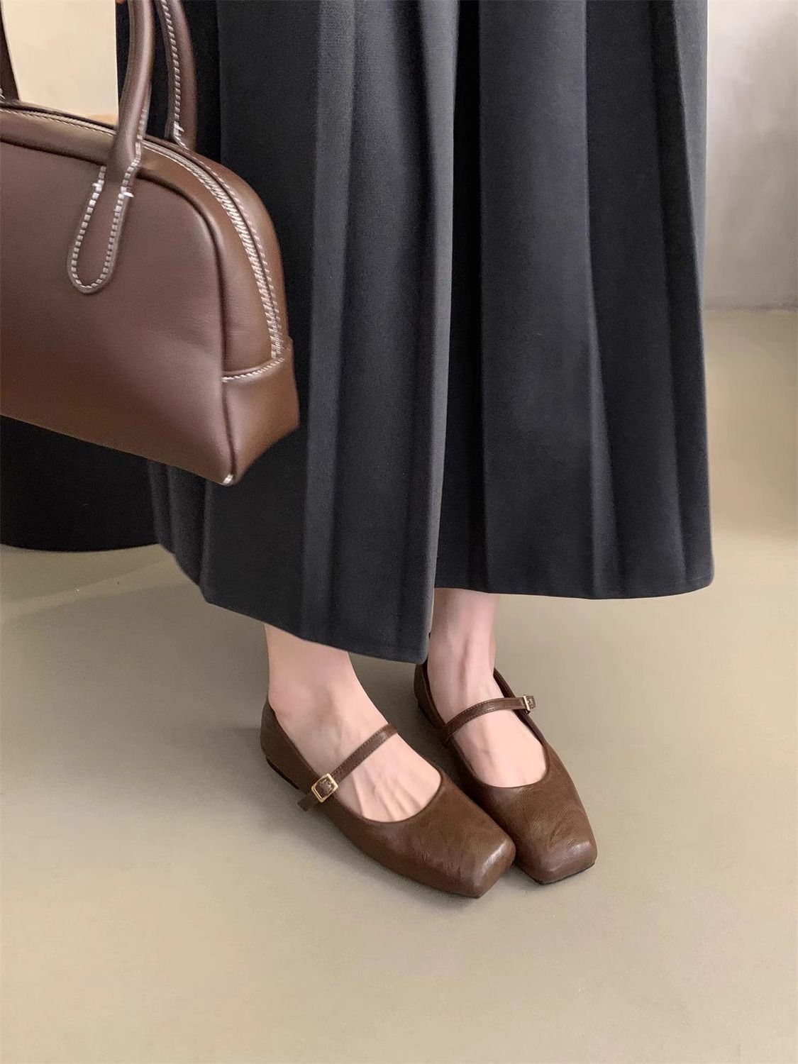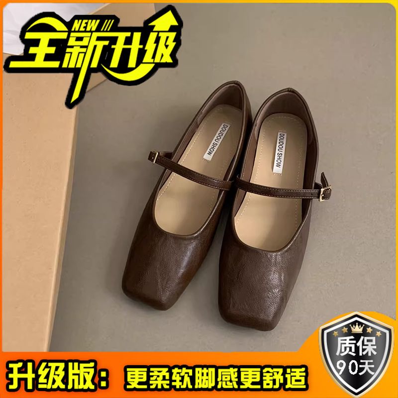 棕色小皮鞋女英伦韩版复古休闲软皮一脚蹬乐福鞋平底休闲方头单鞋