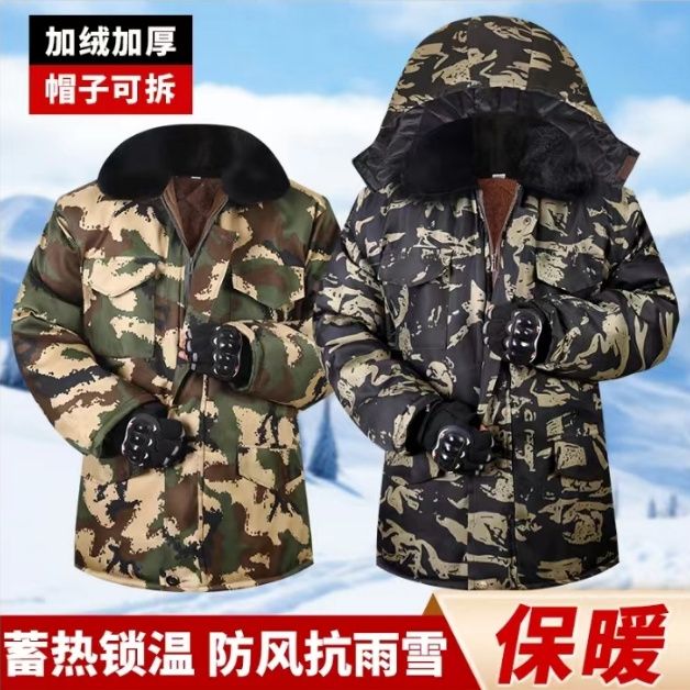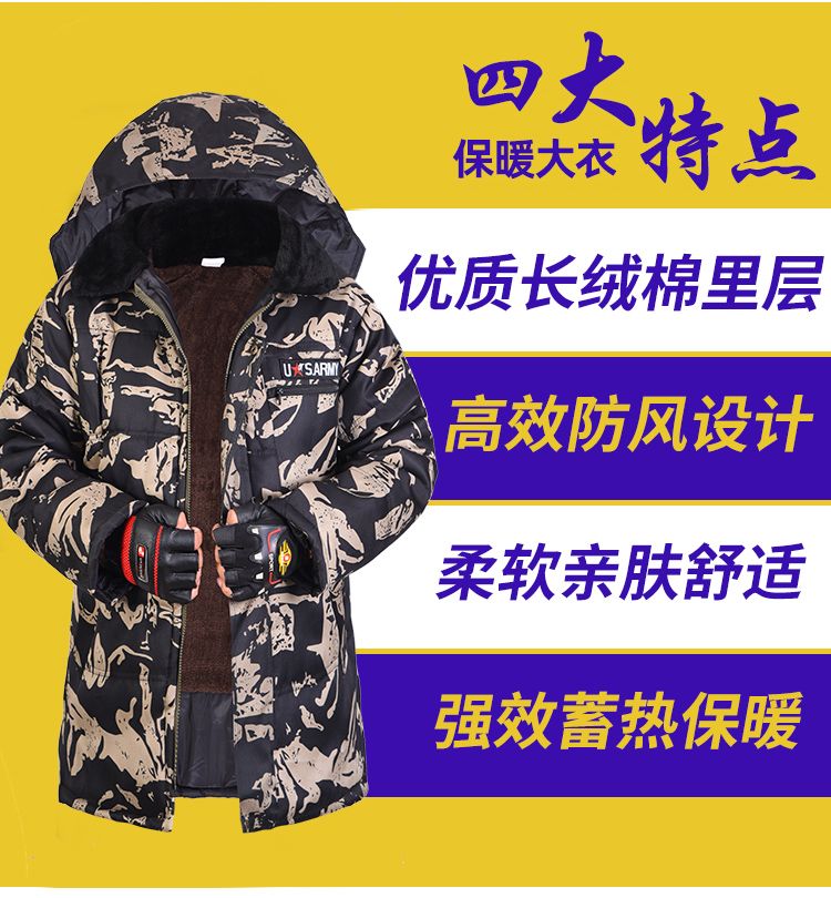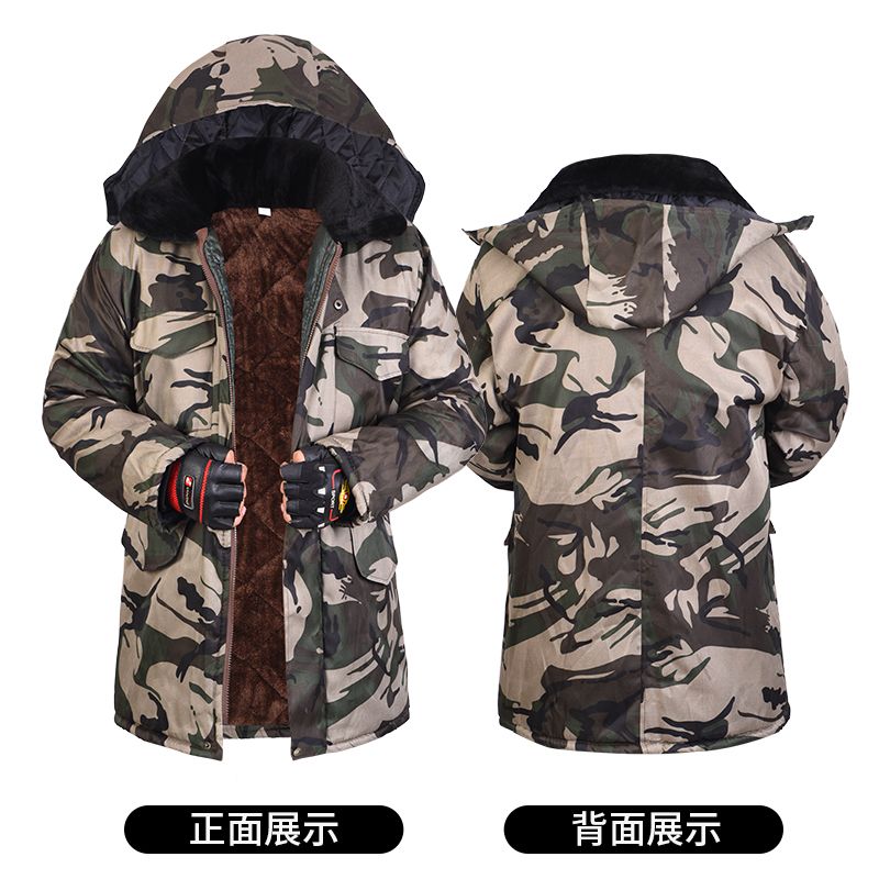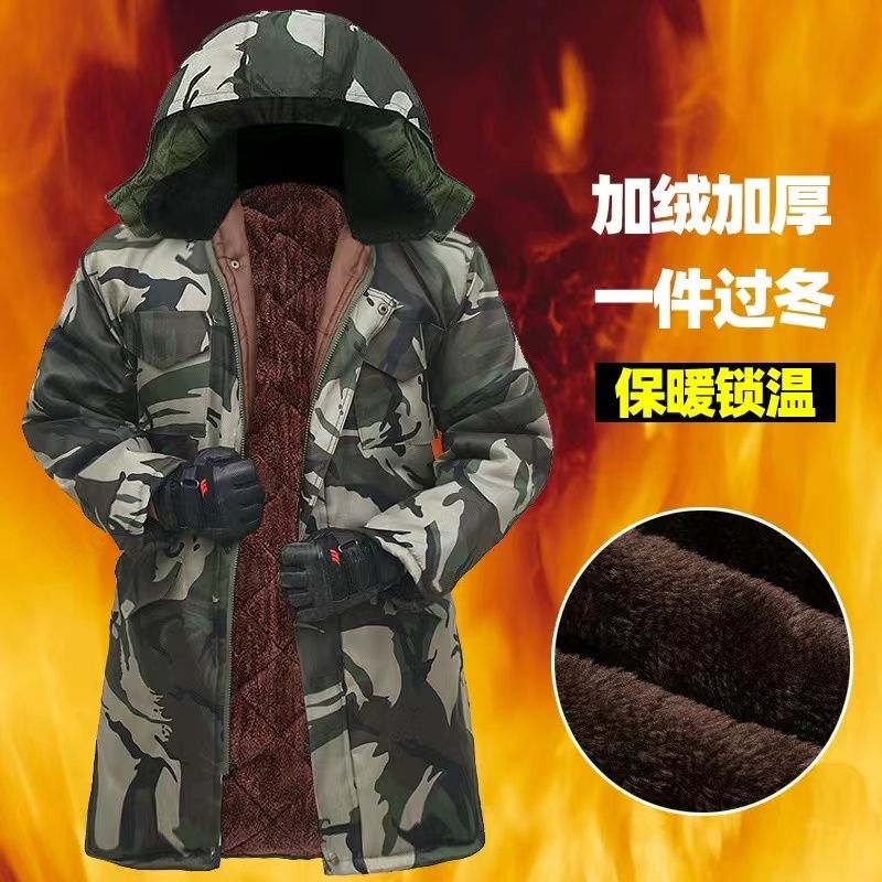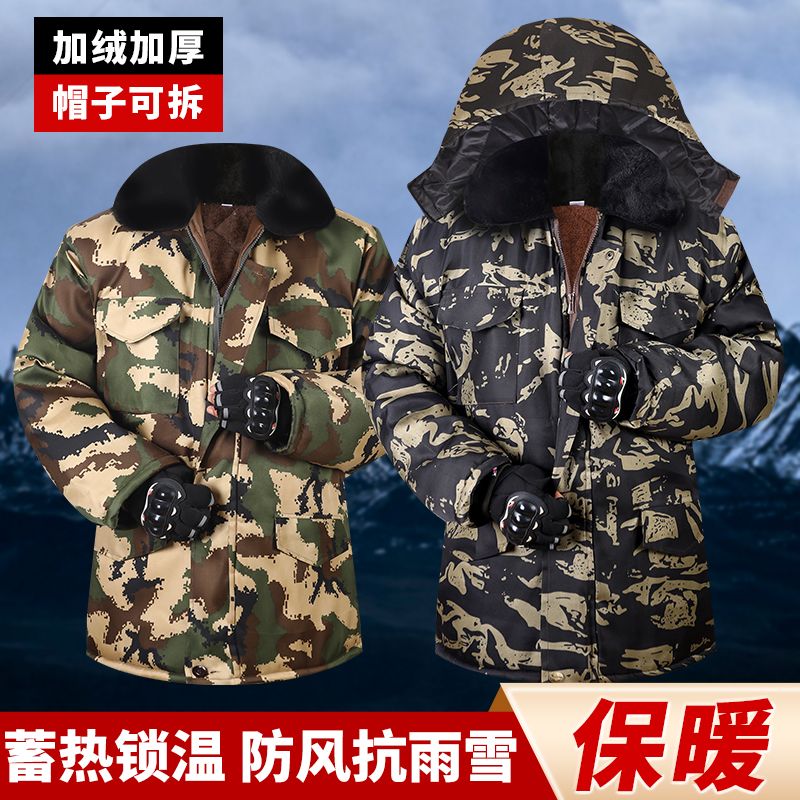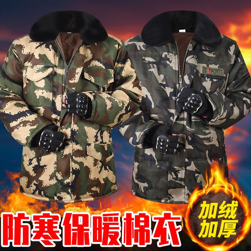 棉袄冬季棉衣加厚加绒棉服保暖耐脏劳保大衣男士加肥加大迷彩外套