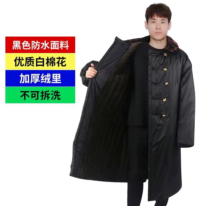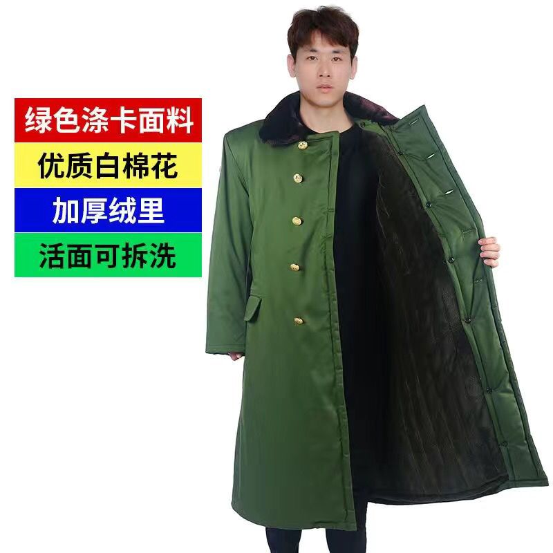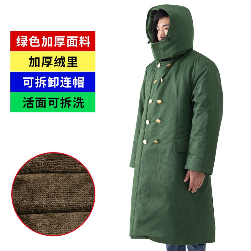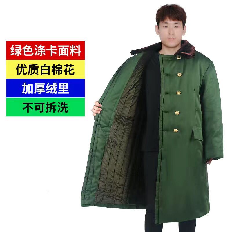 棉大衣冬季男女加厚长款冷库老保安东北绿黄大衣洗防寒工作服棉袄
