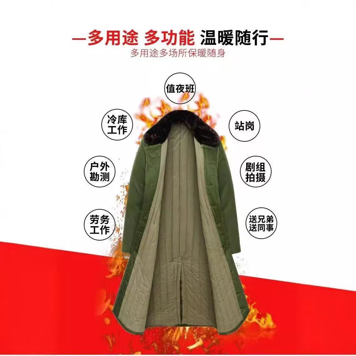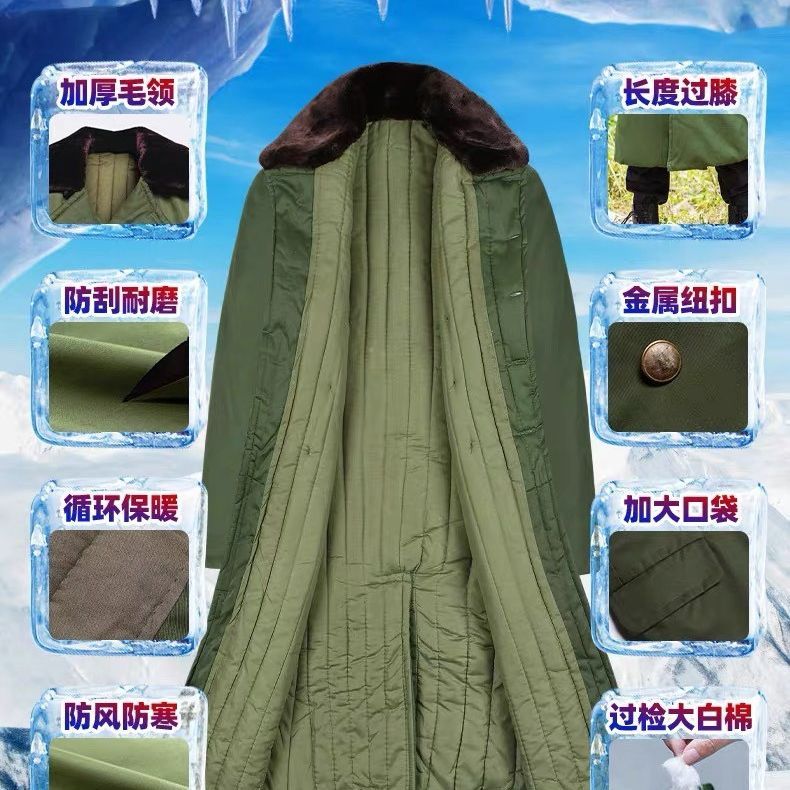 正版军大衣清仓加厚长款冷库防寒零下棉服男女老式军绿东北棉袄