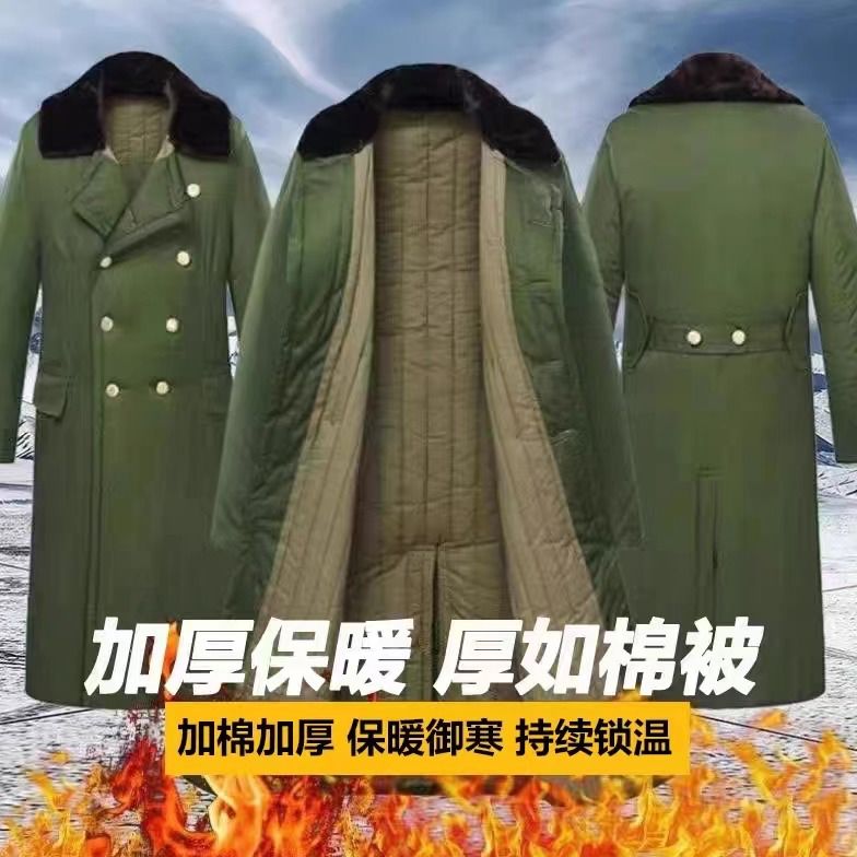 防寒棉花加绒棉里冬季绿军大衣加长款加厚加长东北特厚棉袄防冻