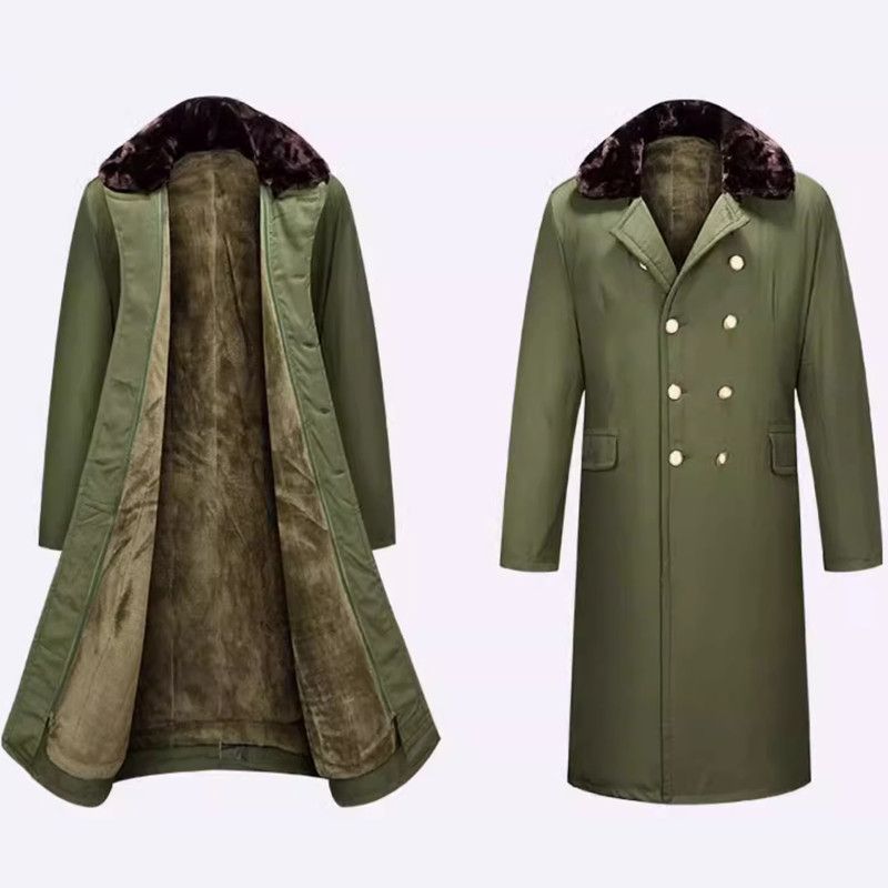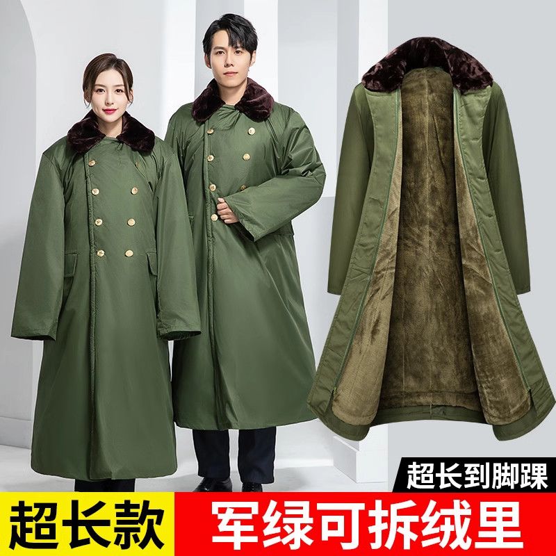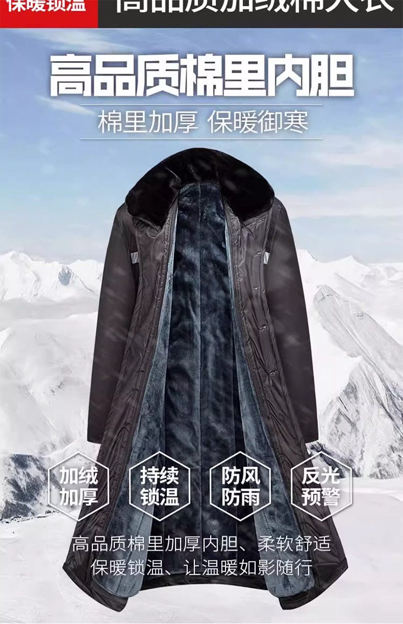 军大衣冬季户外加绒加厚防风保暖劳保棉服冷库加长防寒服东北棉袄