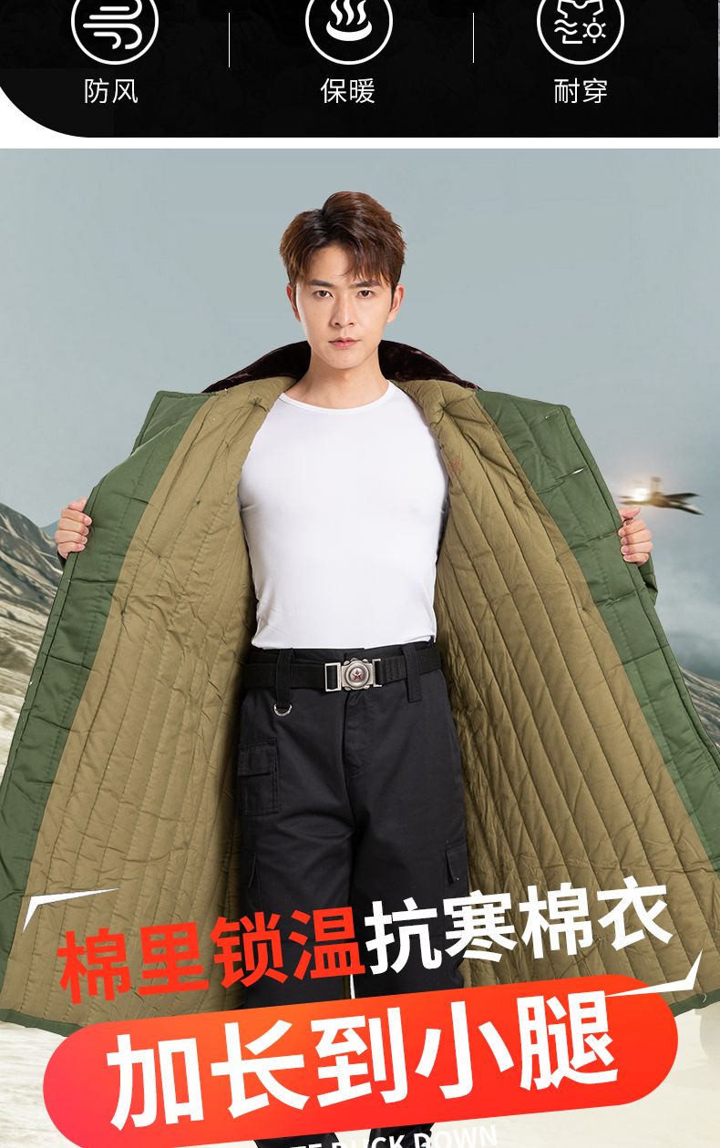 新款军大衣男冬季加厚长款女零下防寒服东北棉袄老式军棉绿大衣