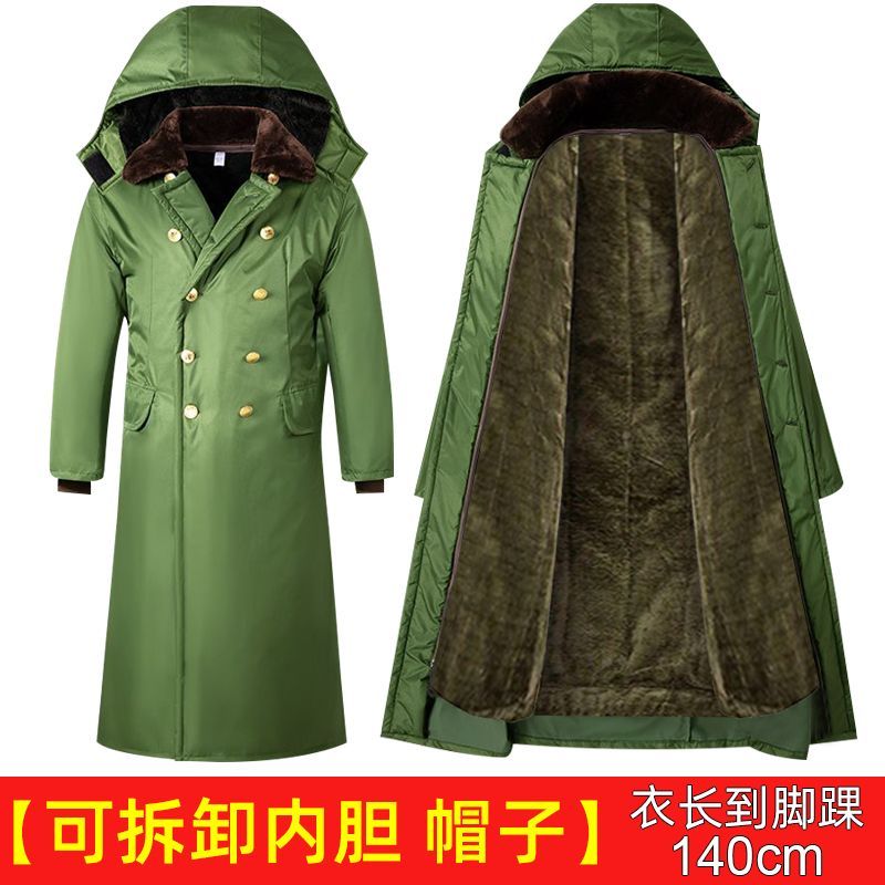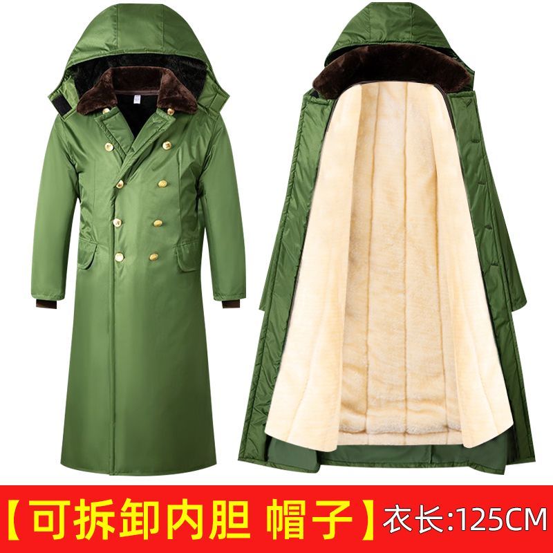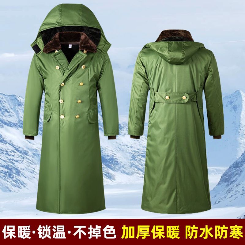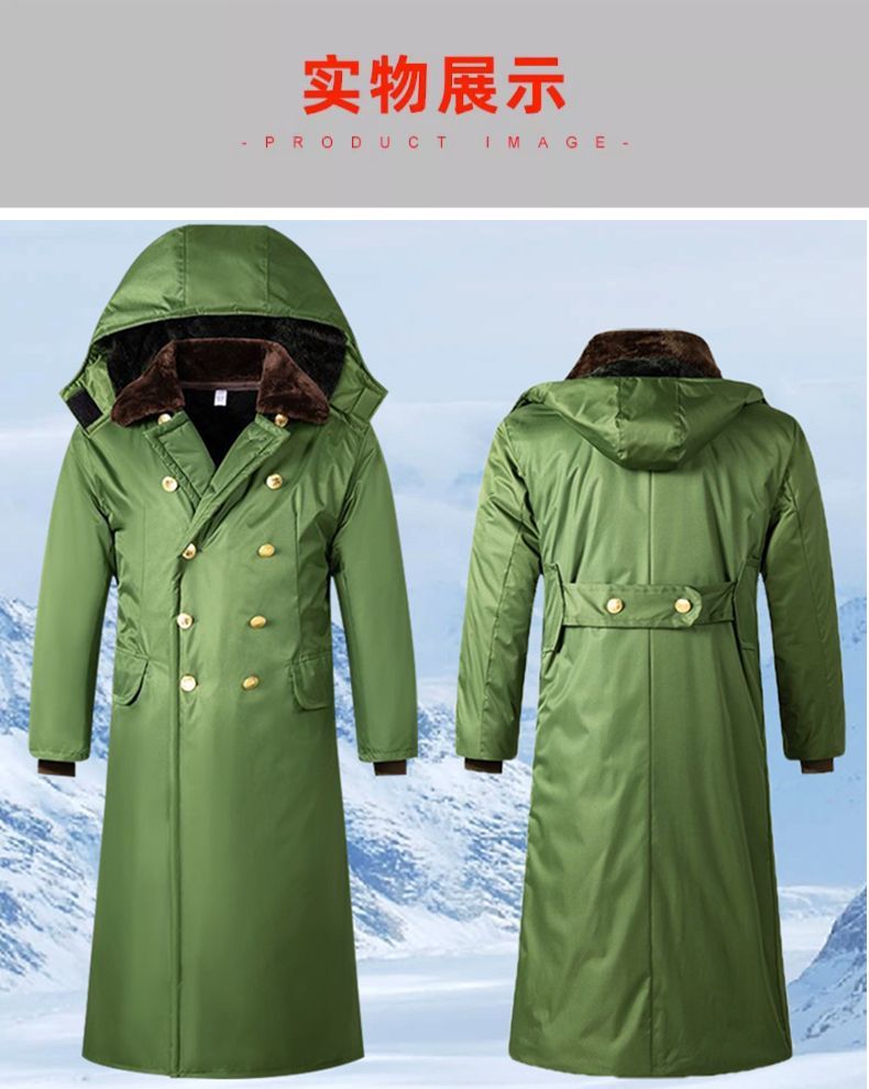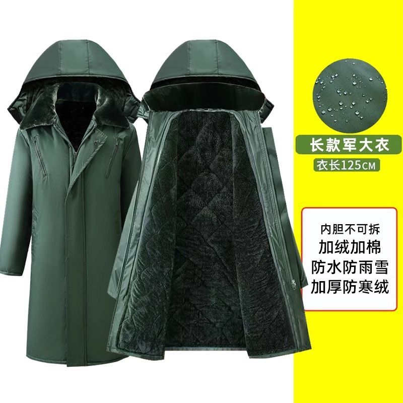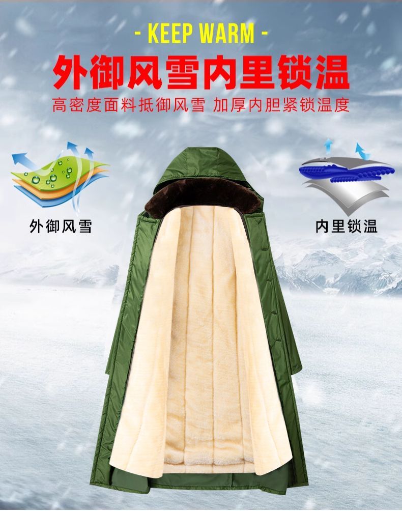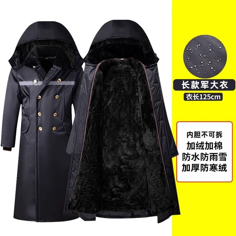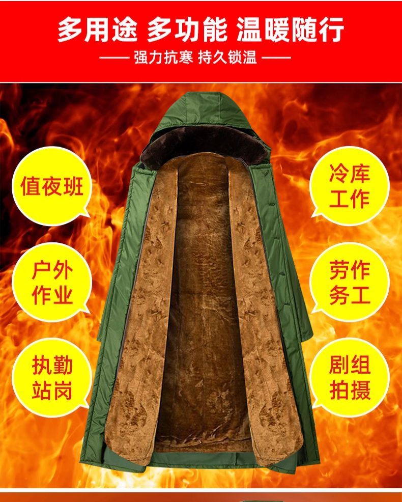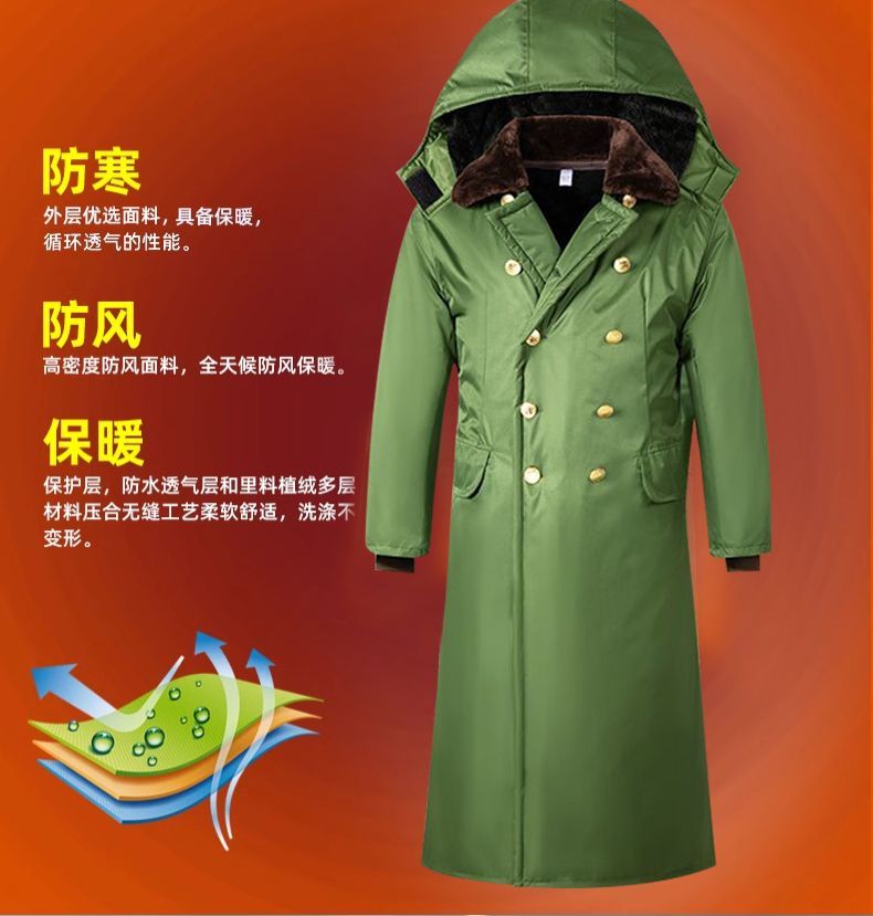 军大衣冬季长款加厚保暖防寒服冷库棉衣带帽反光条内胆可拆卸棉服