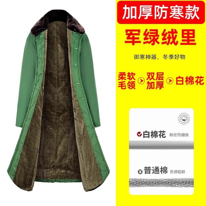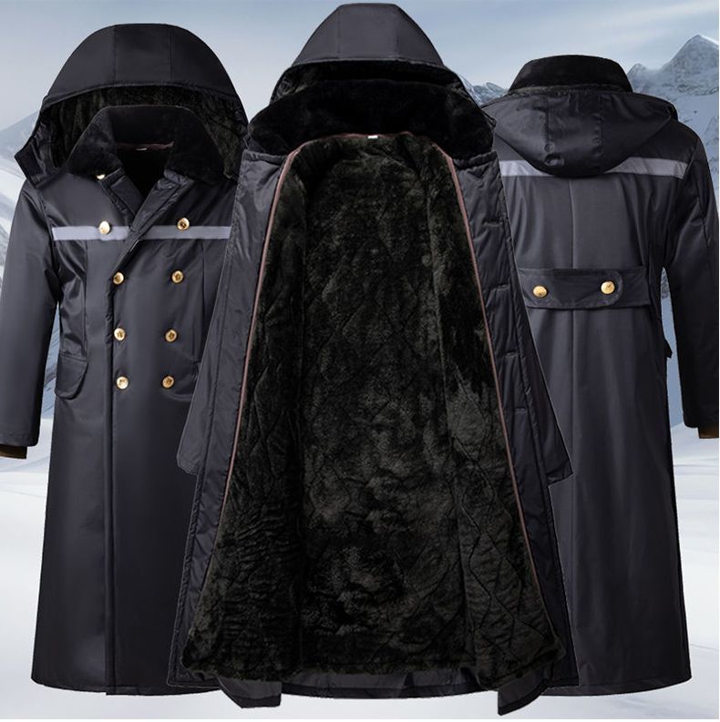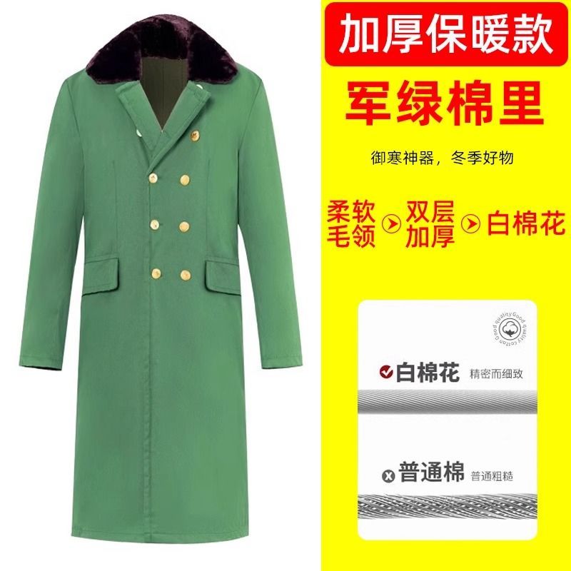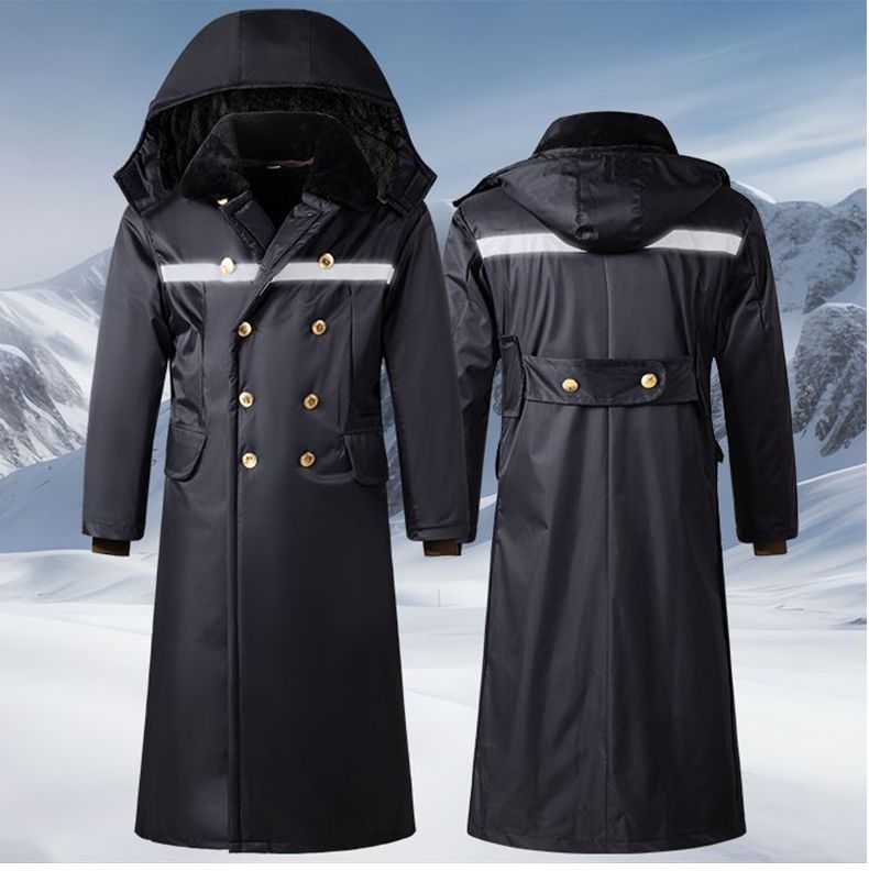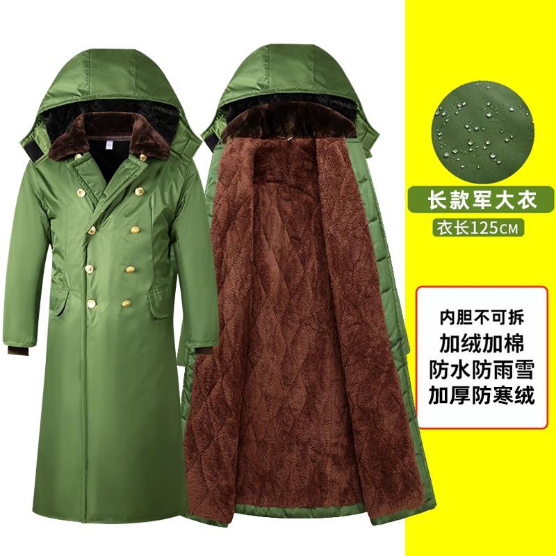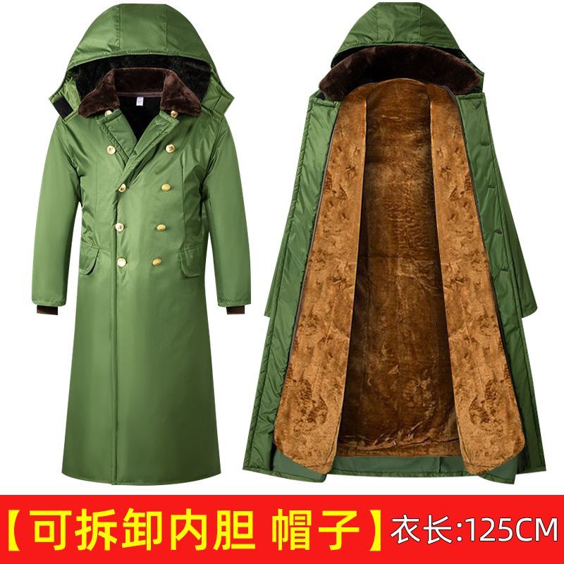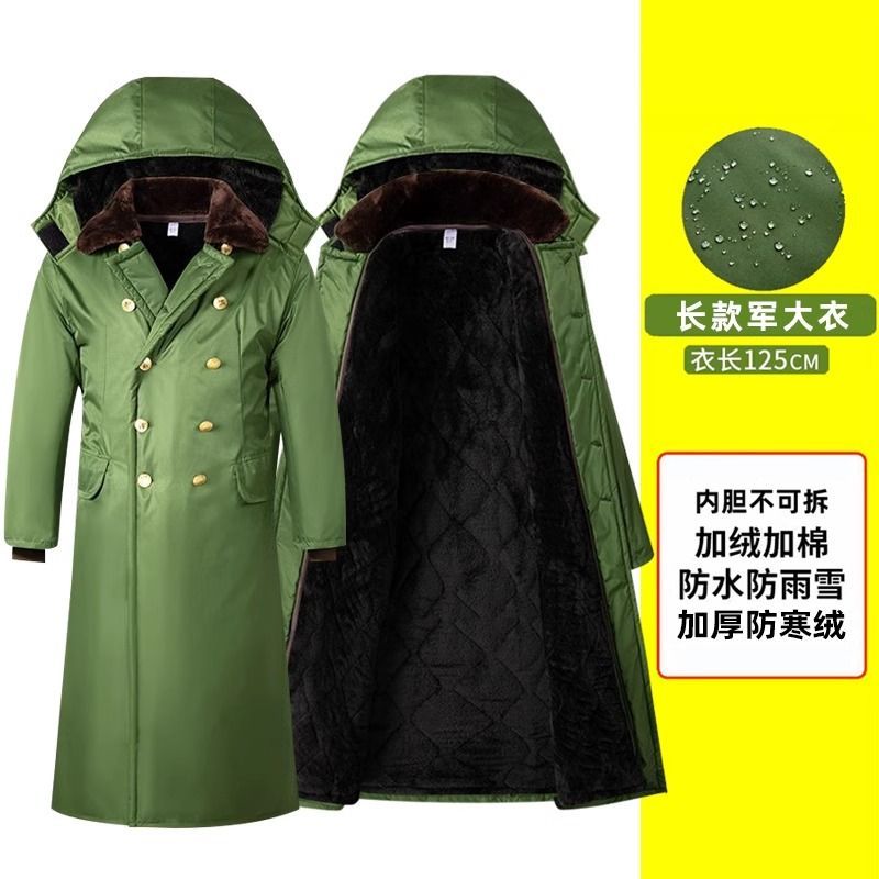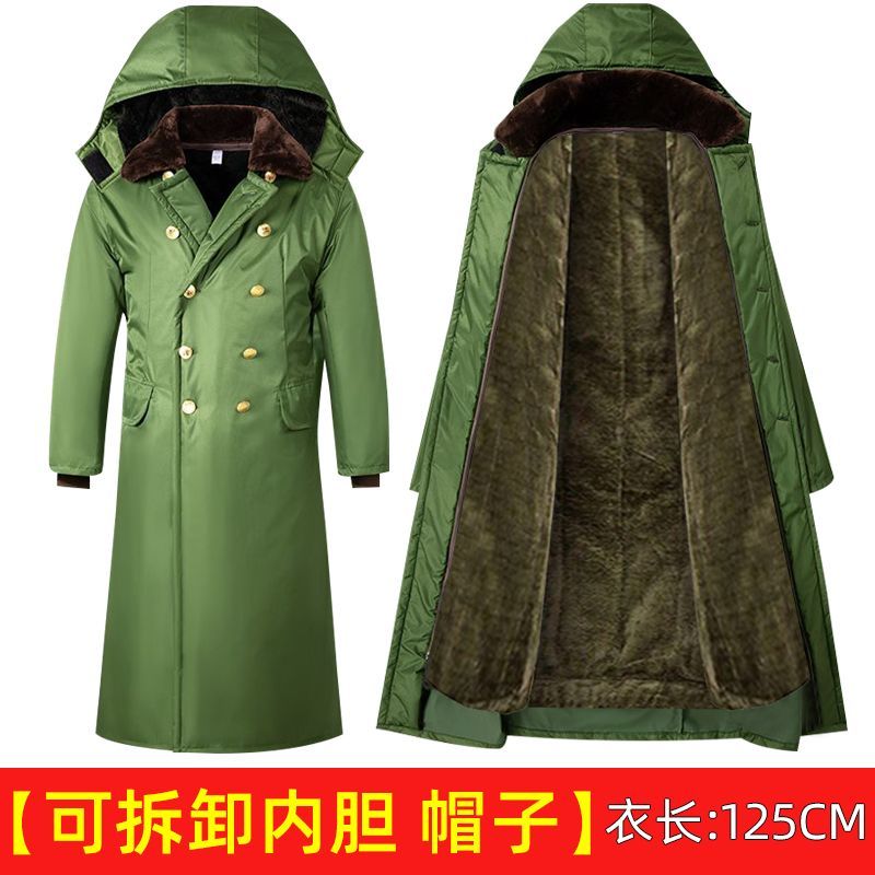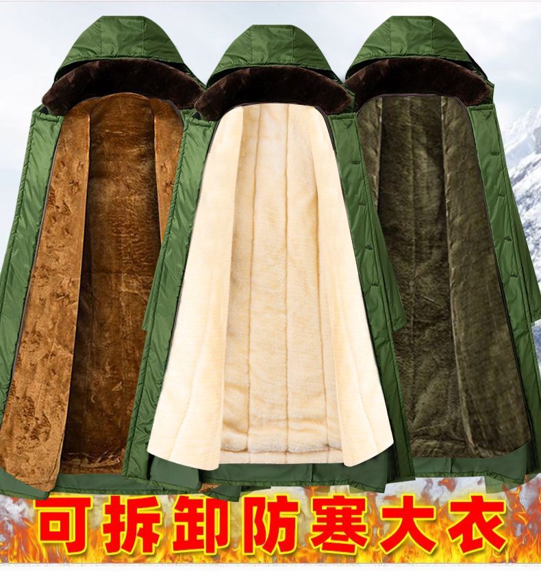 军大衣冬季长款加厚保暖防寒服冷库棉衣带帽反光条内胆可拆卸棉服