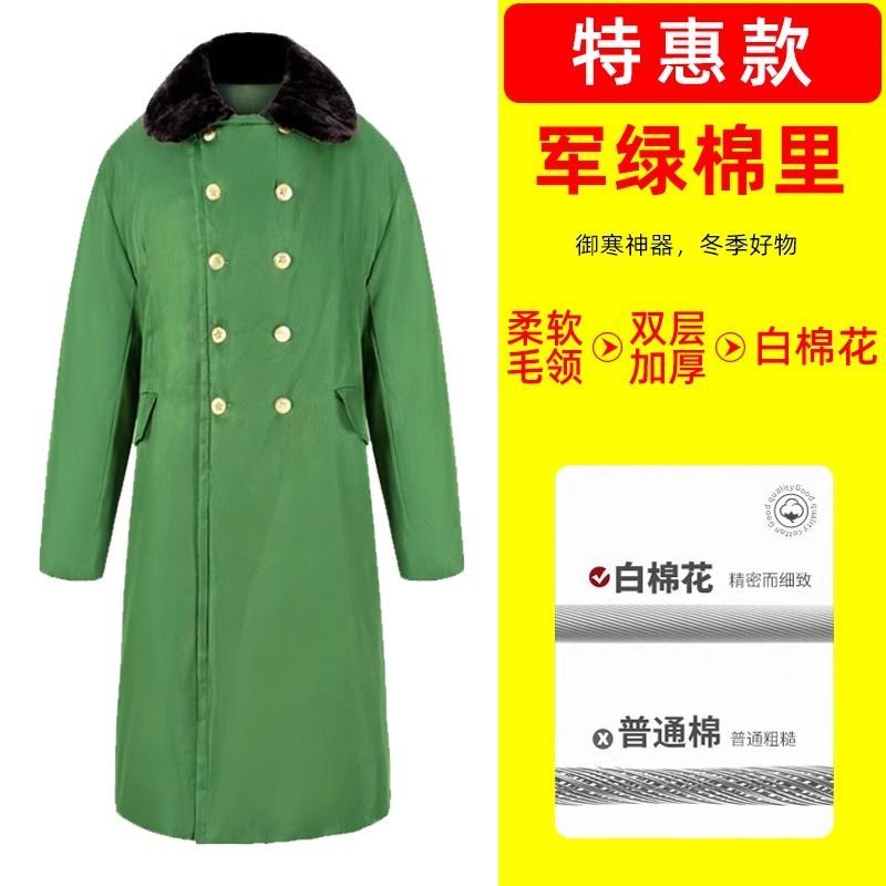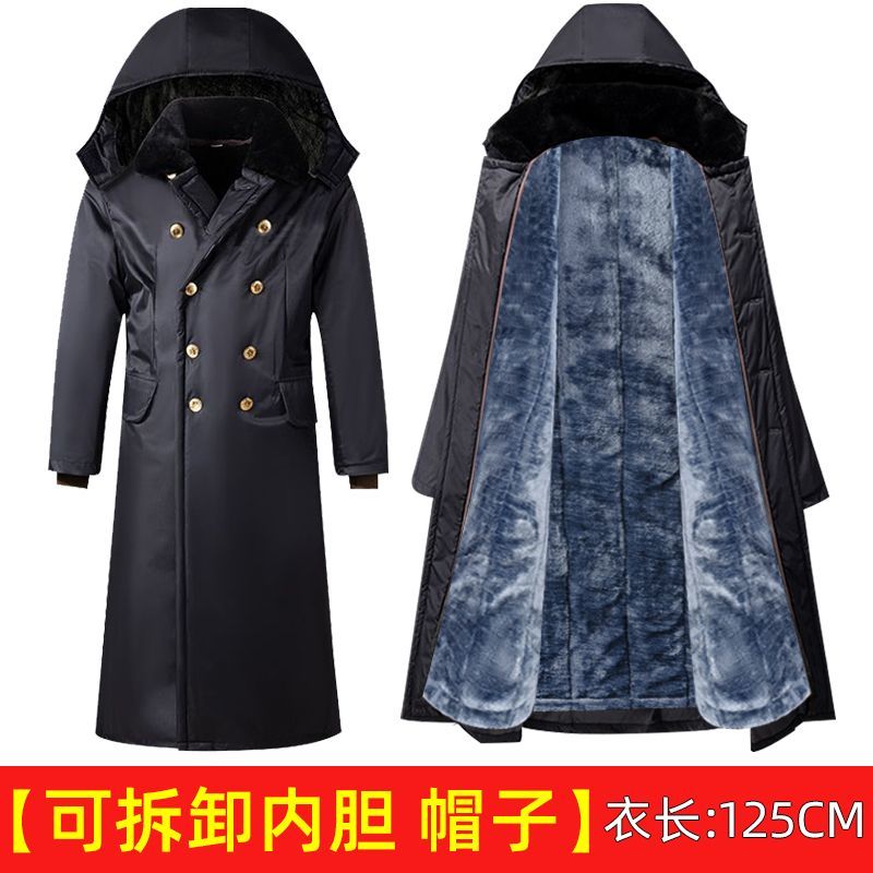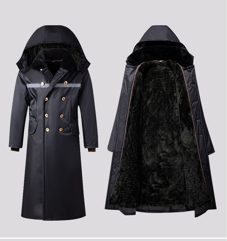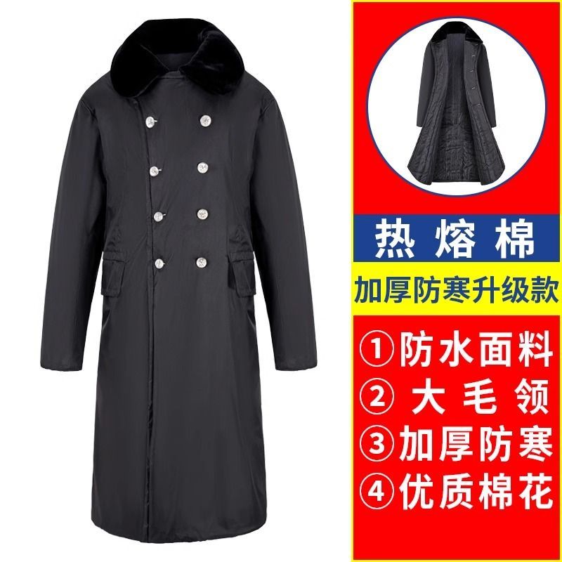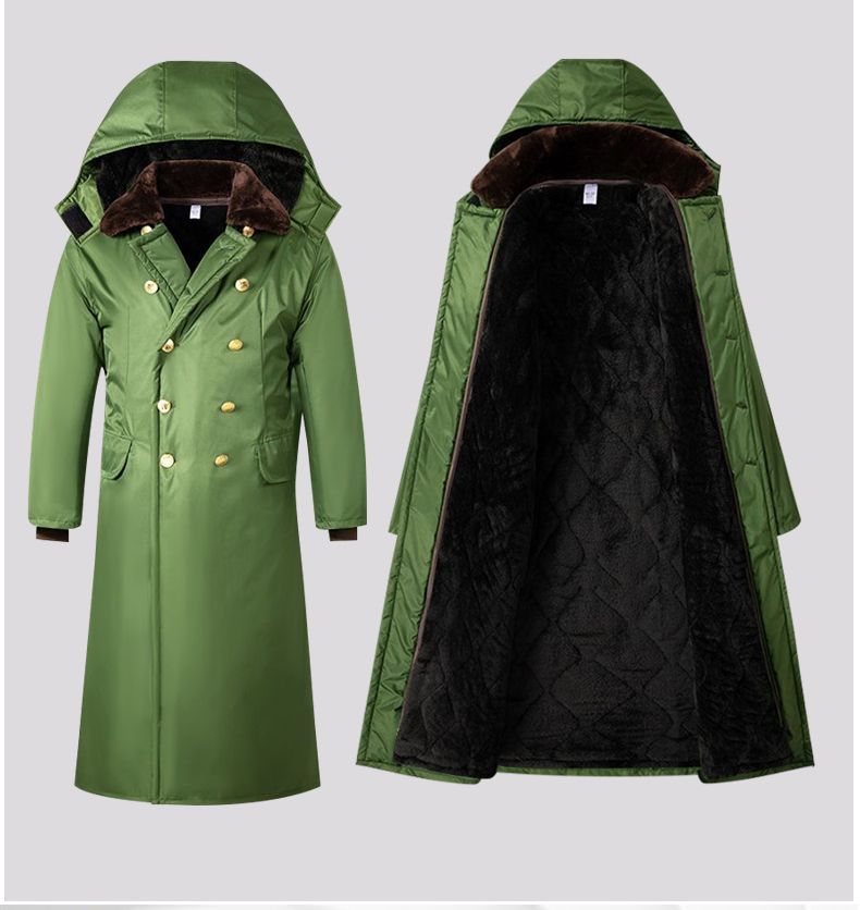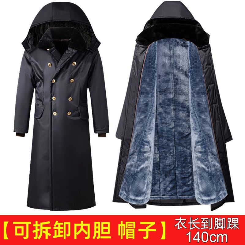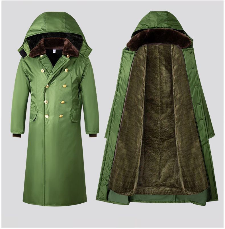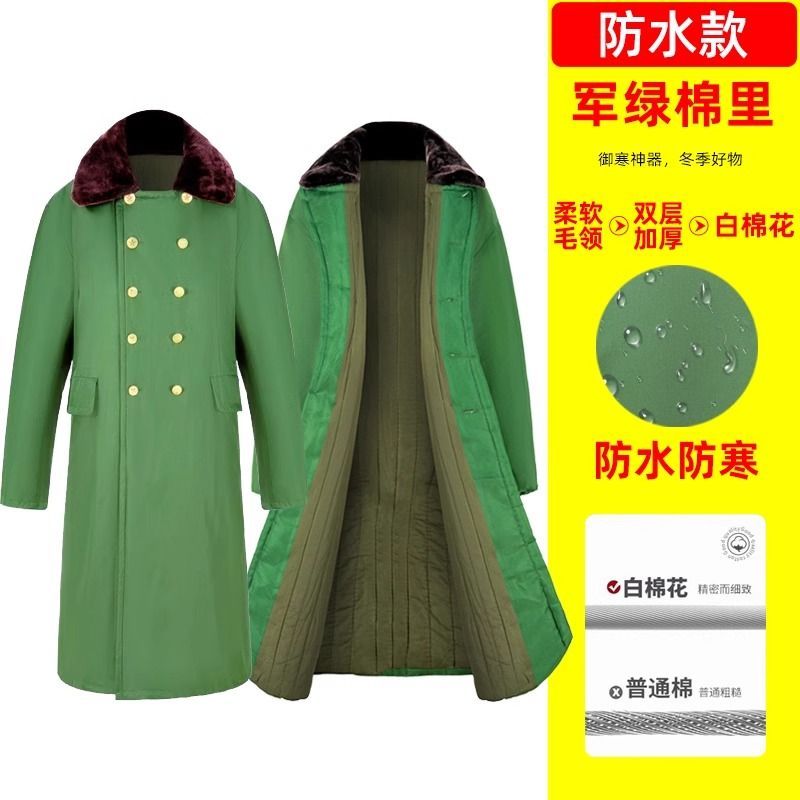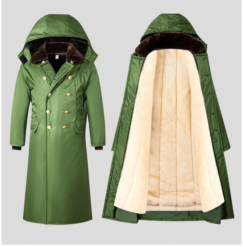 军大衣冬季长款加厚保暖防寒服冷库棉衣带帽反光条内胆可拆卸棉服