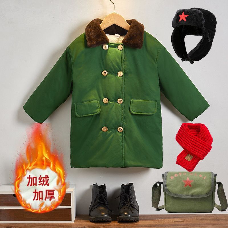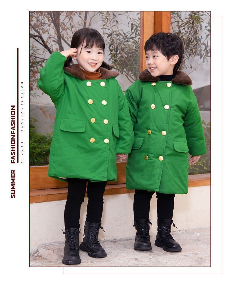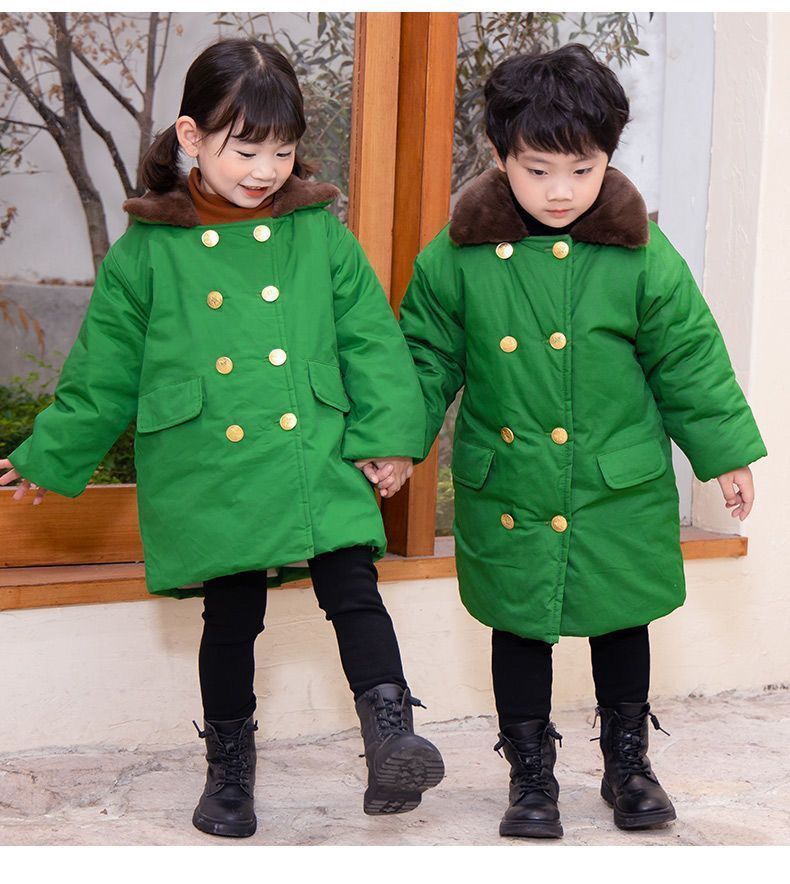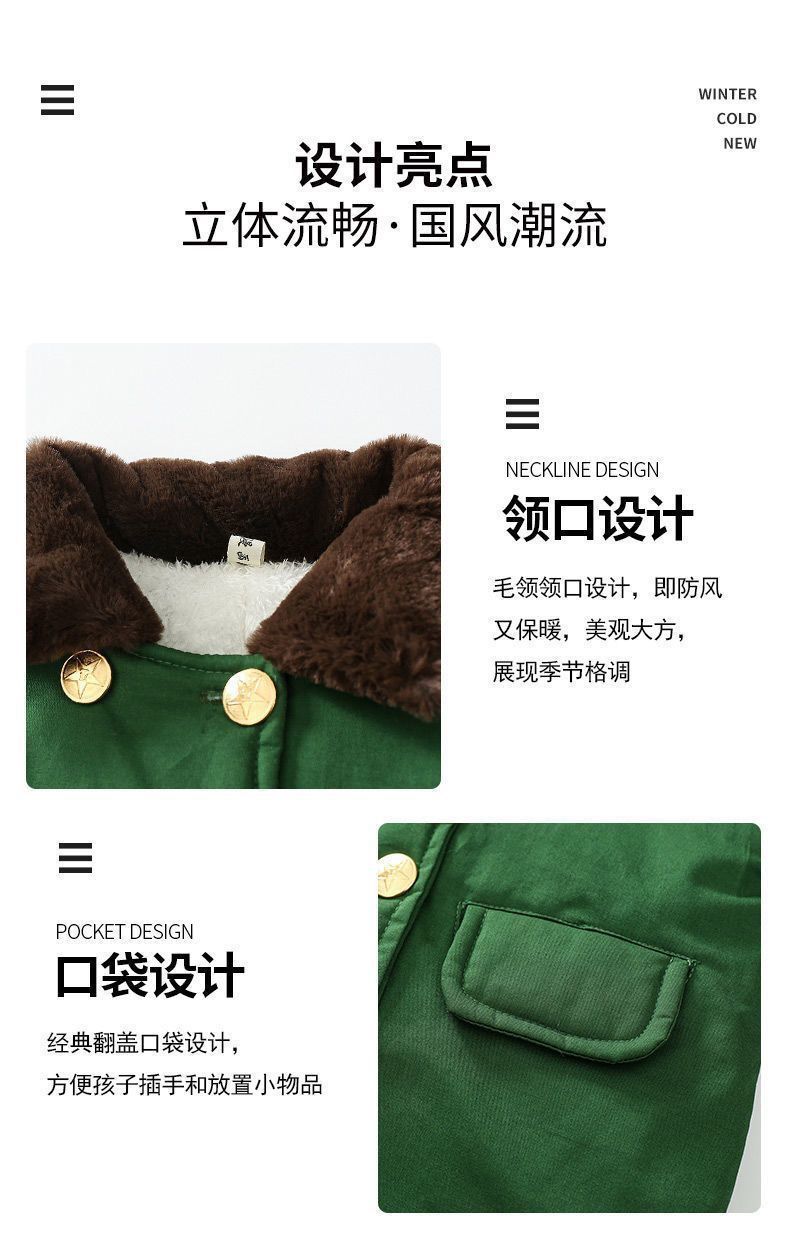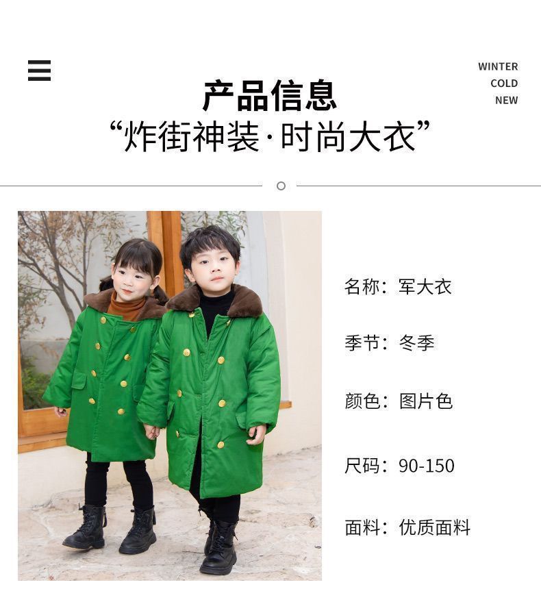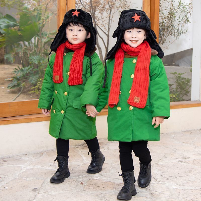 儿童军大衣加棉加厚保暖冬季中长款军绿色男女宝宝棉衣加绒军大衣