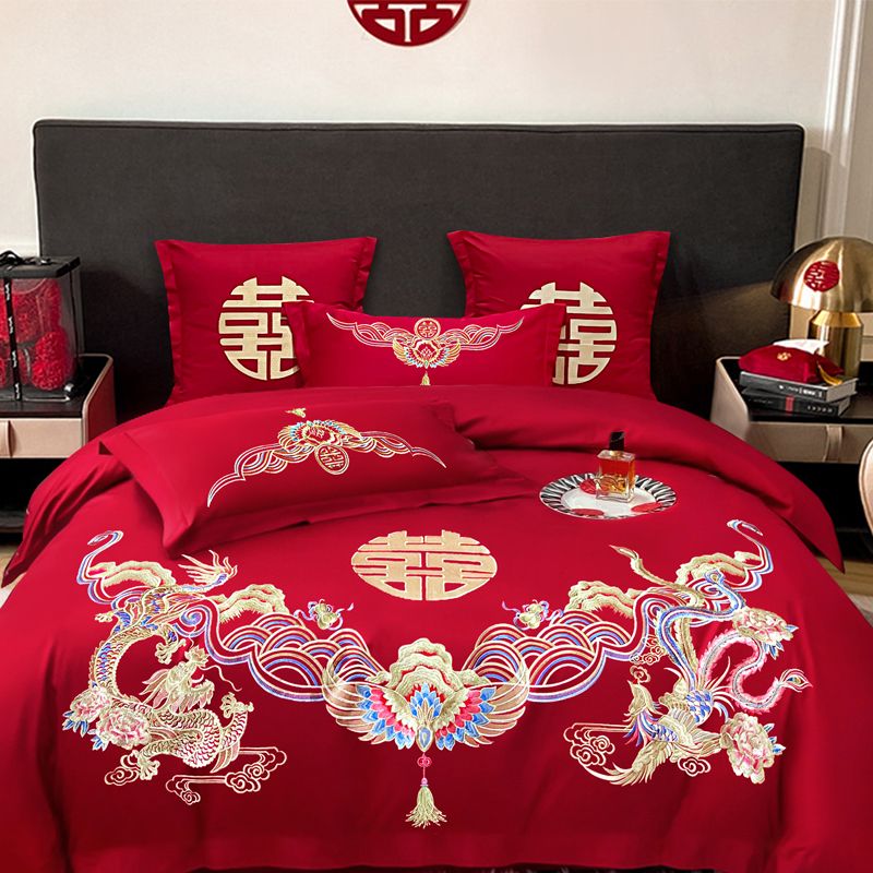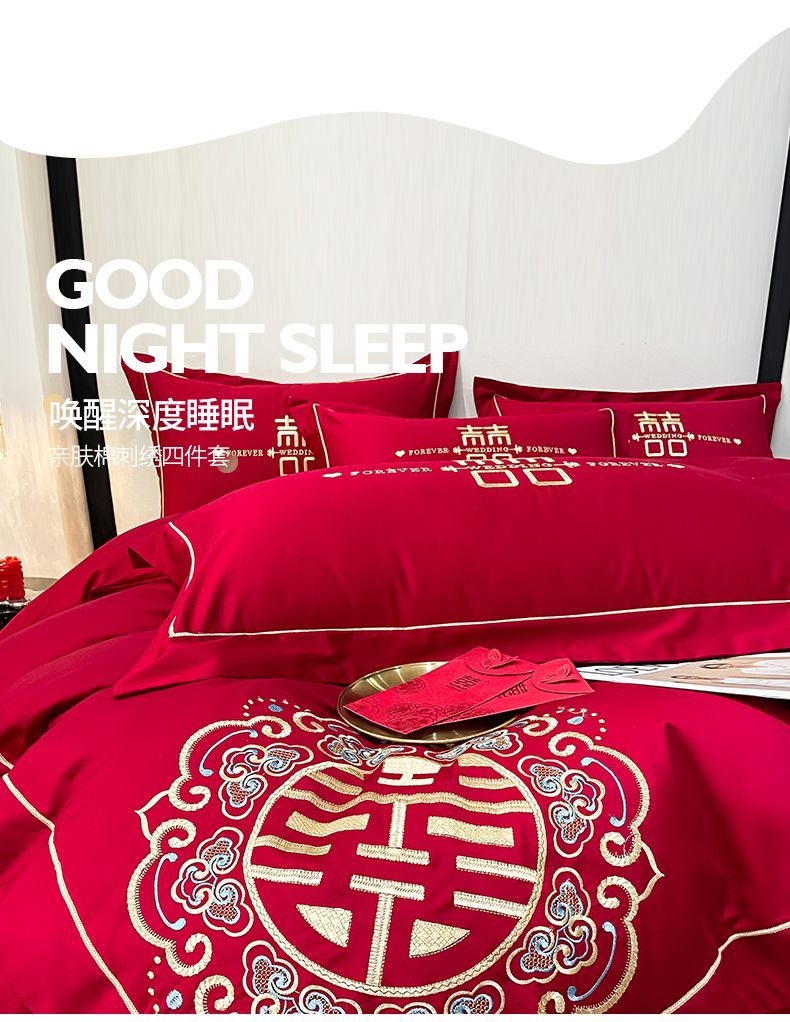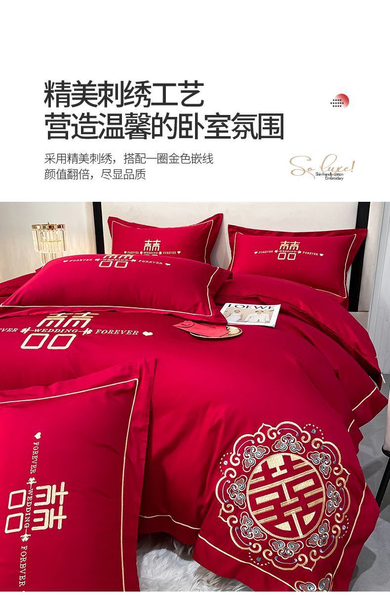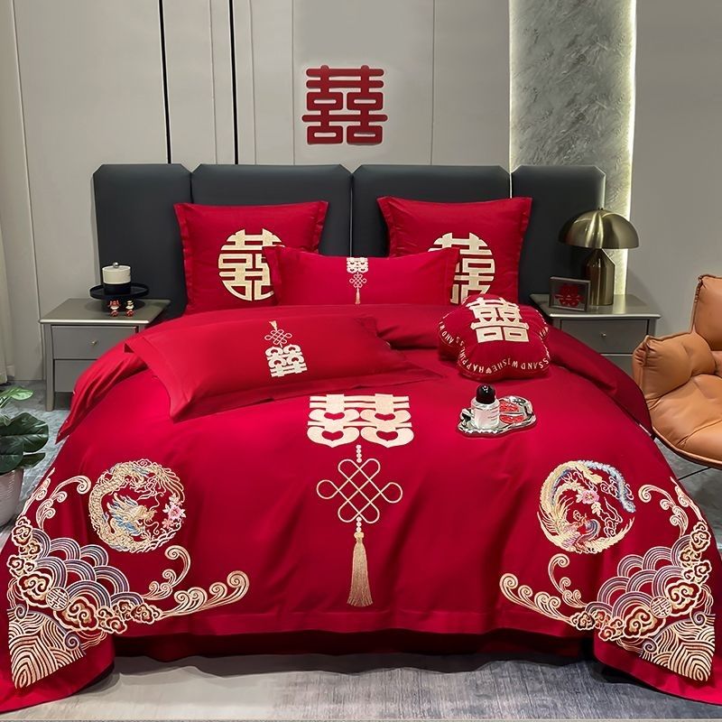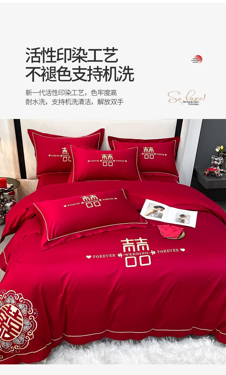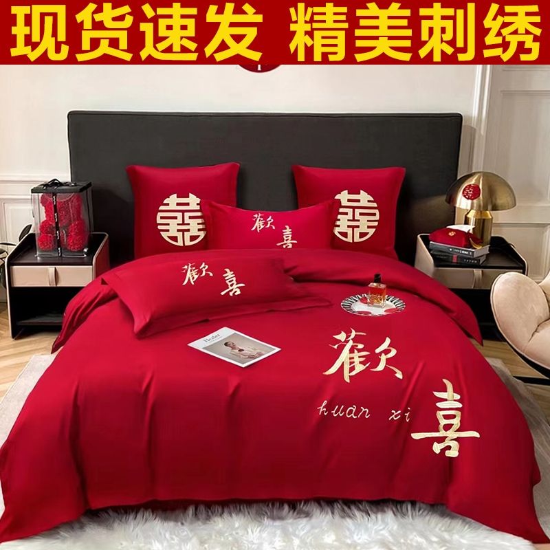中式婚庆四件套大红色新婚刺绣被套结婚陪嫁喜庆喜被套件床上用品