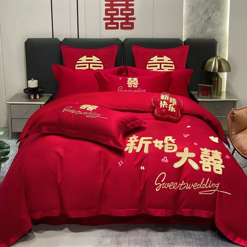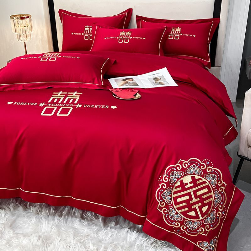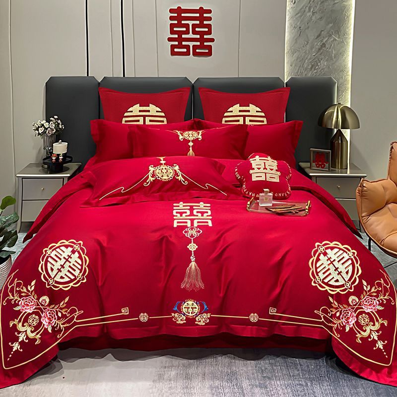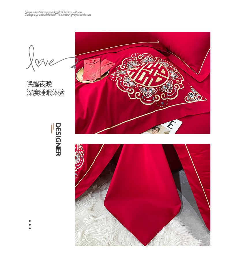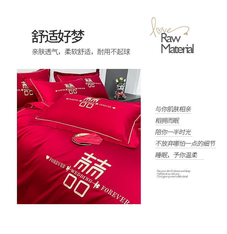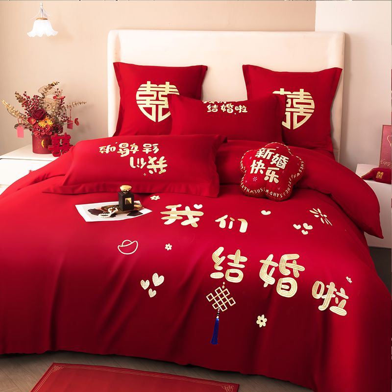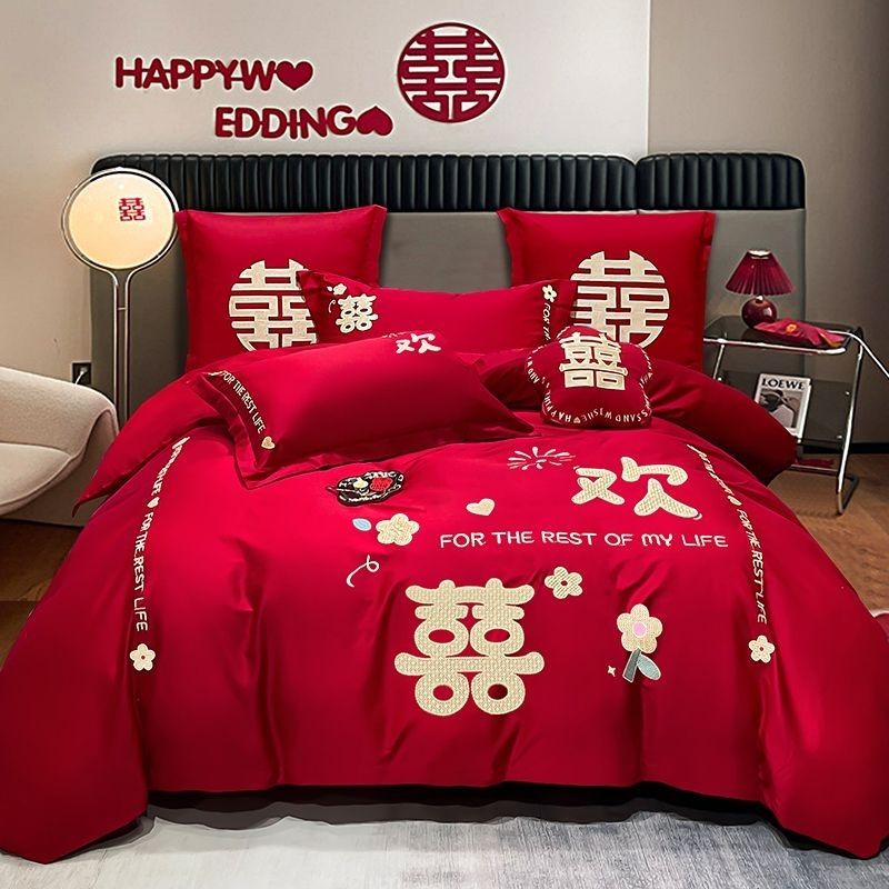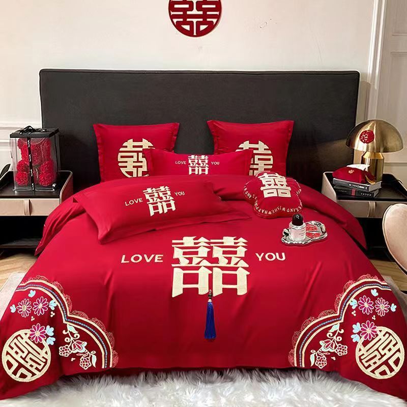 中式婚庆四件套大红色新婚刺绣被套结婚陪嫁喜庆喜被套件床上用品