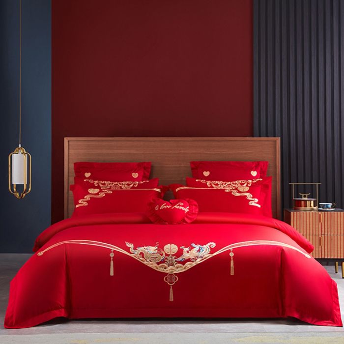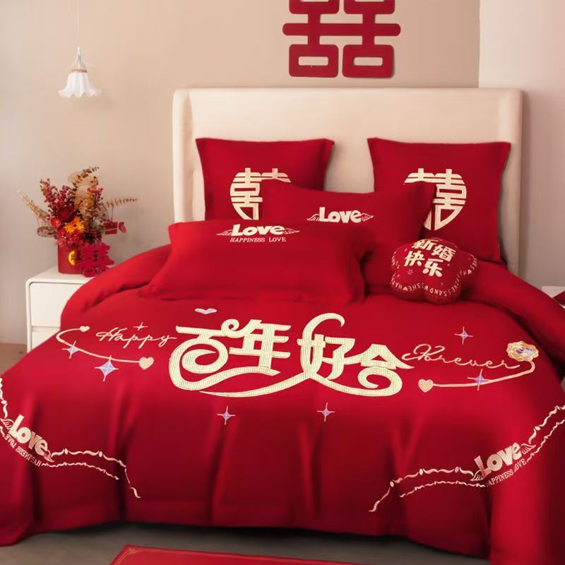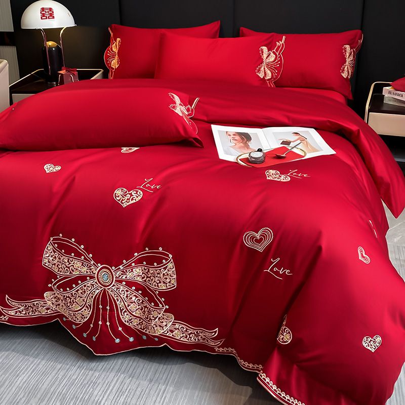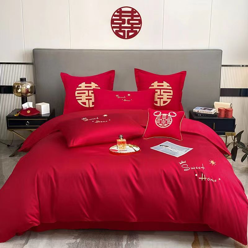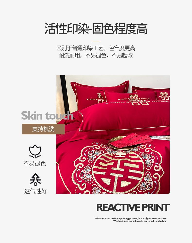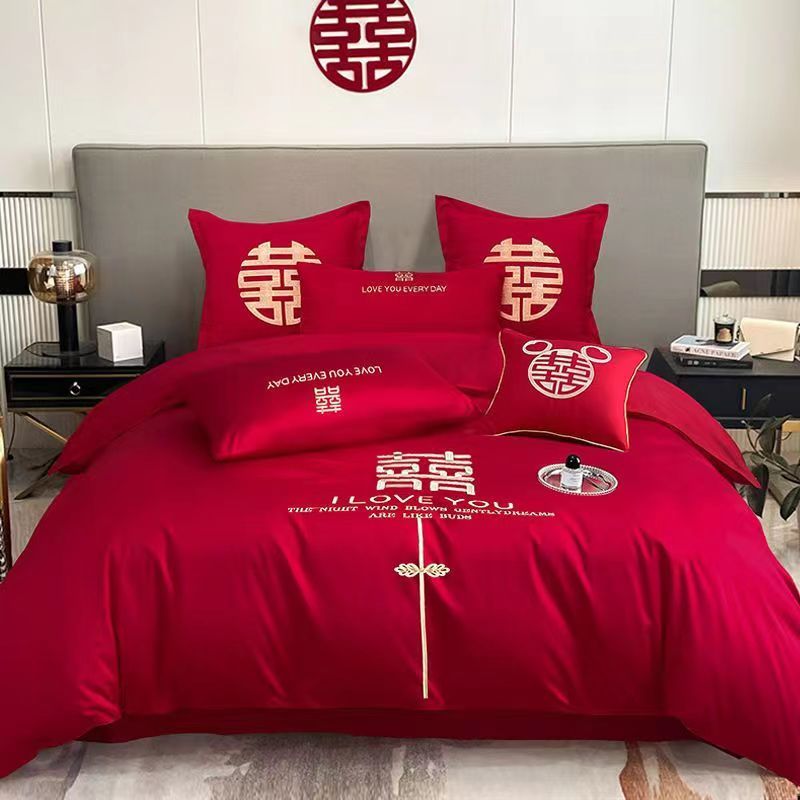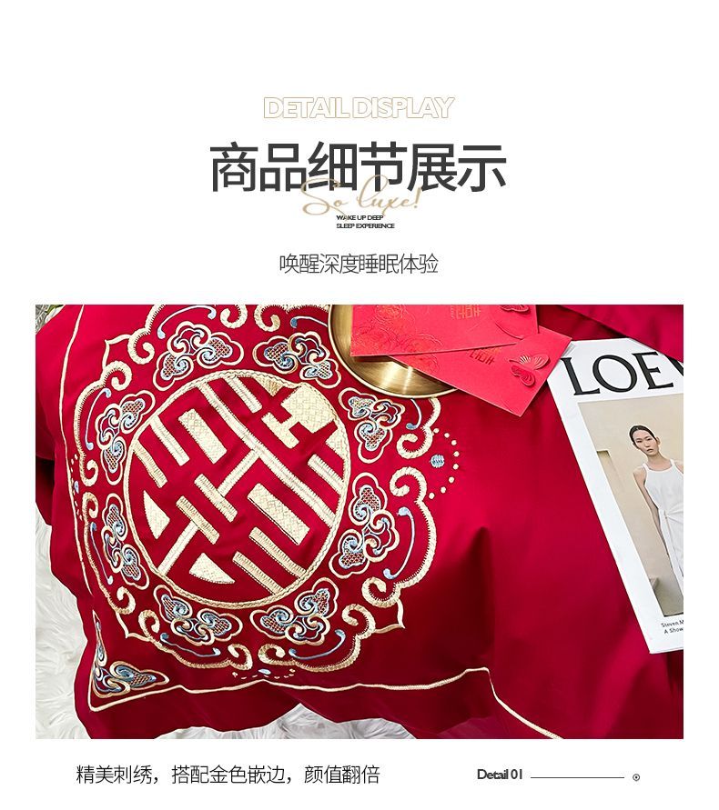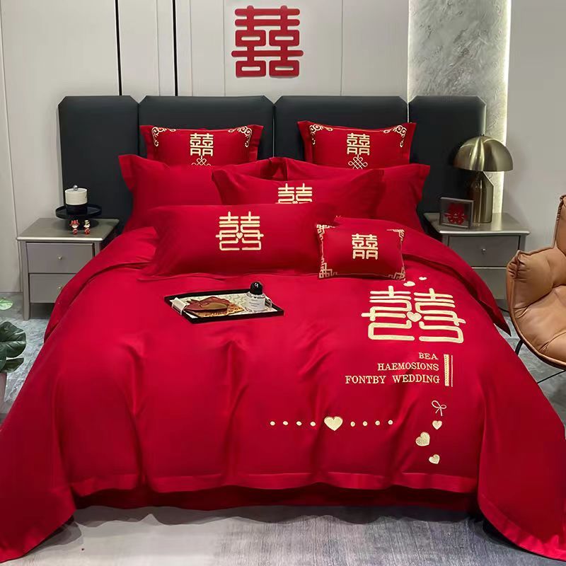 中式婚庆四件套大红色新婚刺绣被套结婚陪嫁喜庆喜被套件床上用品