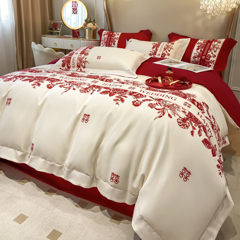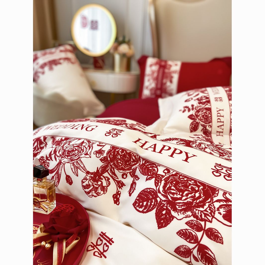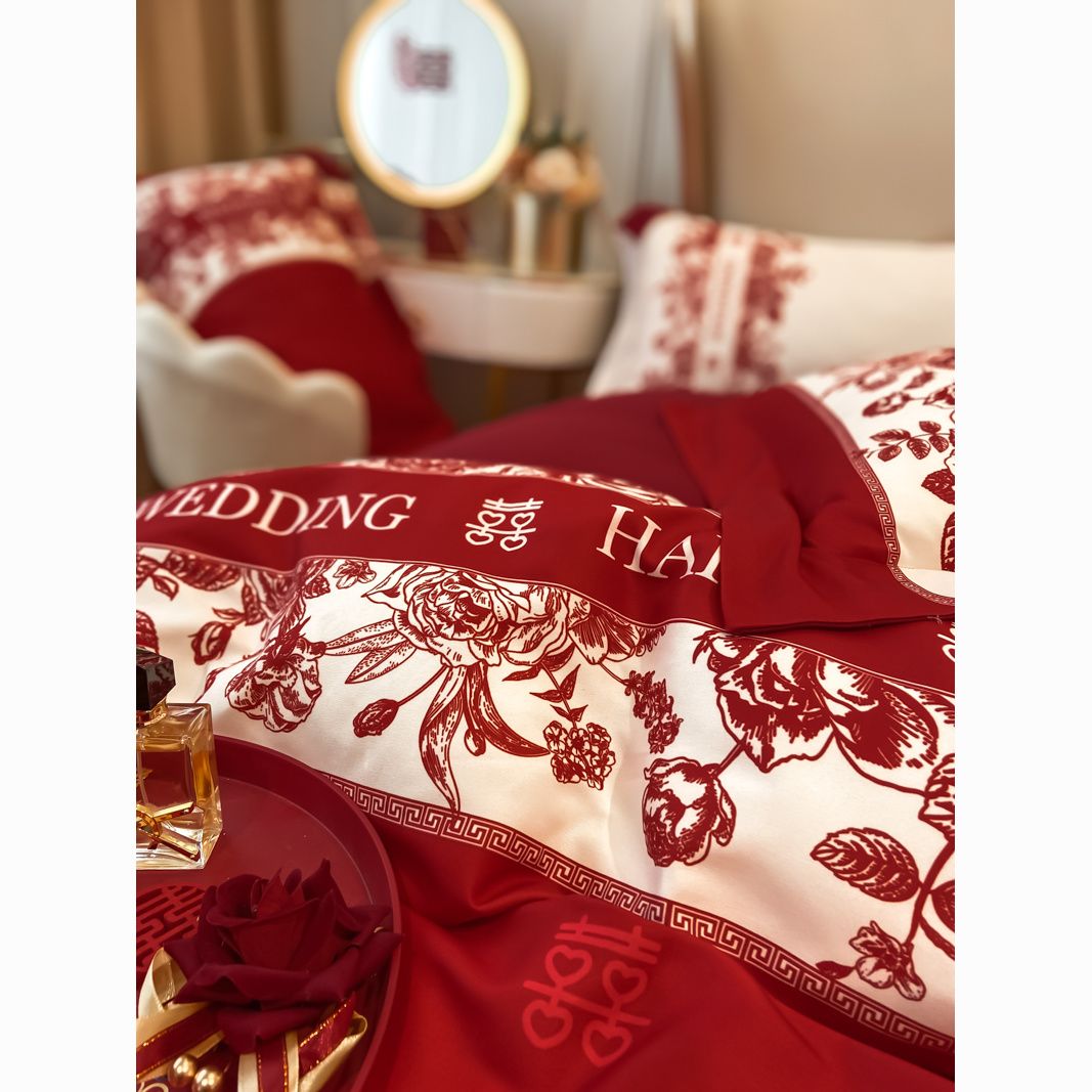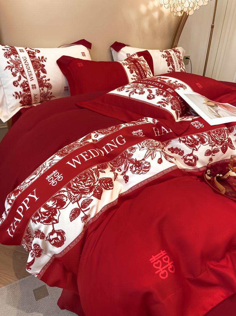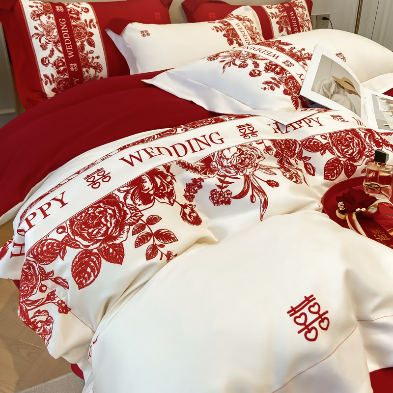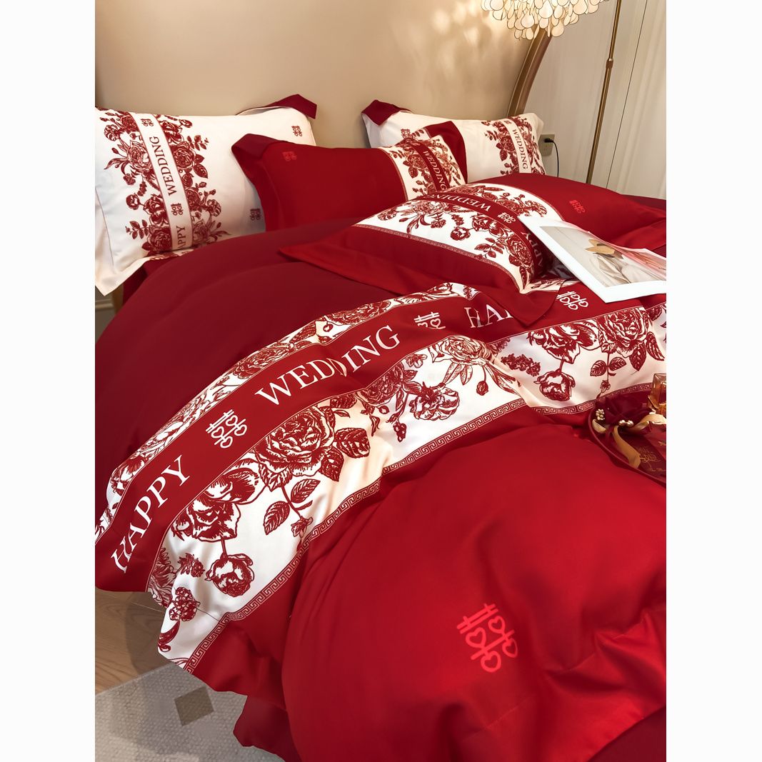 大红色婚庆高档简约四件套婚床新婚喜庆结婚床单被套喜被床上用品