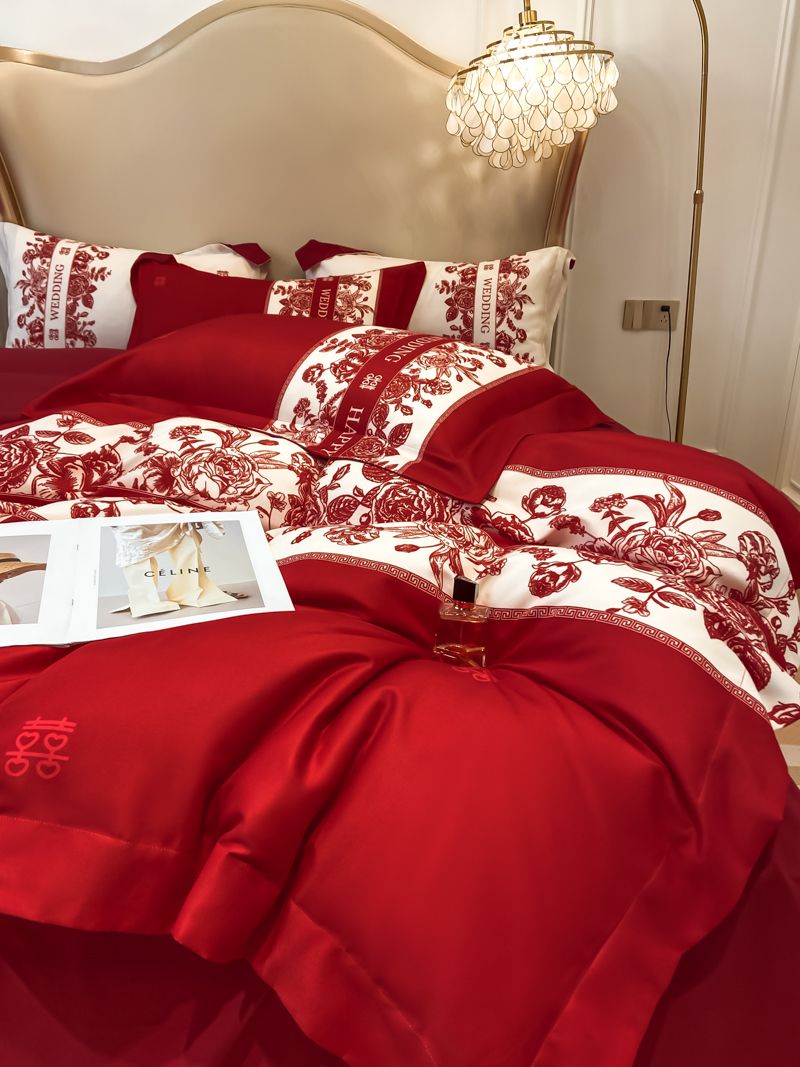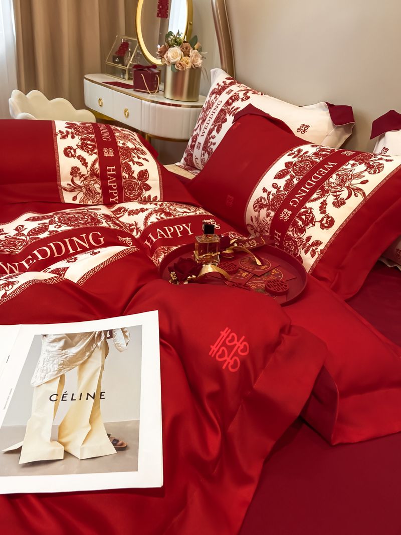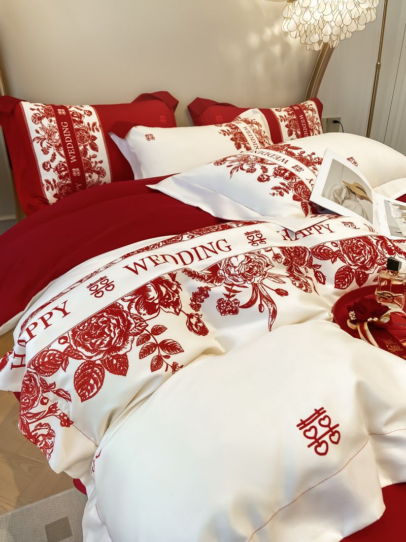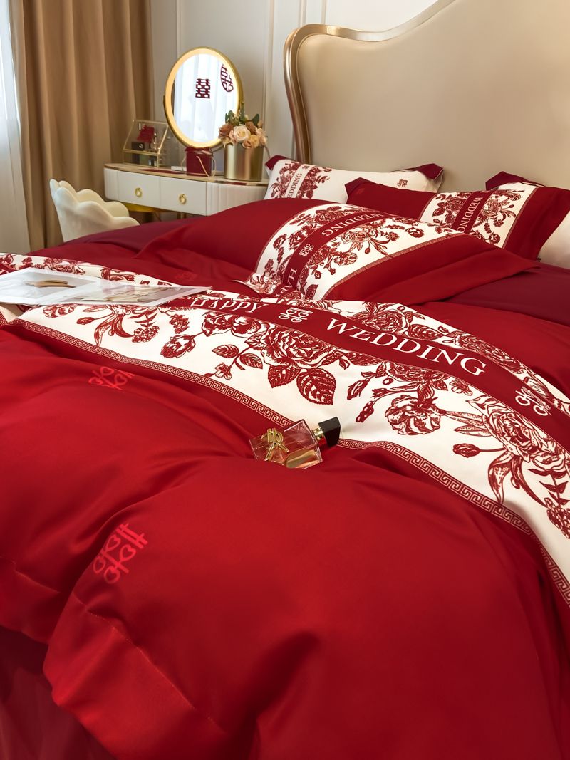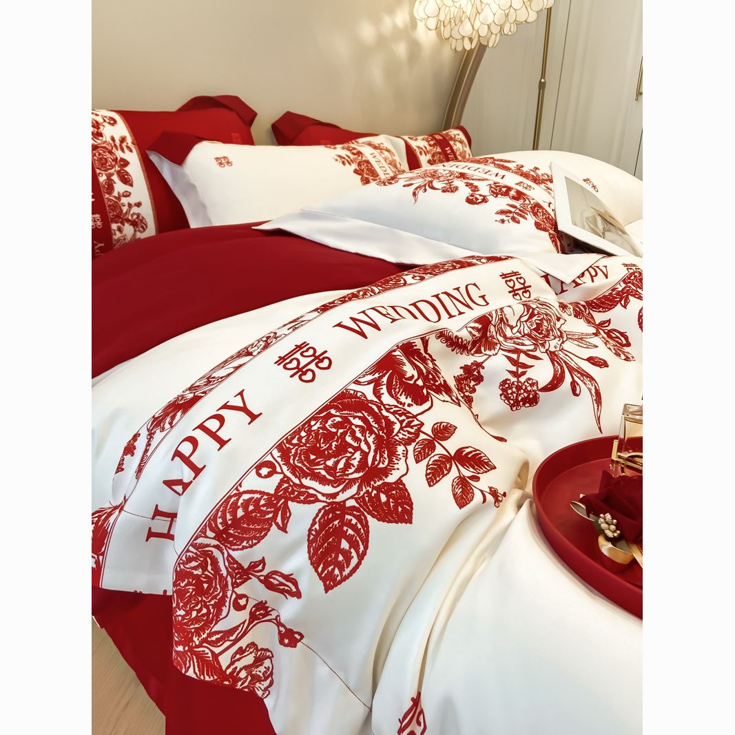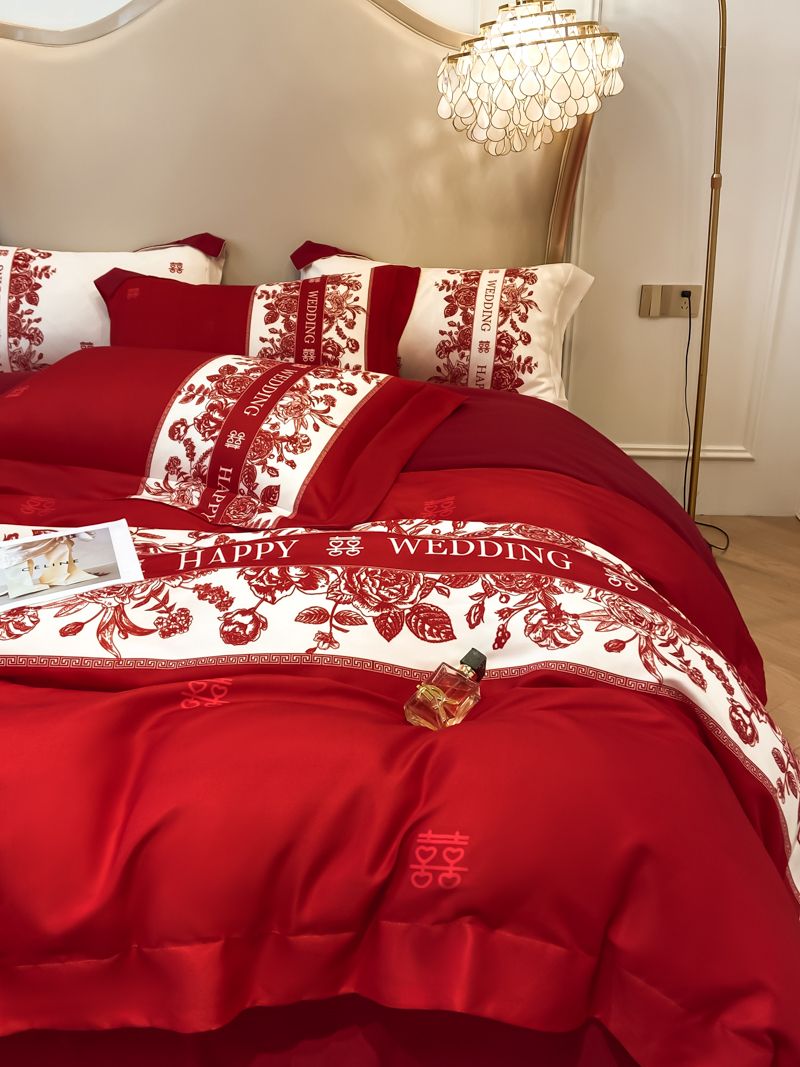 大红色婚庆高档简约四件套婚床新婚喜庆结婚床单被套喜被床上用品