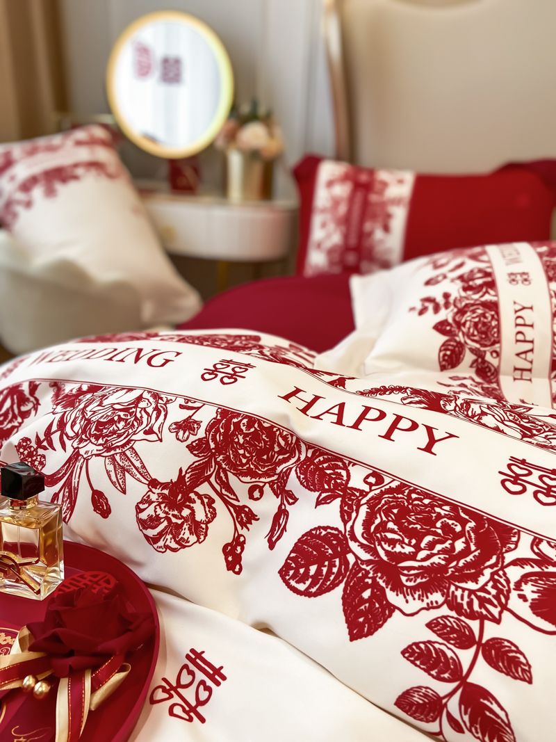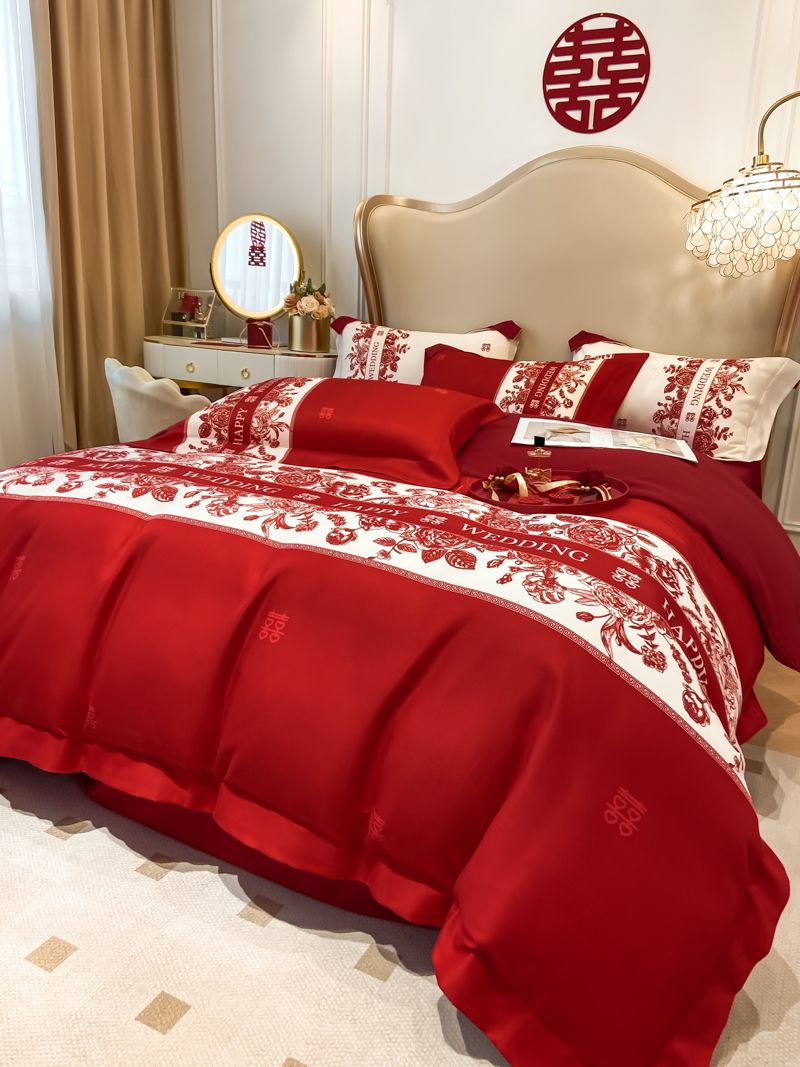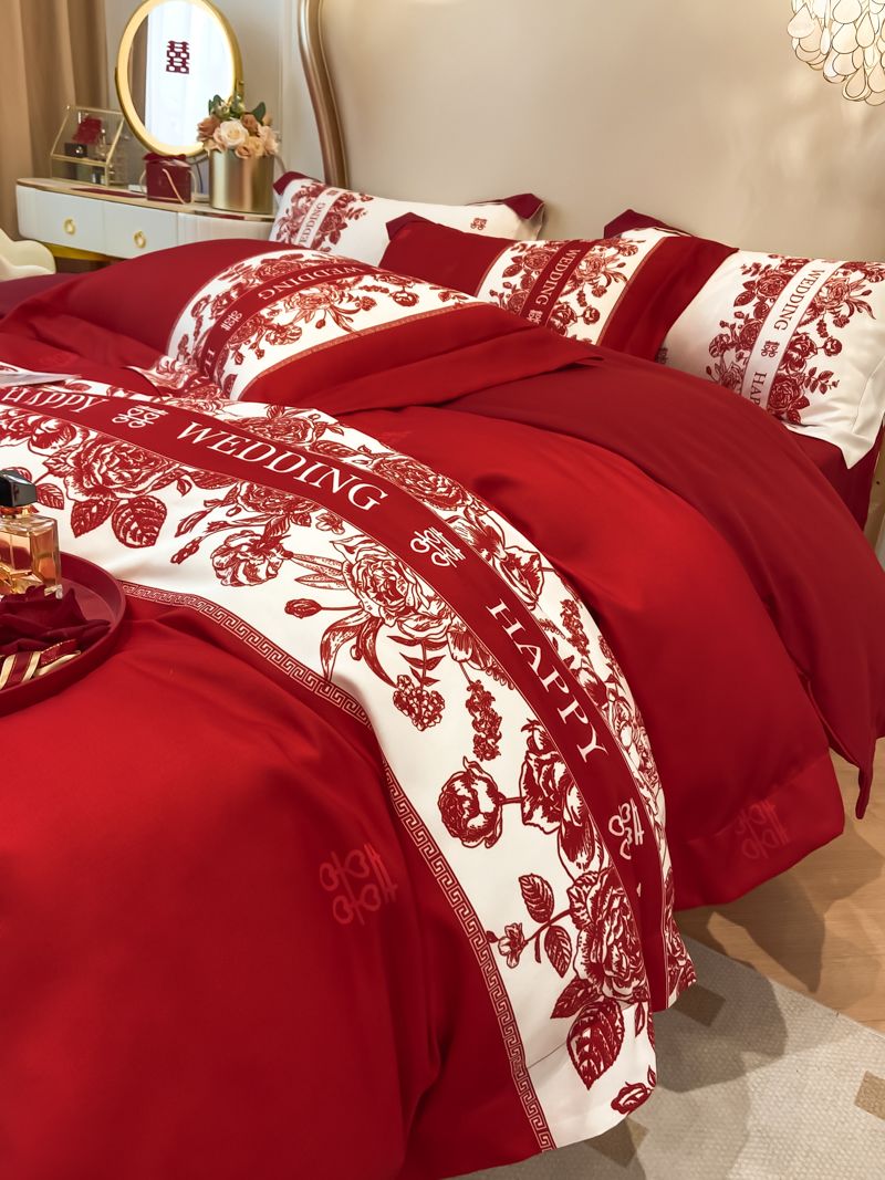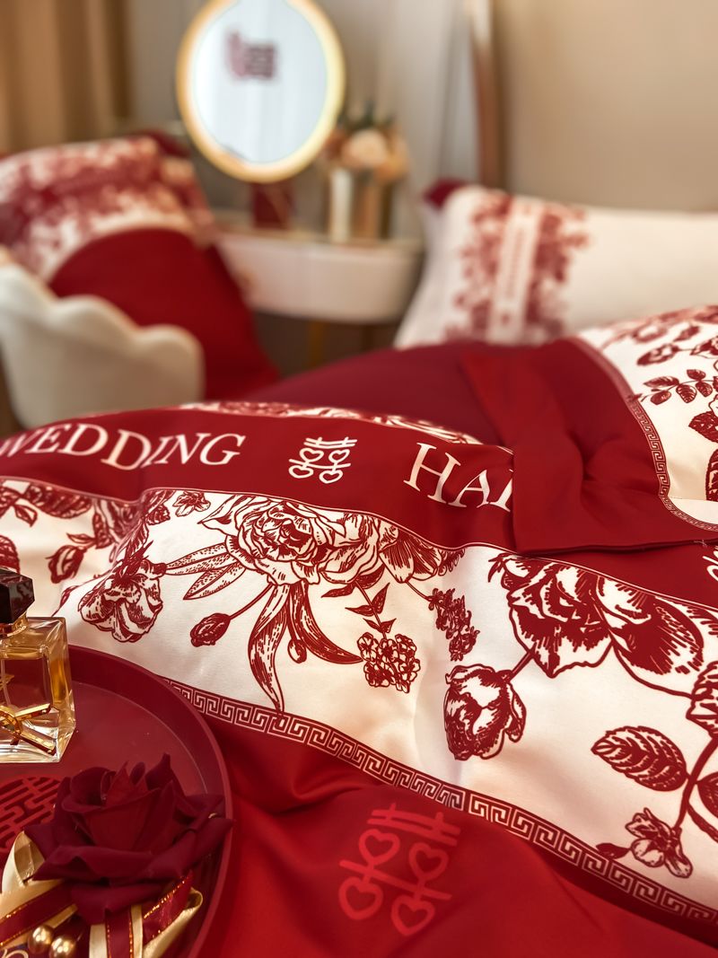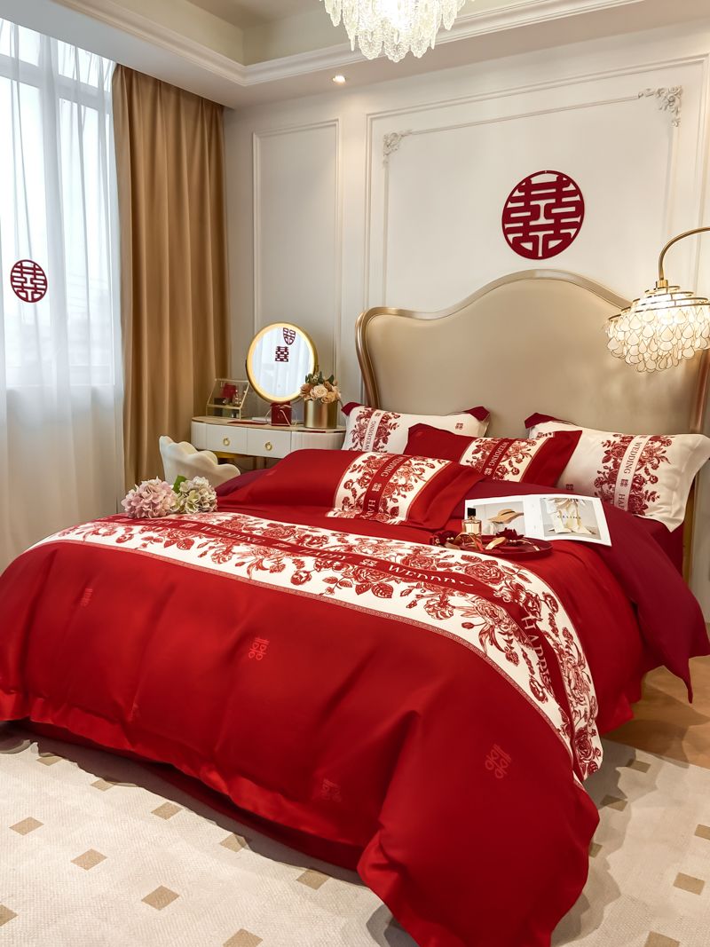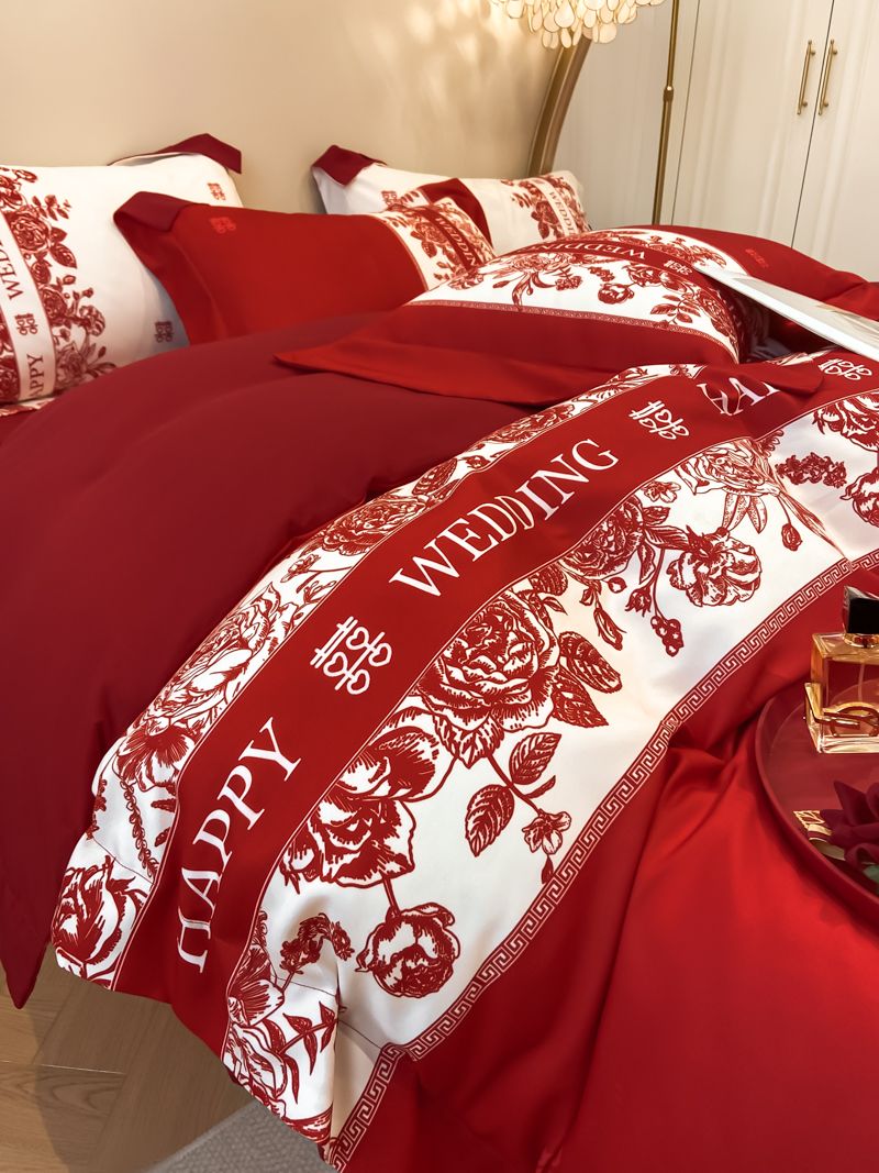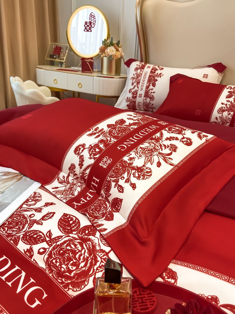 大红色婚庆高档简约四件套婚床新婚喜庆结婚床单被套喜被床上用品