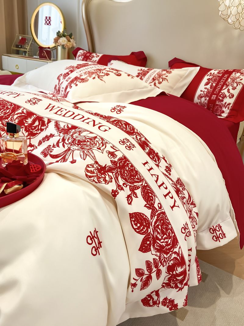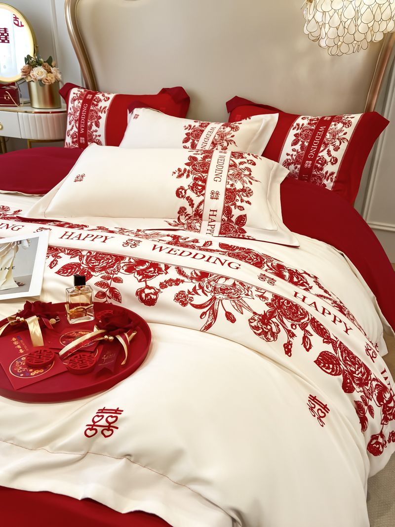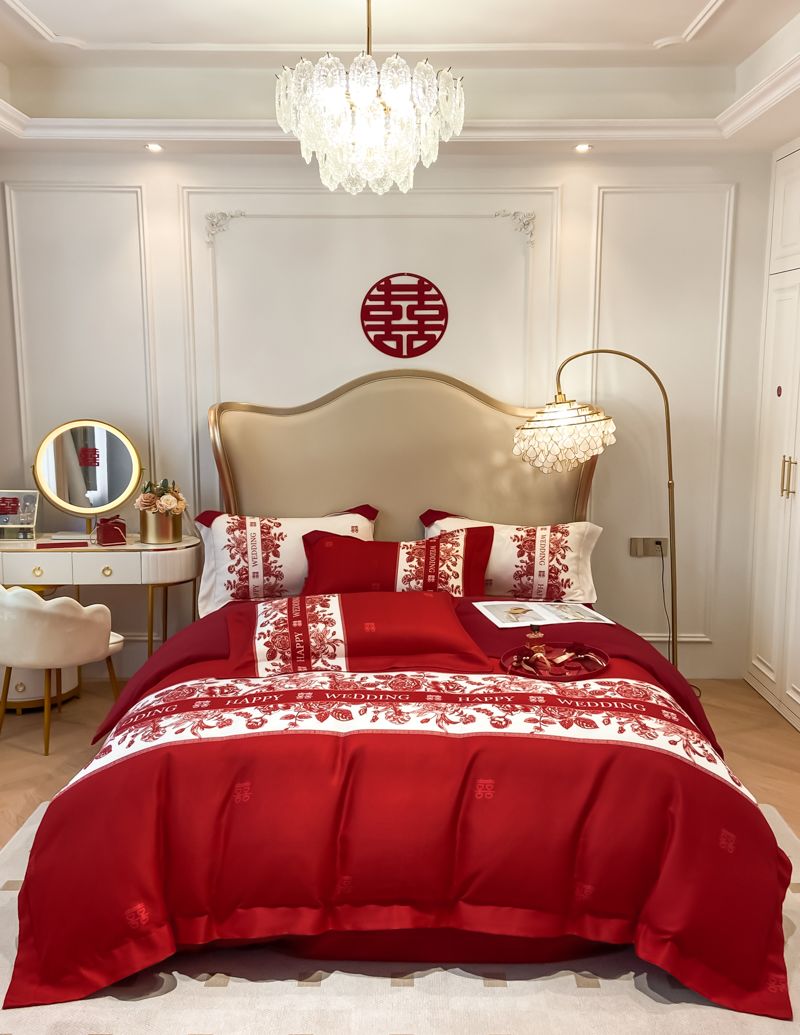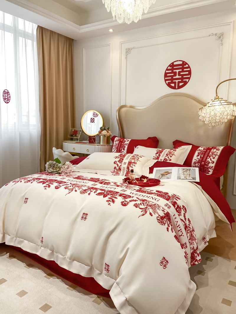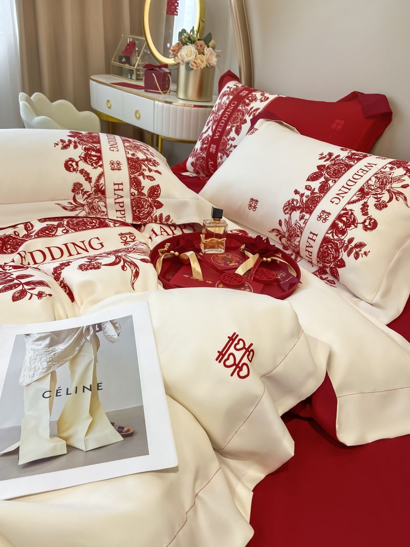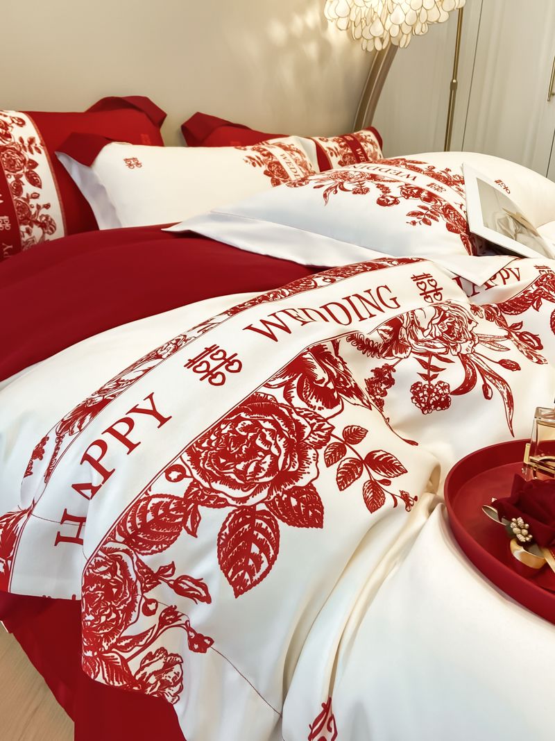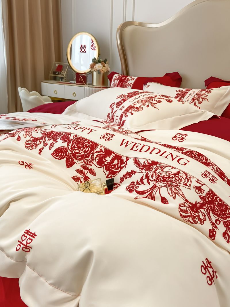 大红色婚庆高档简约四件套婚床新婚喜庆结婚床单被套喜被床上用品