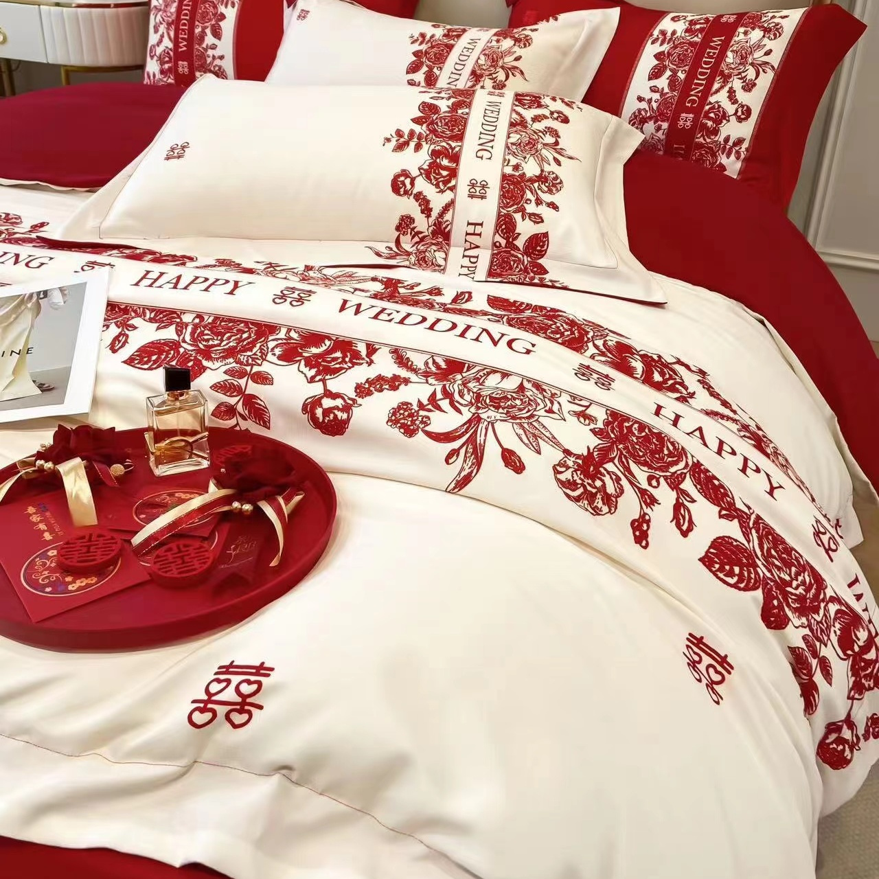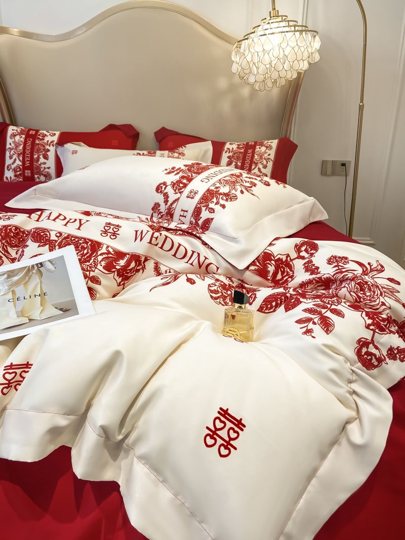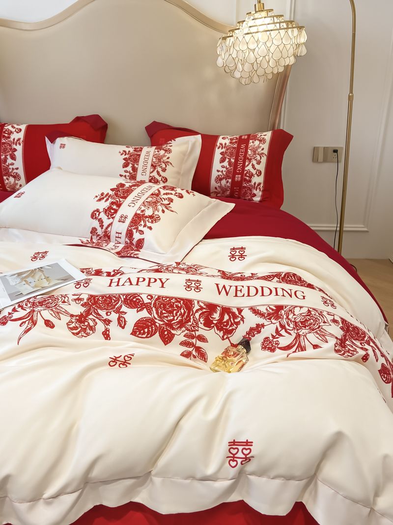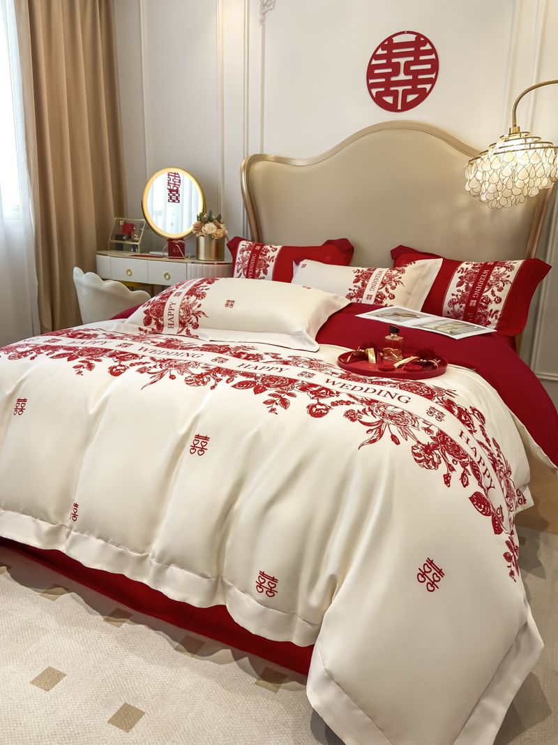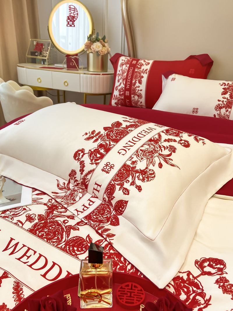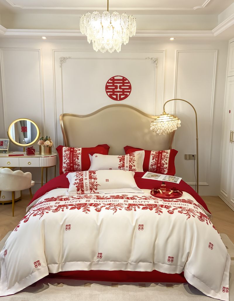 大红色婚庆高档简约四件套婚床新婚喜庆结婚床单被套喜被床上用品