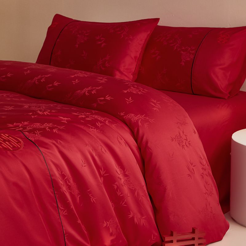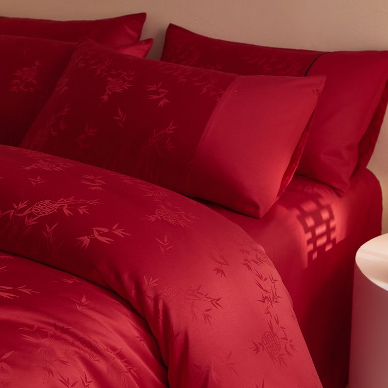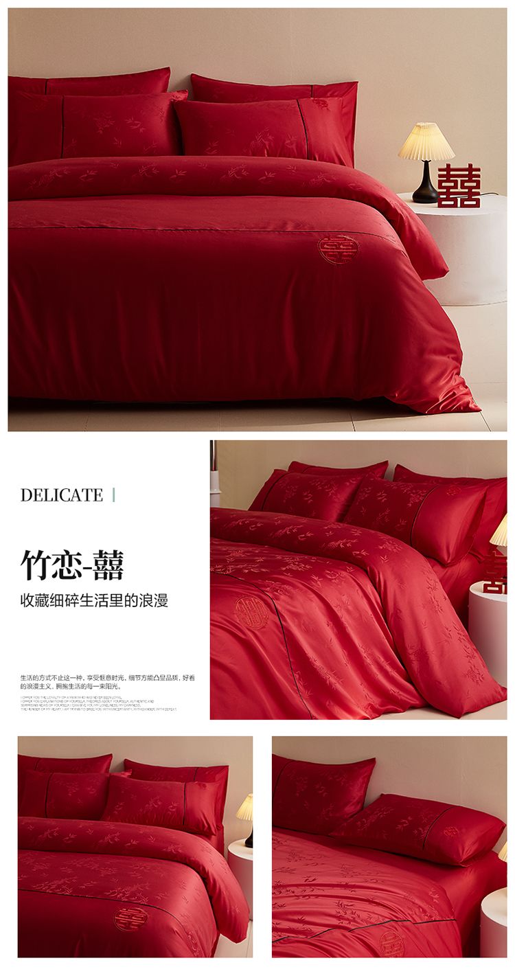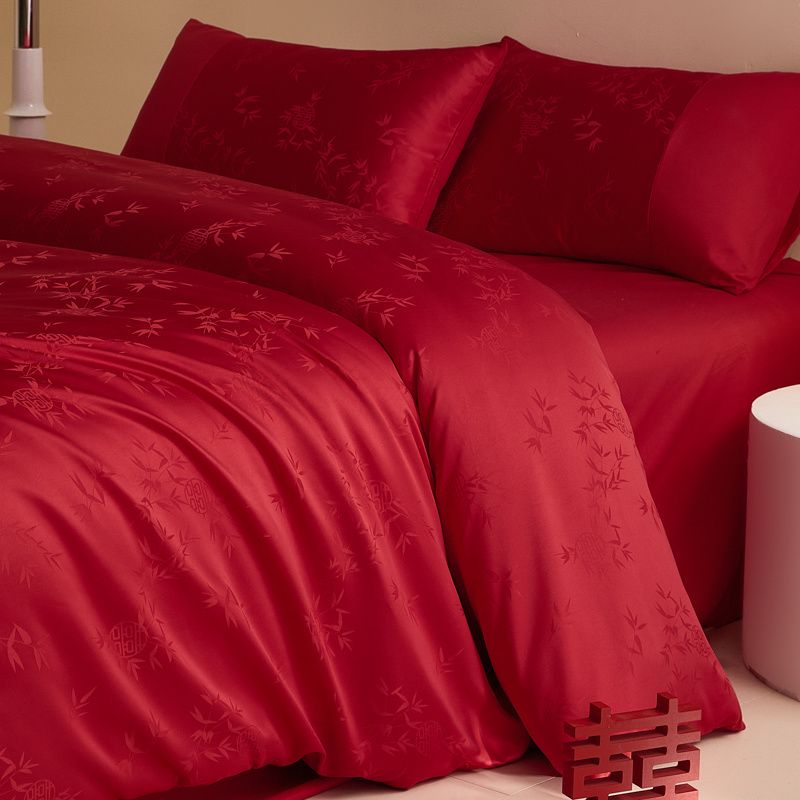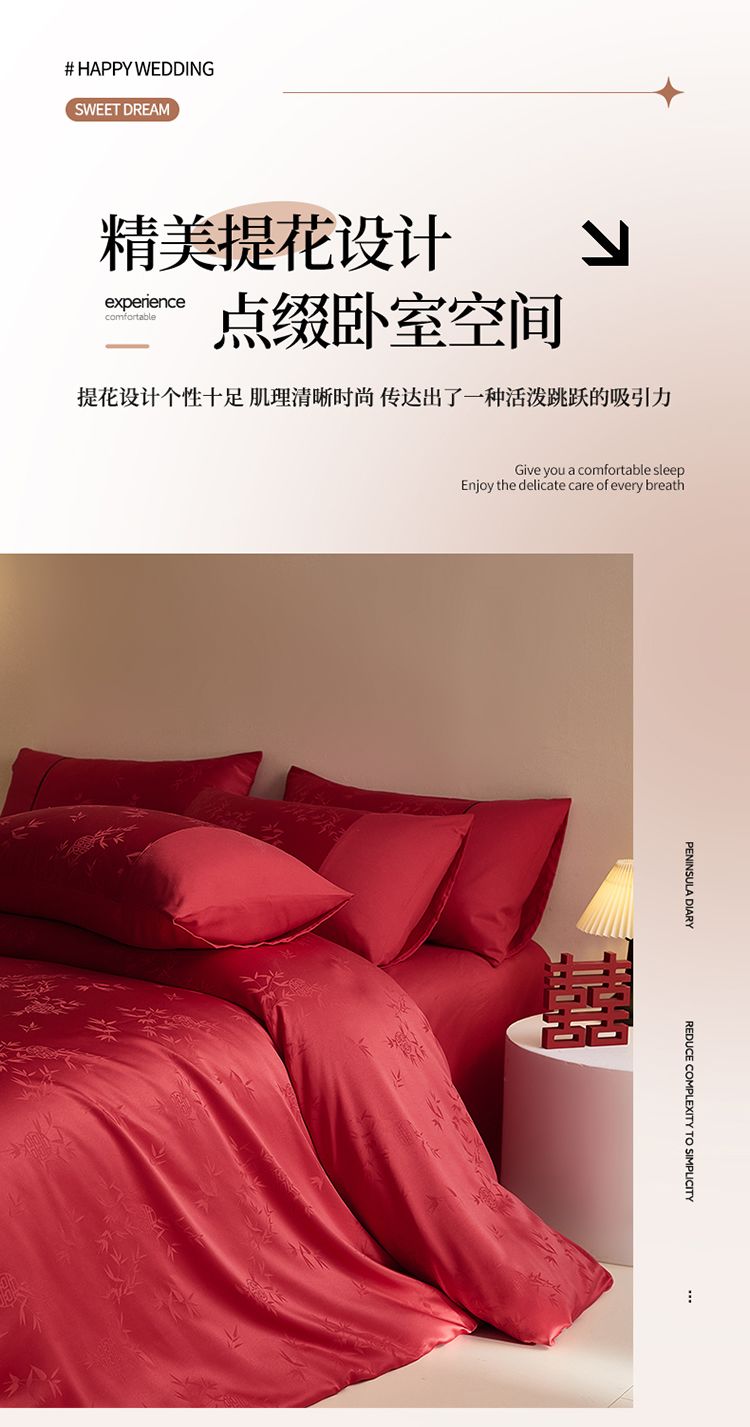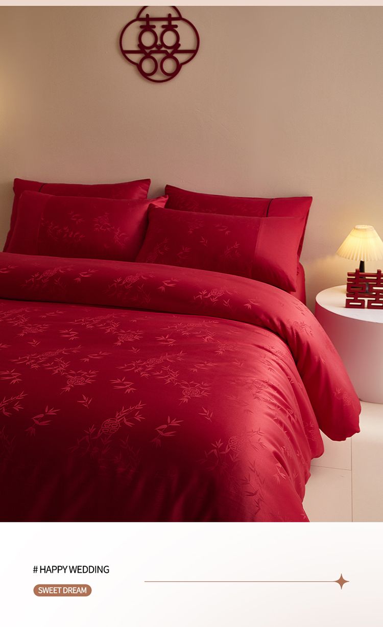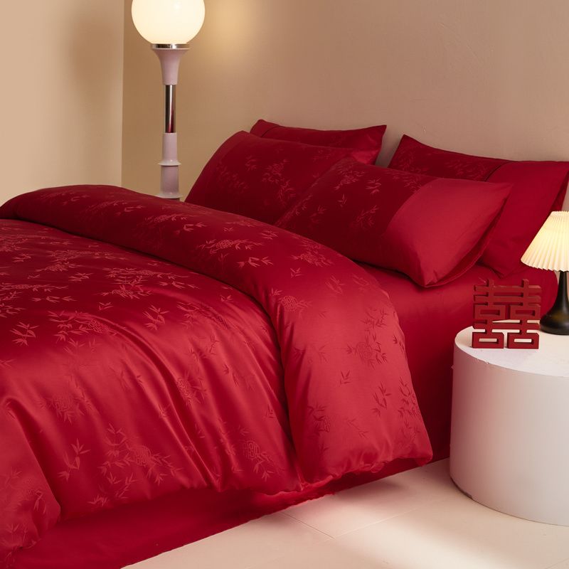 轻奢中式长绒棉红色提花结婚陪嫁纯棉四件套婚房婚庆床单婚嫁床品