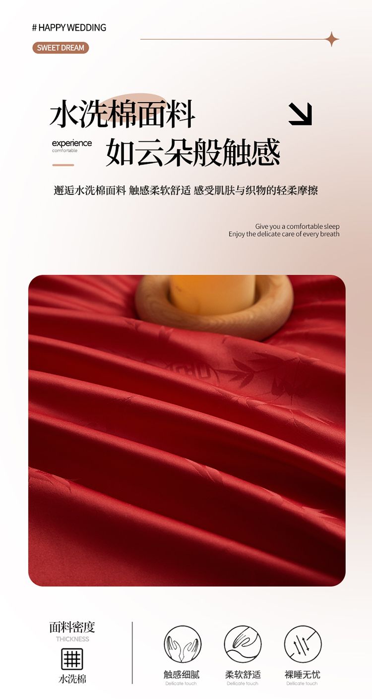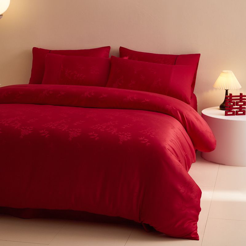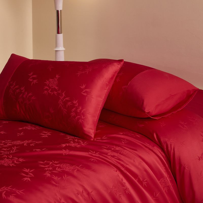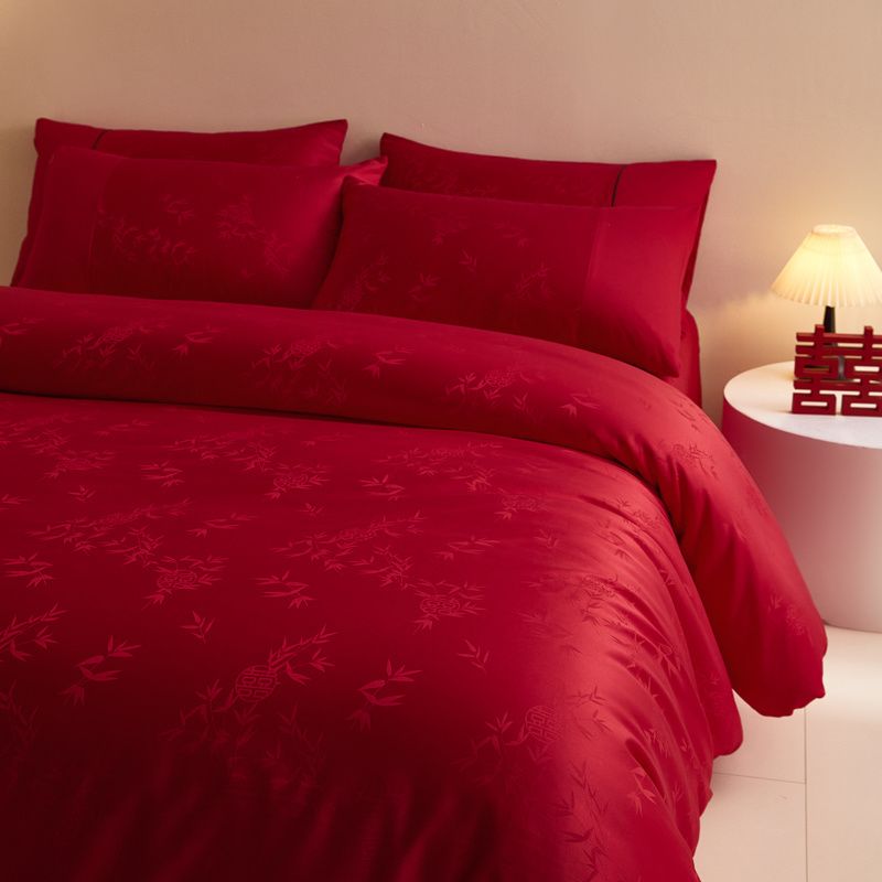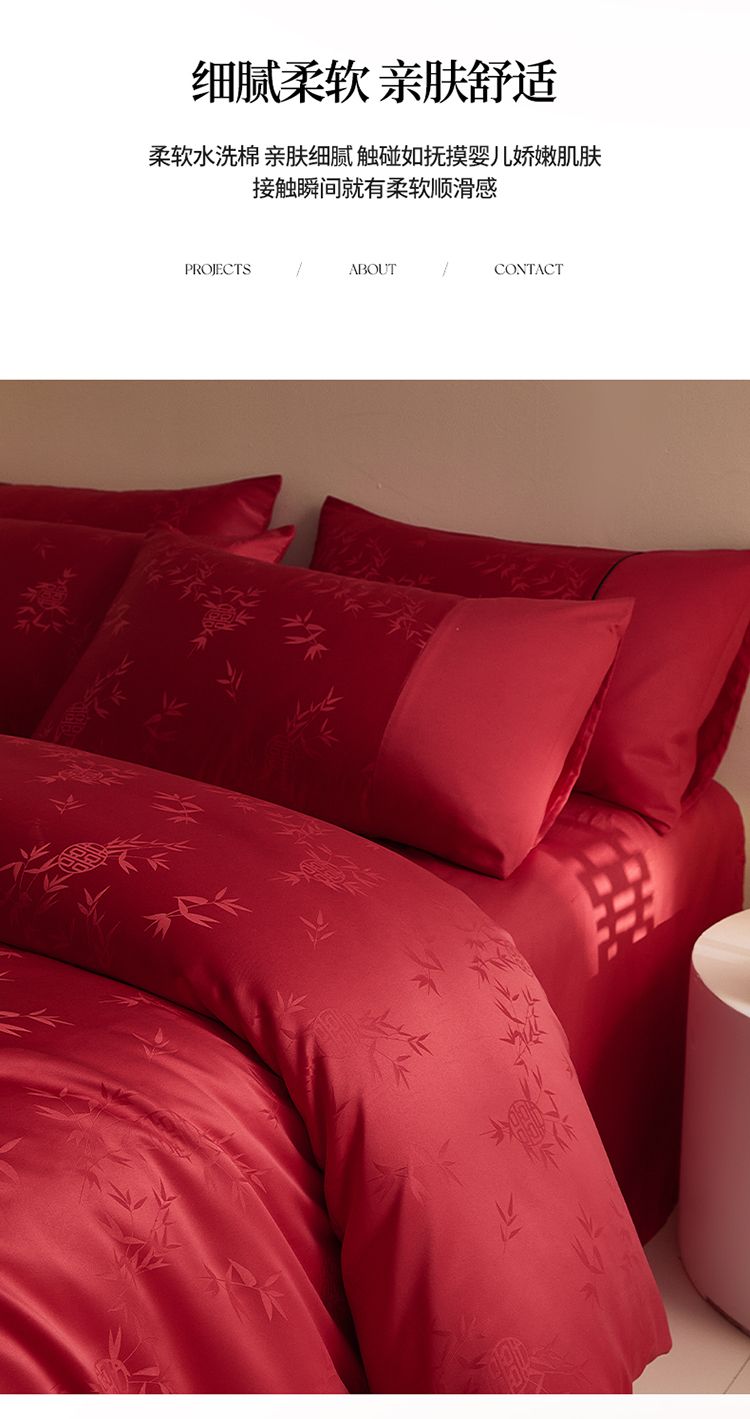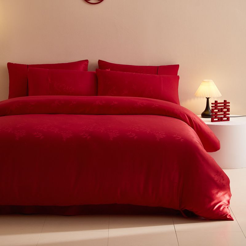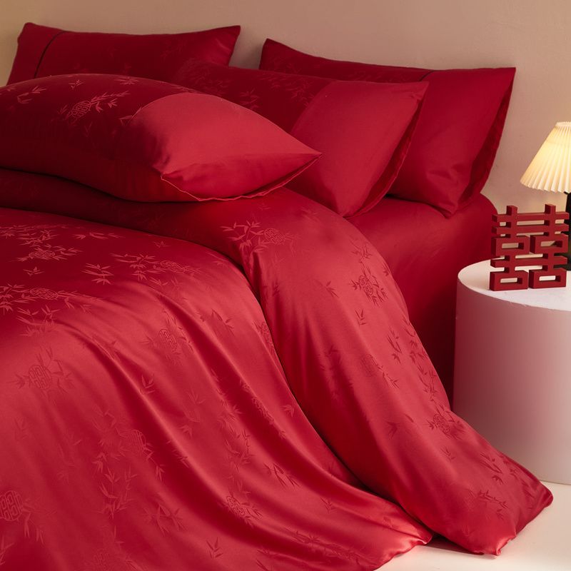 轻奢中式长绒棉红色提花结婚陪嫁纯棉四件套婚房婚庆床单婚嫁床品