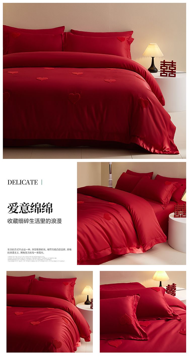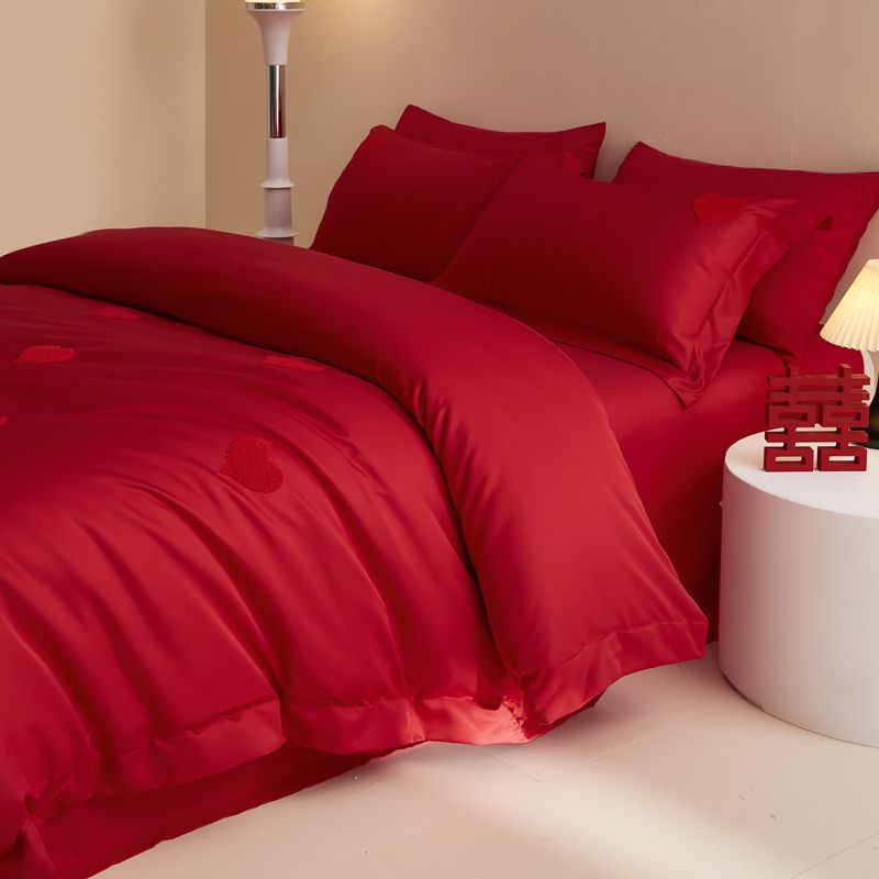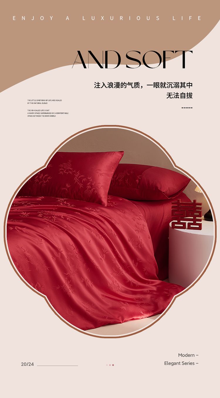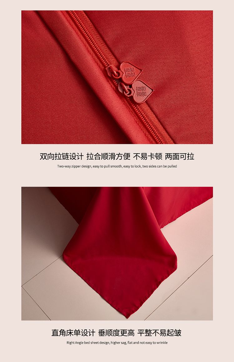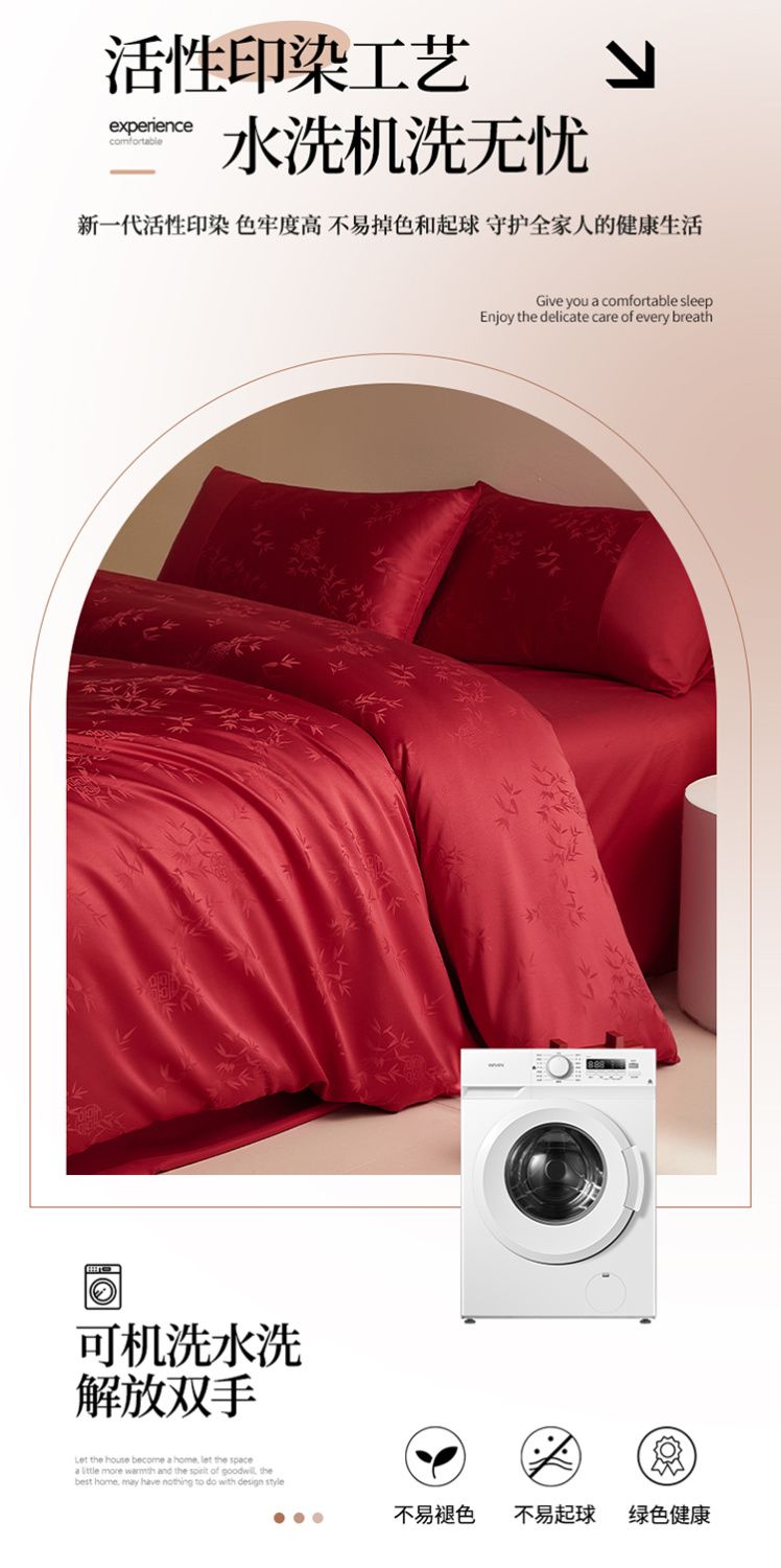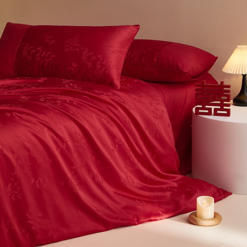 轻奢中式长绒棉红色提花结婚陪嫁纯棉四件套婚房婚庆床单婚嫁床品
