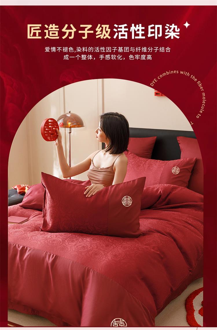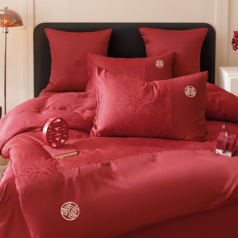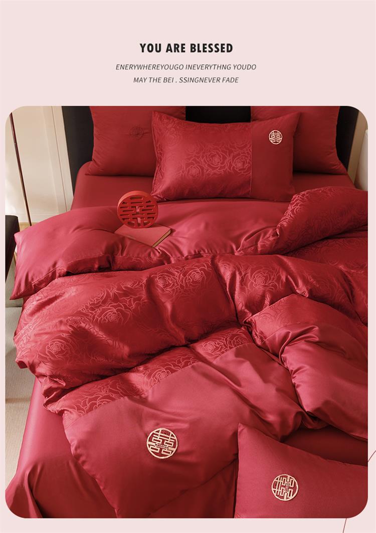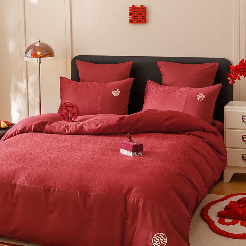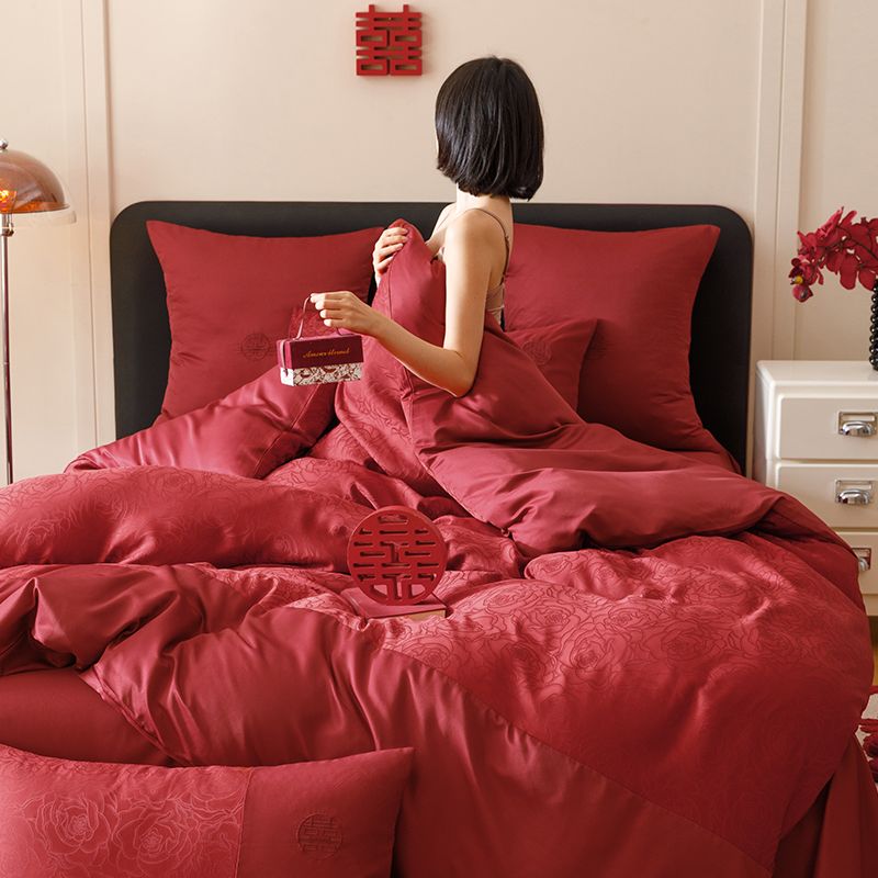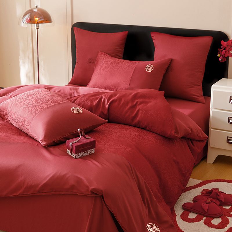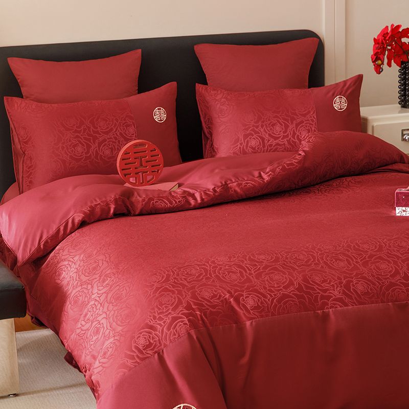 婚庆中式提花亲肤长绒棉四件套红色床单全棉结婚陪嫁被套床上用品