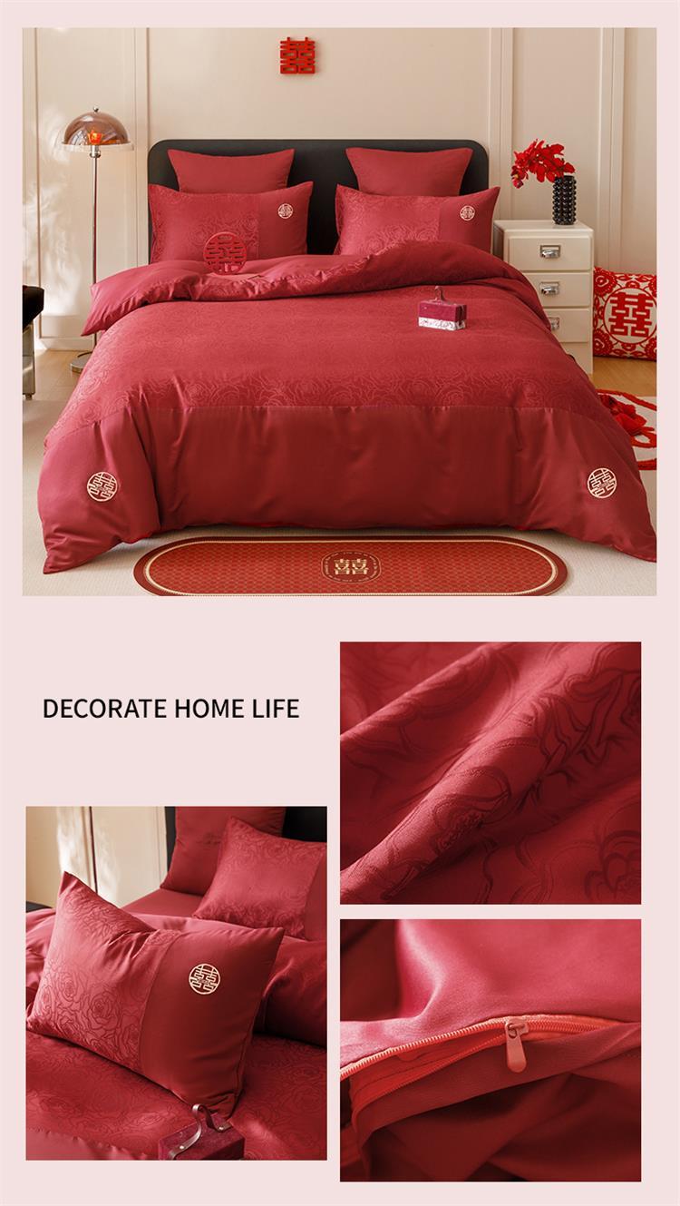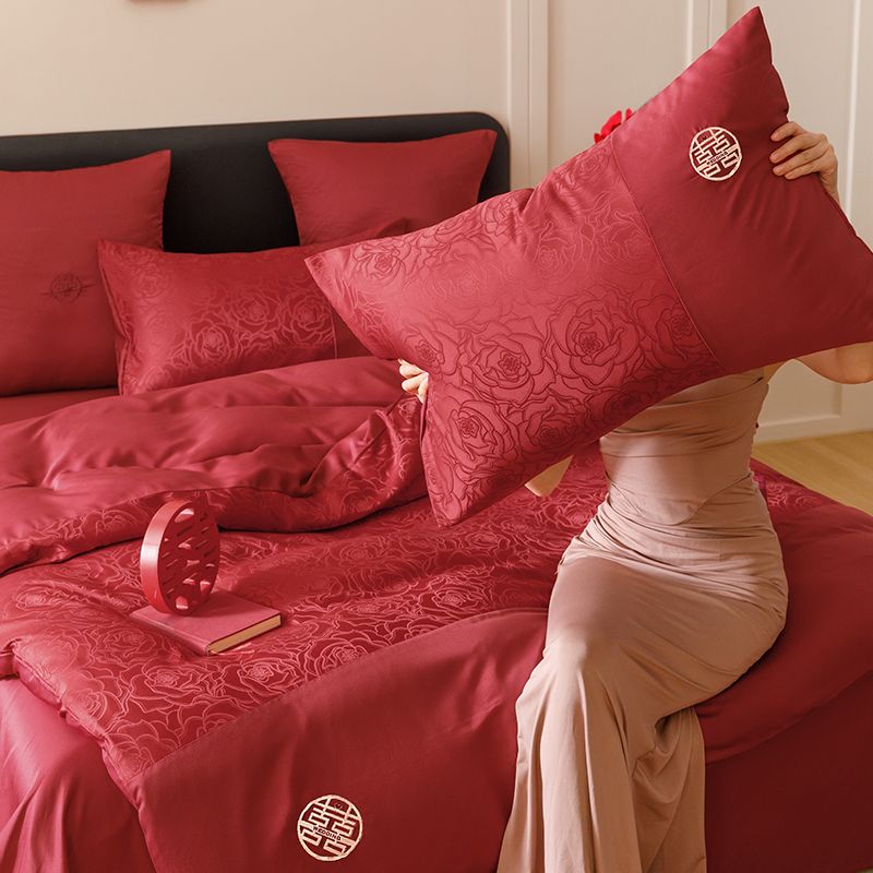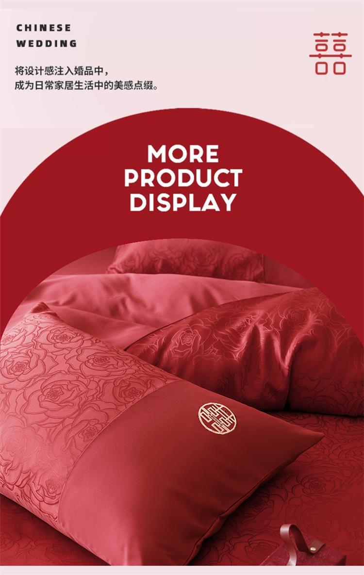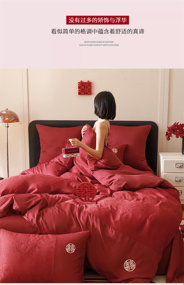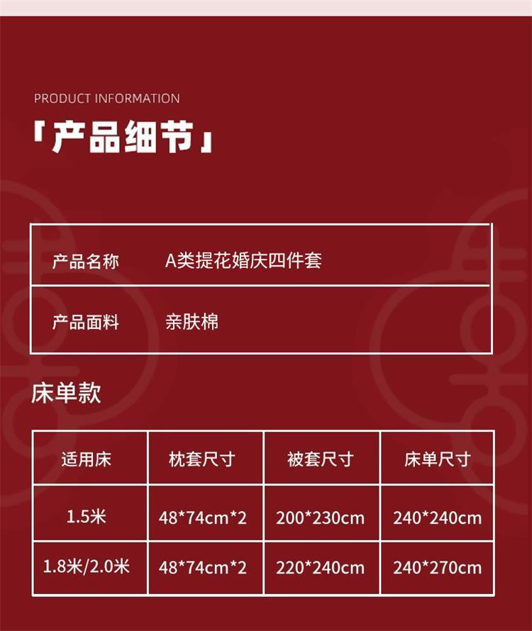 婚庆中式提花亲肤长绒棉四件套红色床单全棉结婚陪嫁被套床上用品