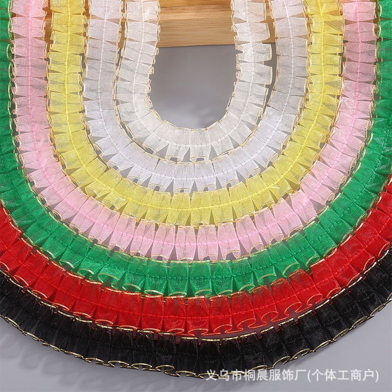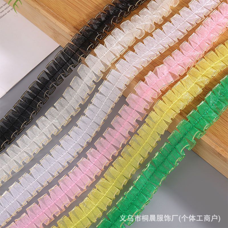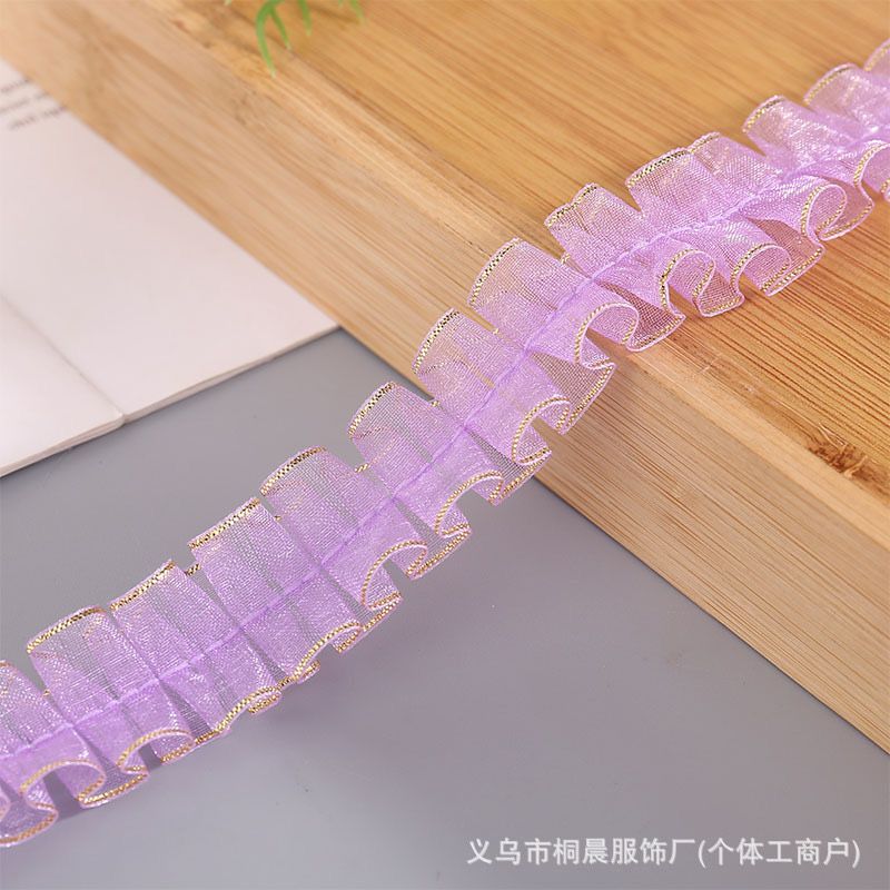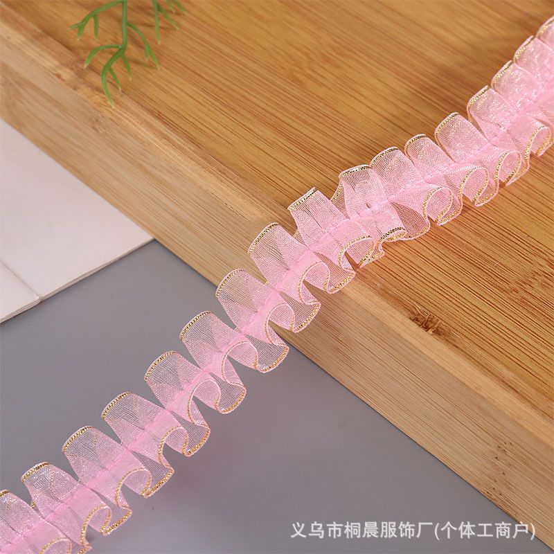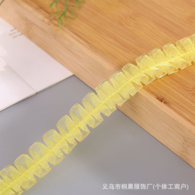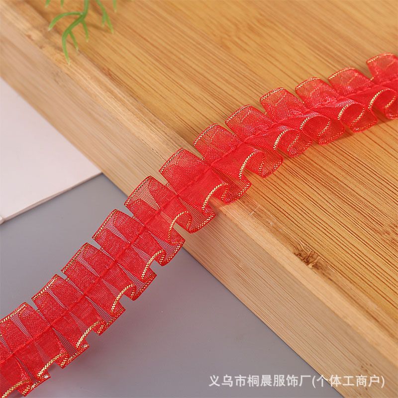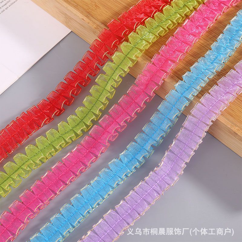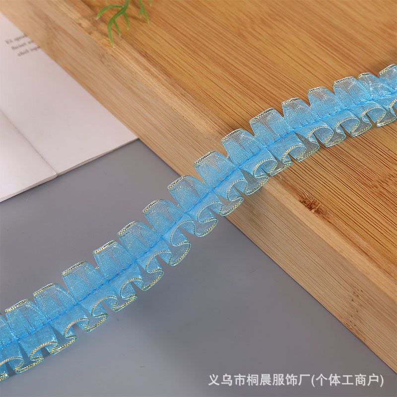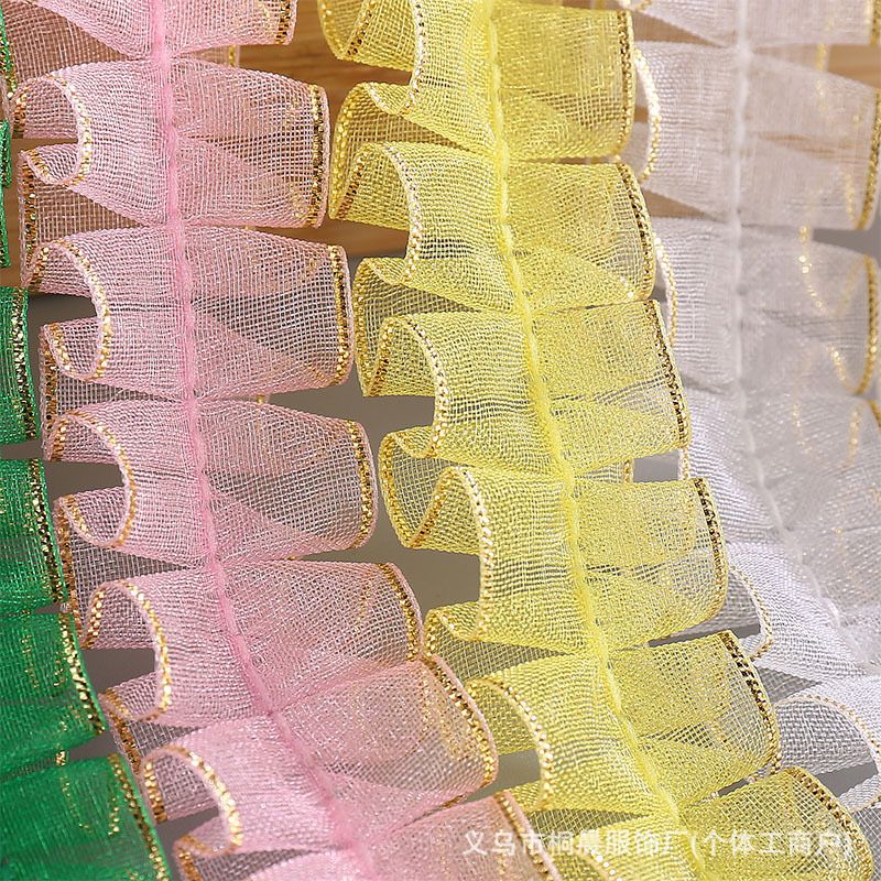 2.5宽双金变鱼骨纱打皱花边服装手工diy头饰玩具辅料花边