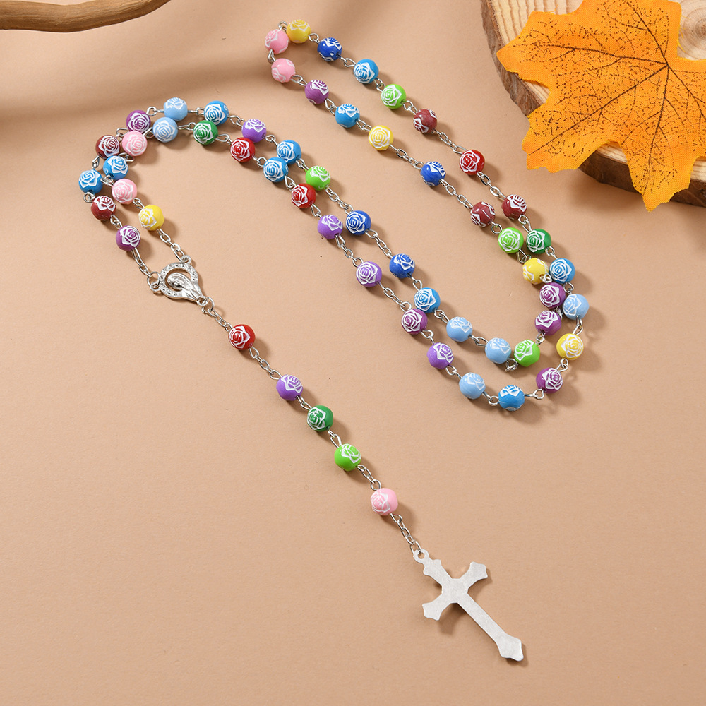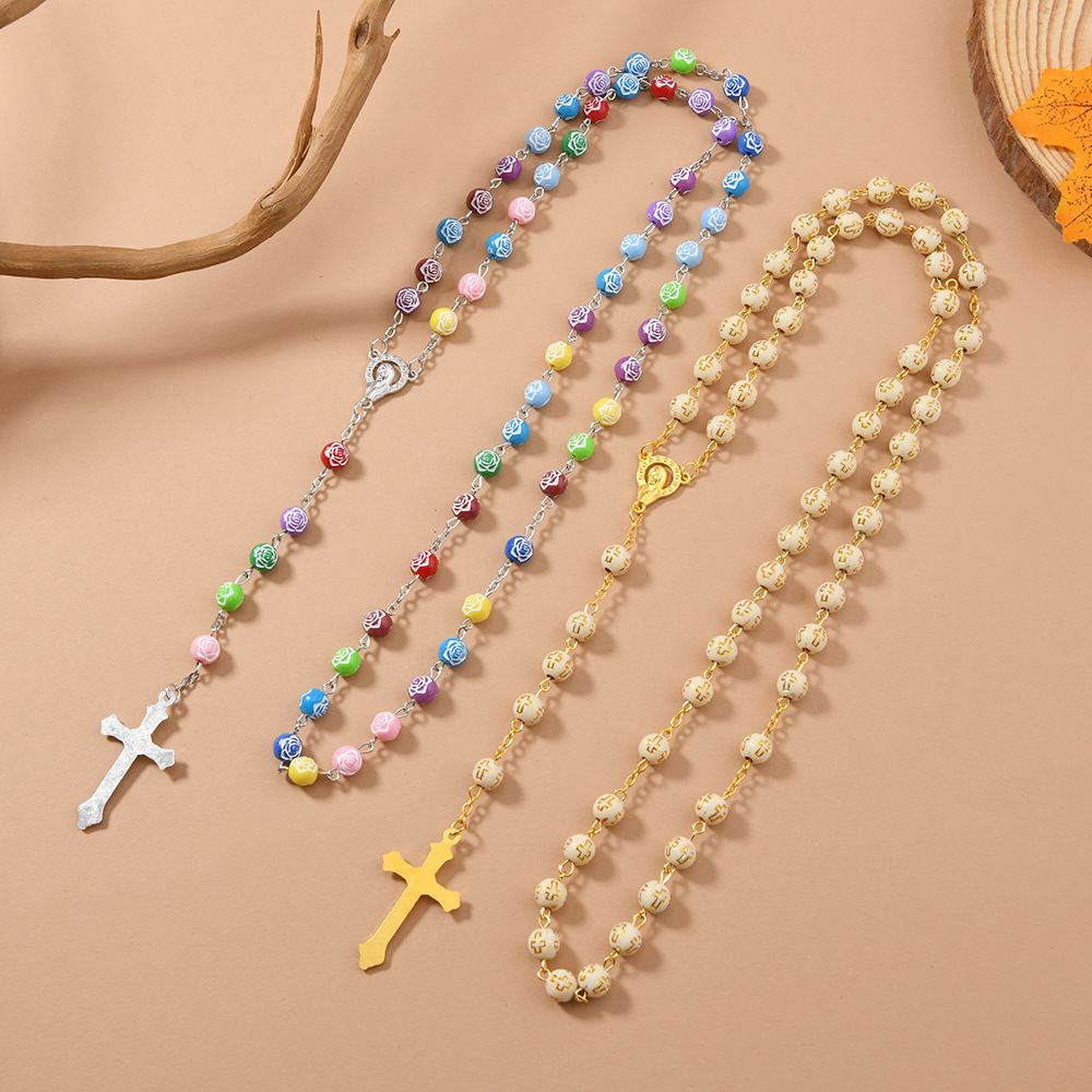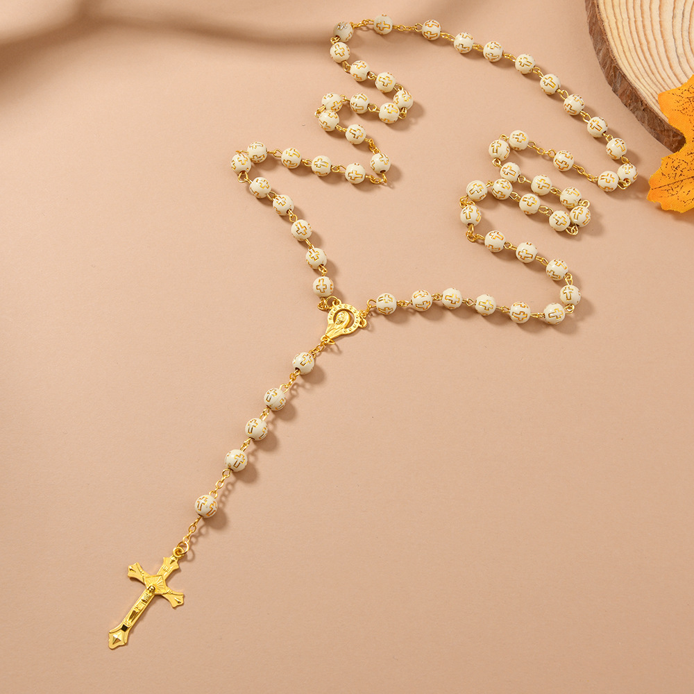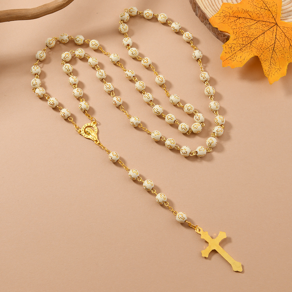跨境8mm金色亚克力十字珠十字架项链念珠圣餐洗礼
