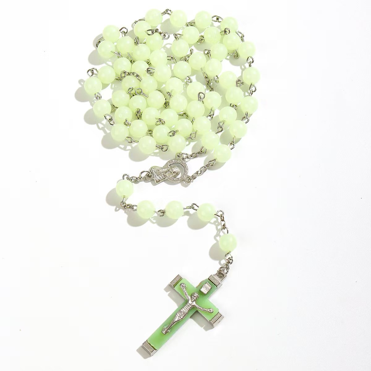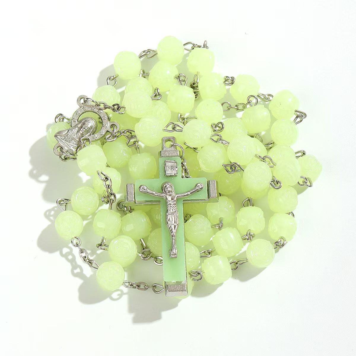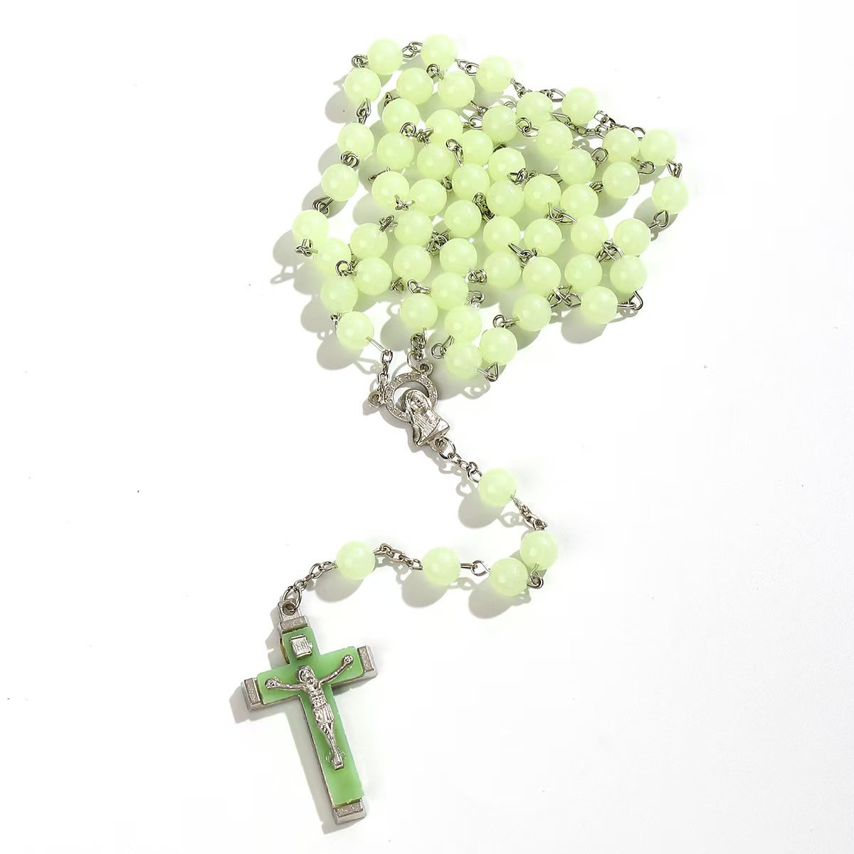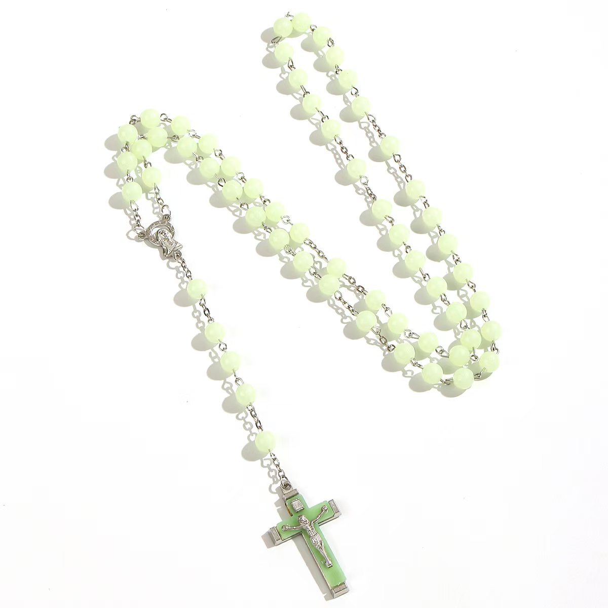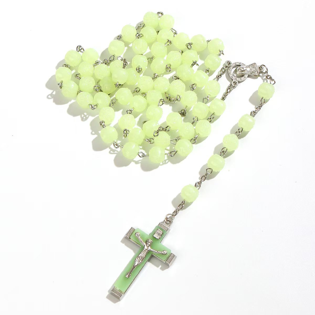8mm夜光玫瑰花珠十字架念珠洗礼项链电商专供