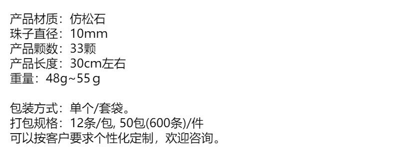 33颗松石穆斯林念珠礼拜赞珠原创设计10mm款Tasbih手工串珠
