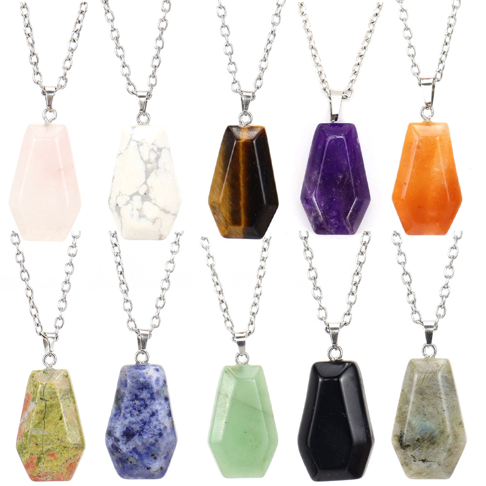 TikTok直播天然水晶石迷你棺材板吊坠项链万圣节项链饰品N671