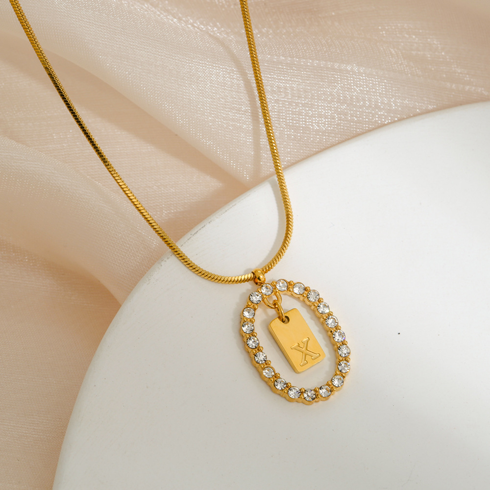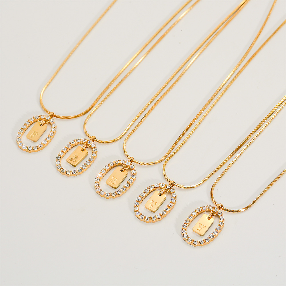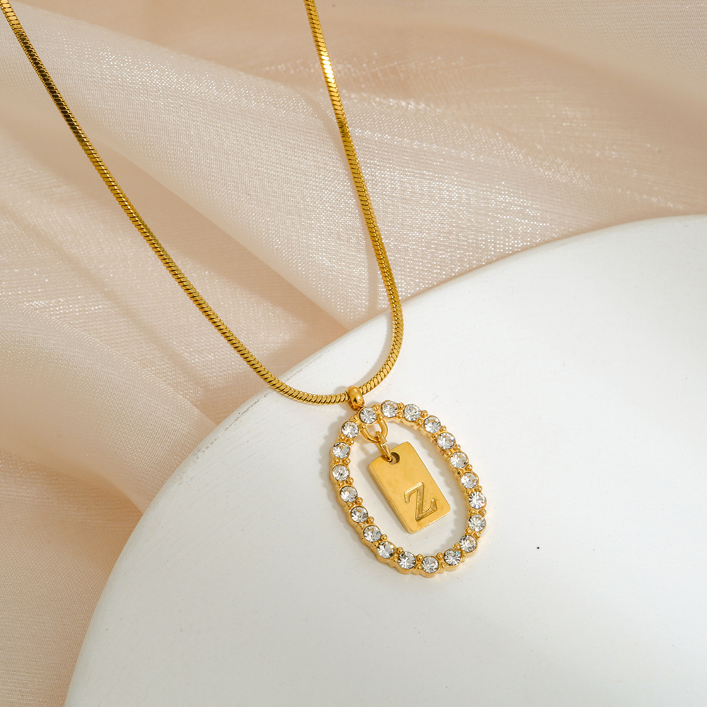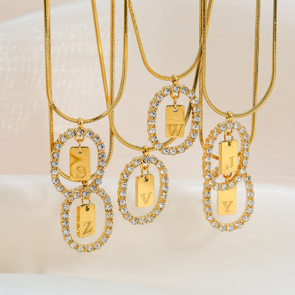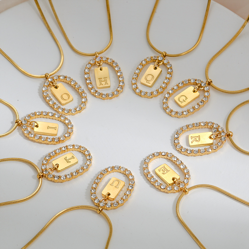 跨境西班牙tiktok不锈钢项链镶钻小众设计26字母通勤高级感锁骨链