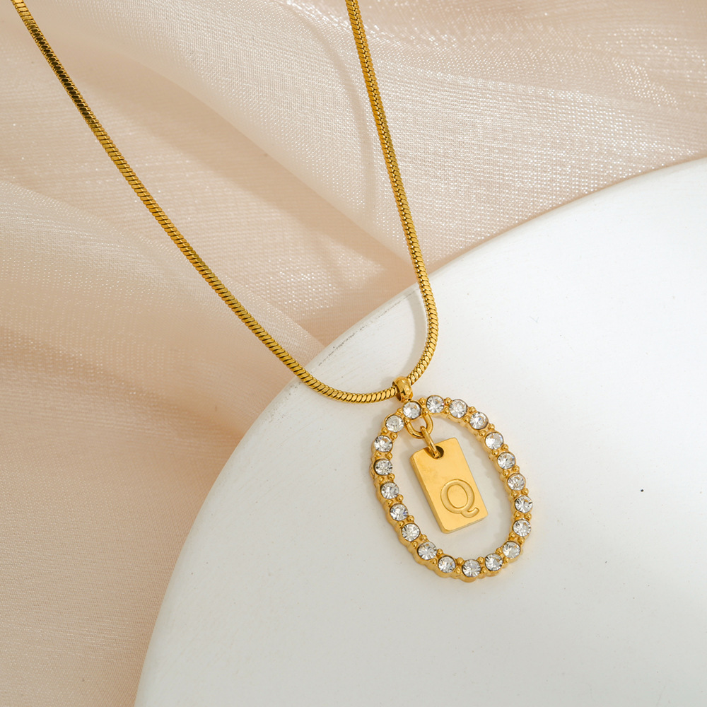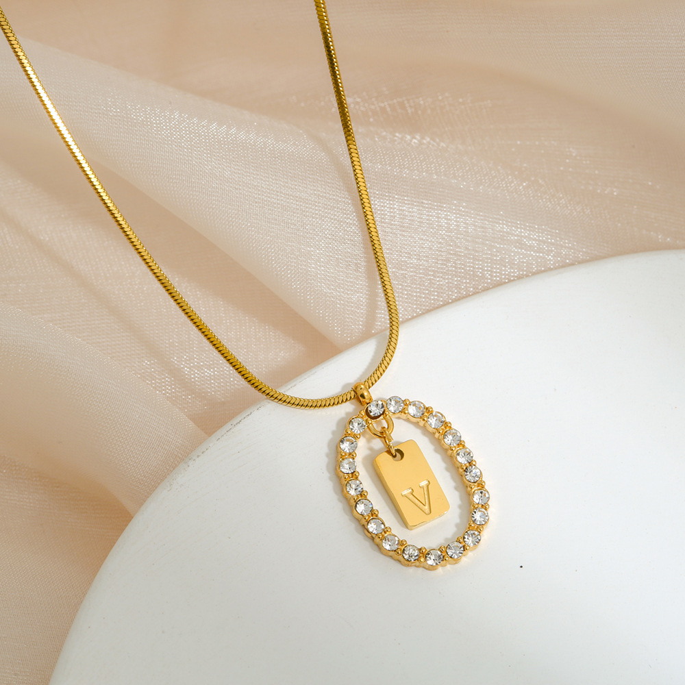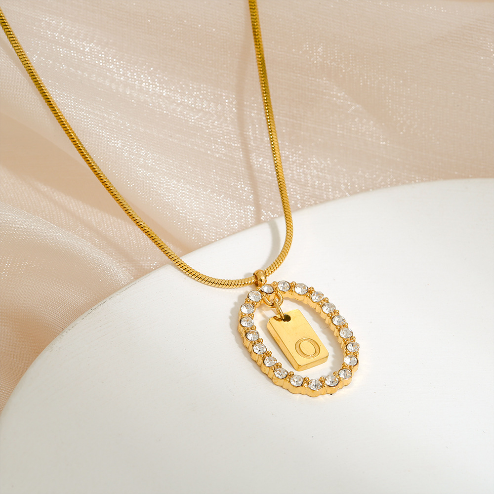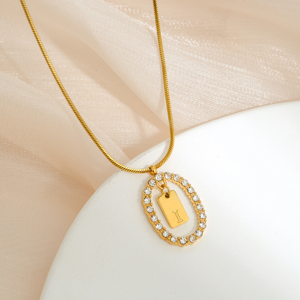 跨境西班牙tiktok不锈钢项链镶钻小众设计26字母通勤高级感锁骨链