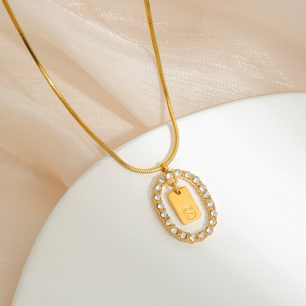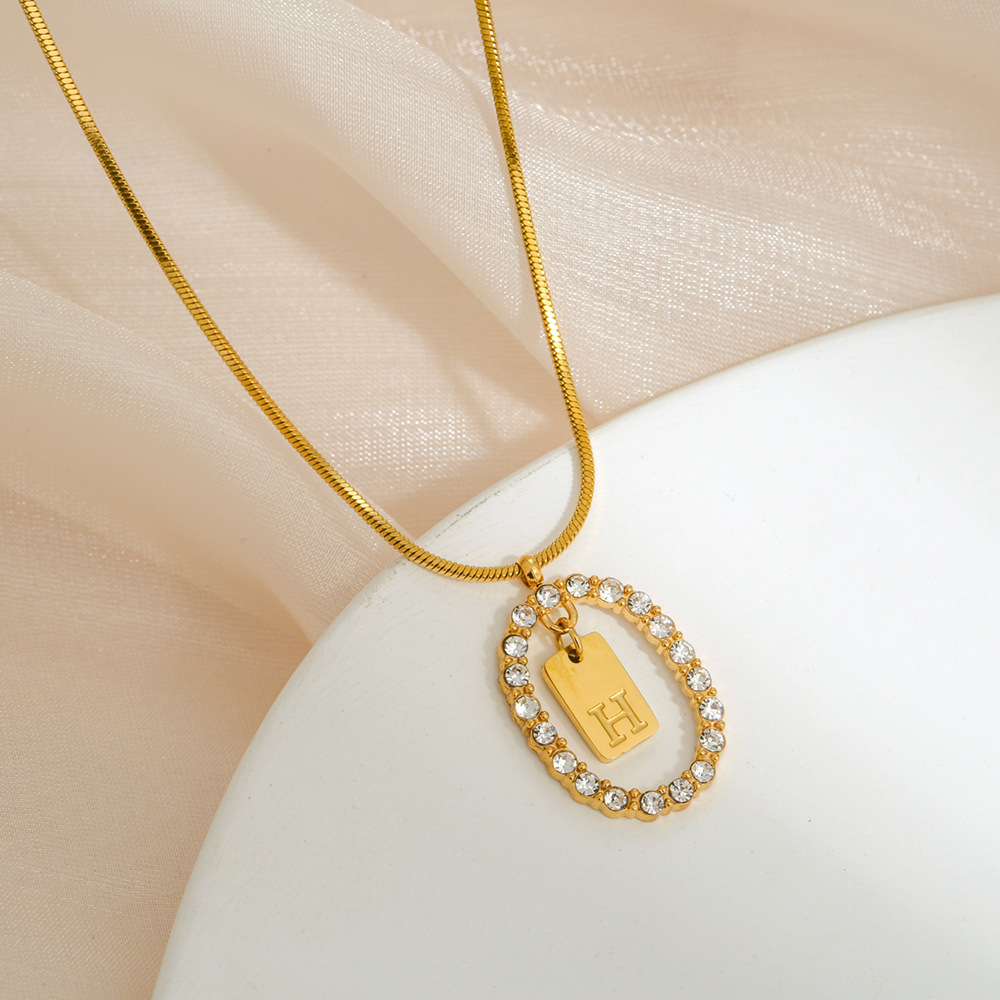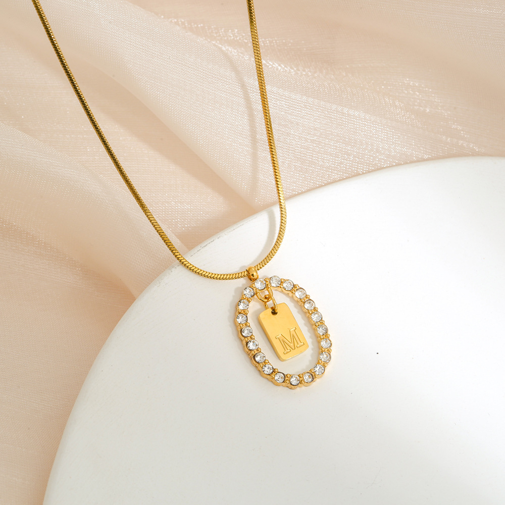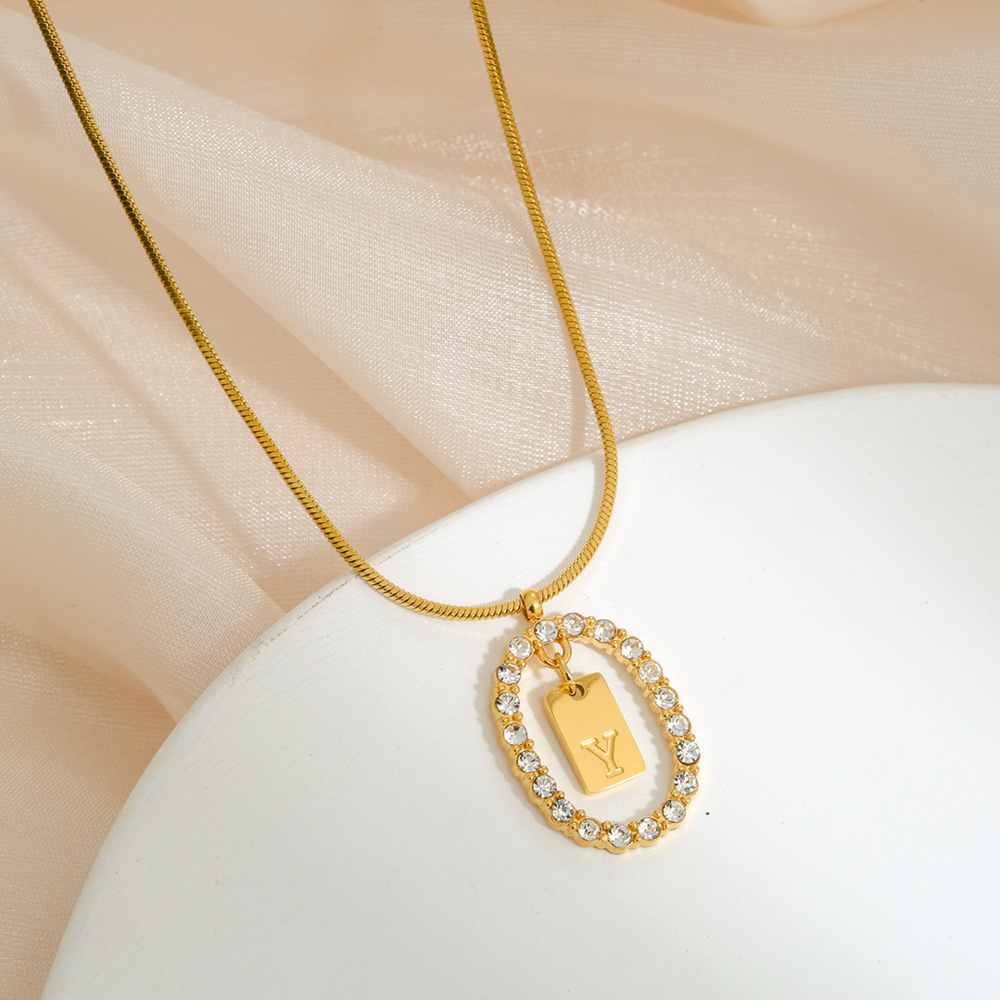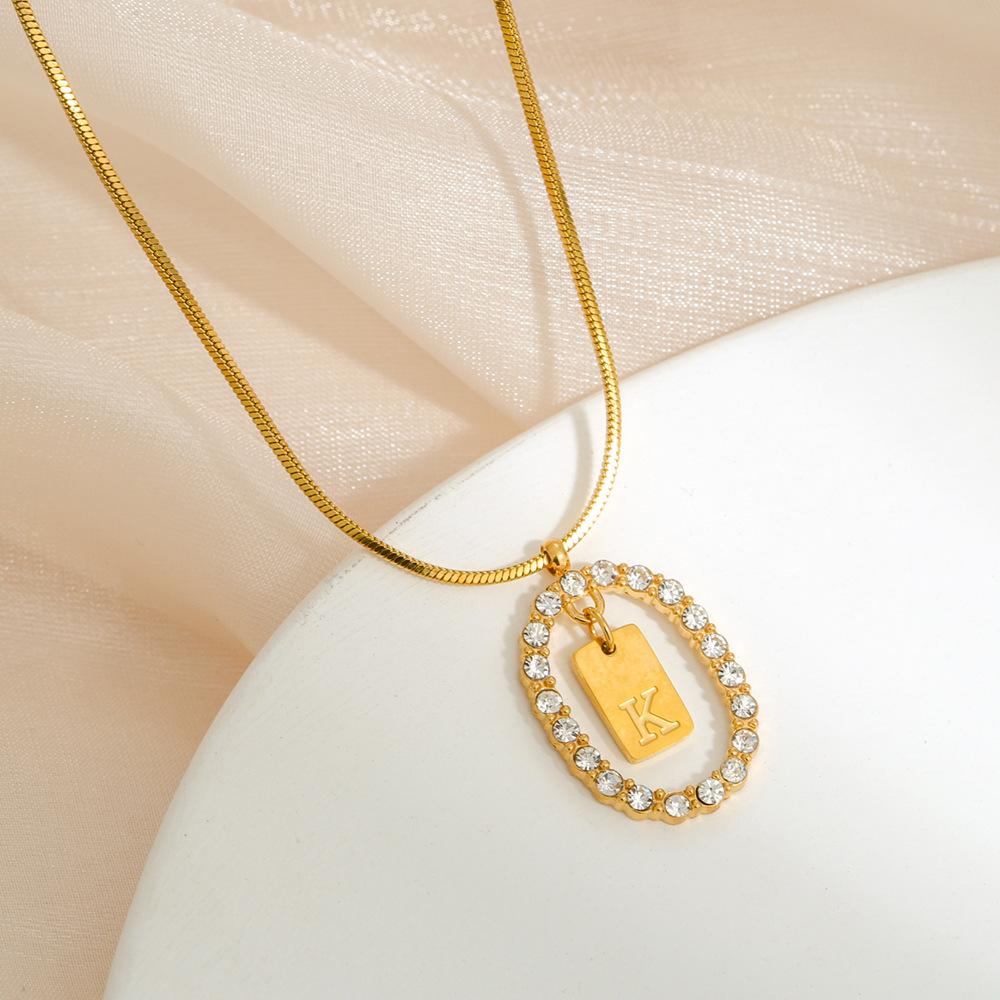 跨境西班牙tiktok不锈钢项链镶钻小众设计26字母通勤高级感锁骨链