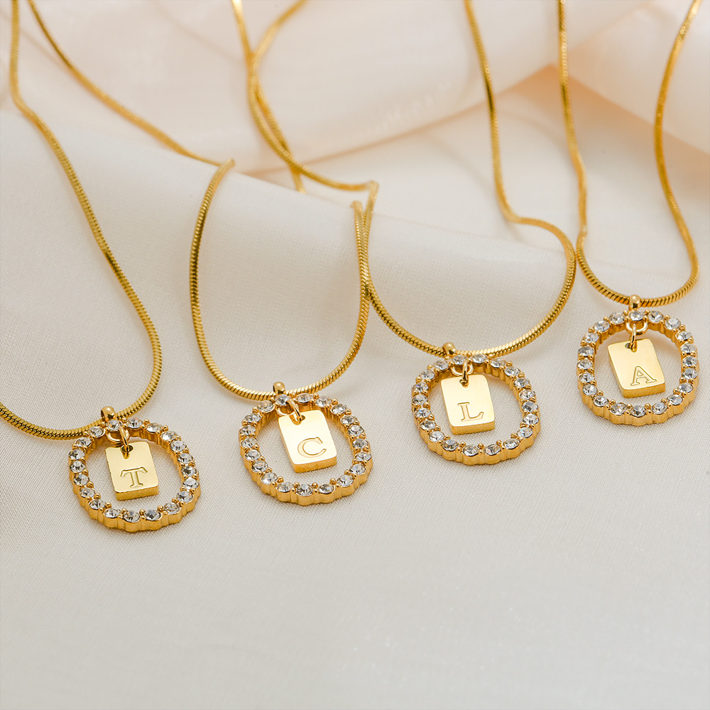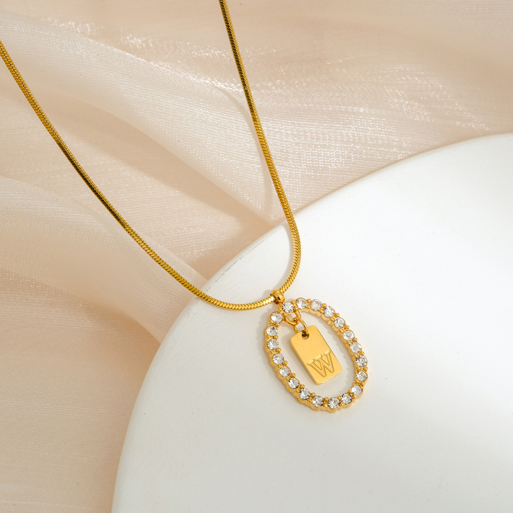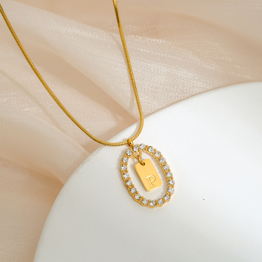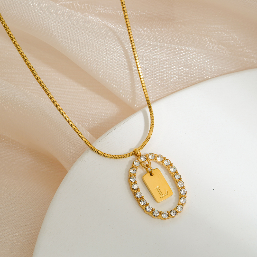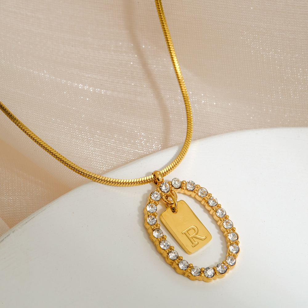 跨境西班牙tiktok不锈钢项链镶钻小众设计26字母通勤高级感锁骨链