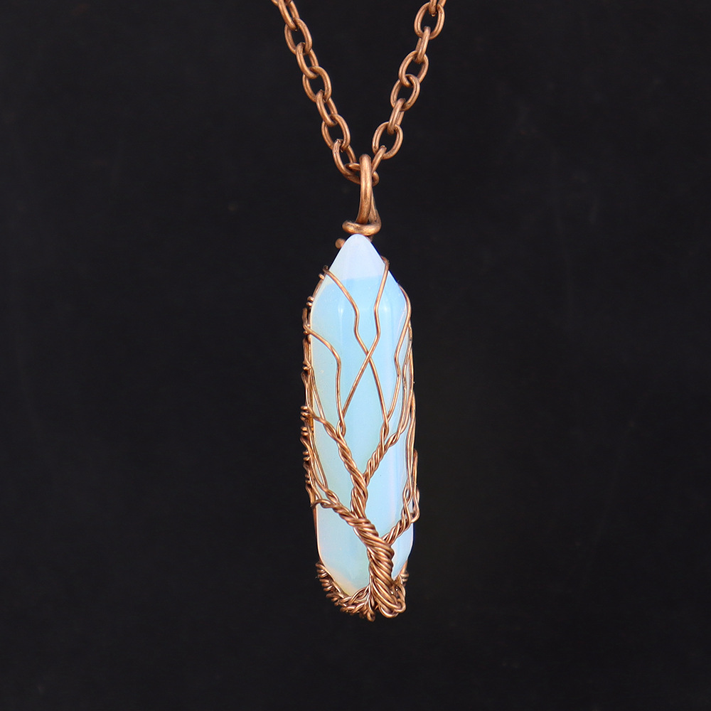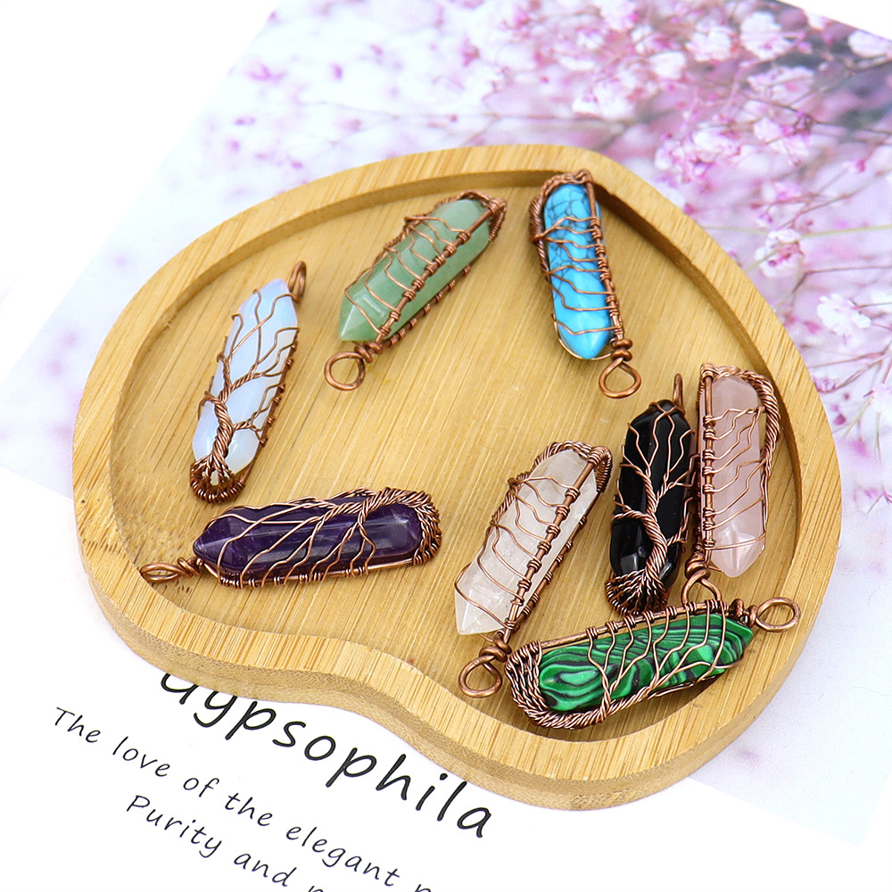 TikTok直播热卖复古手工缠绕绕线天然六角柱生命树六棱柱项链N639