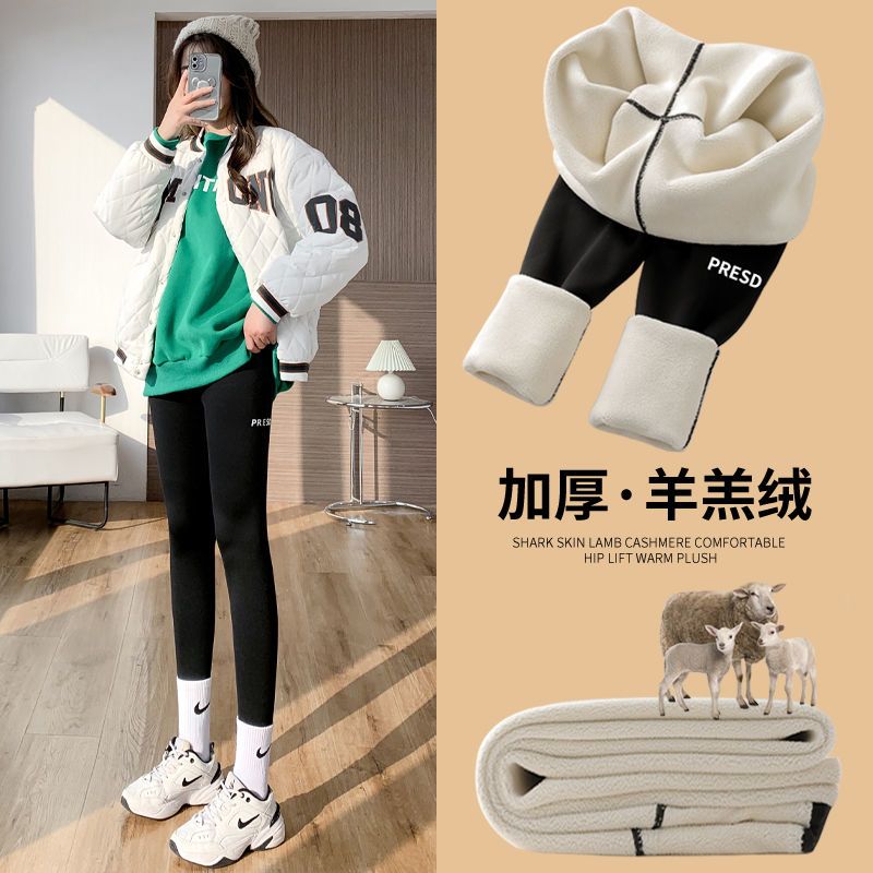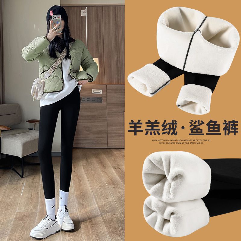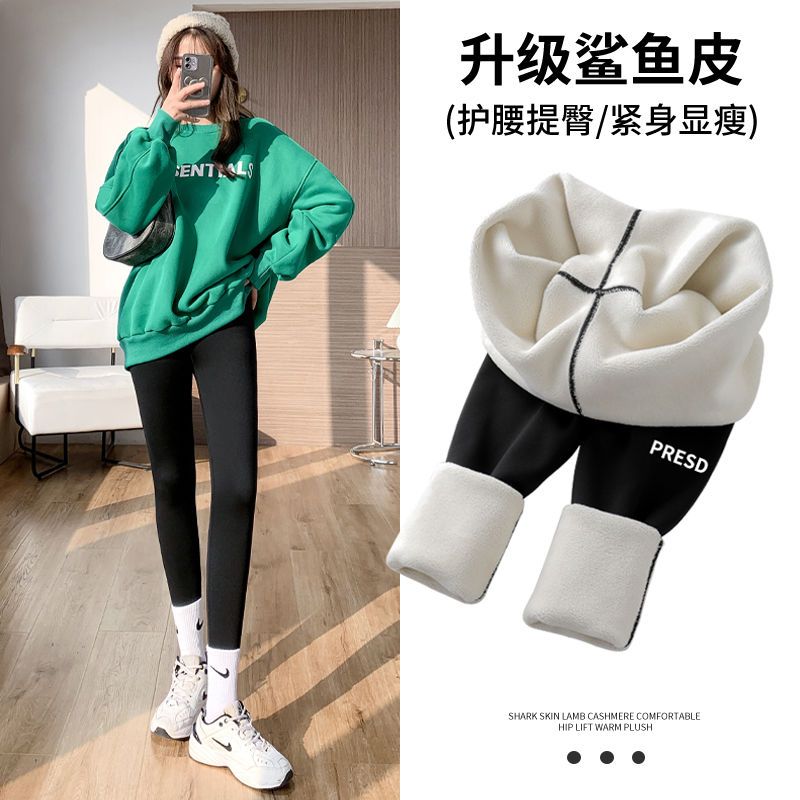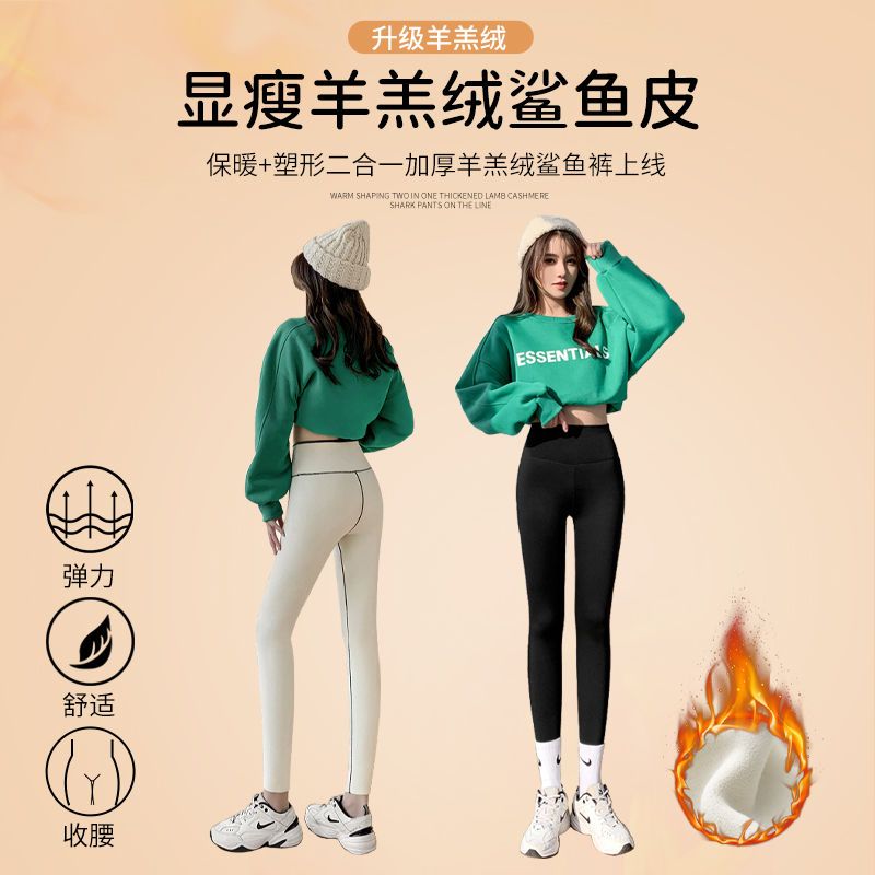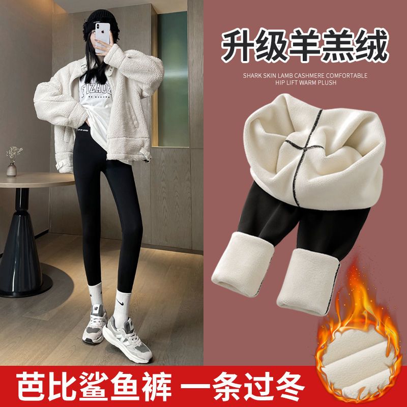 羊羔绒鲨鱼裤外穿秋冬季加厚加绒高腰打底裤女弹力显瘦瑜伽芭比裤