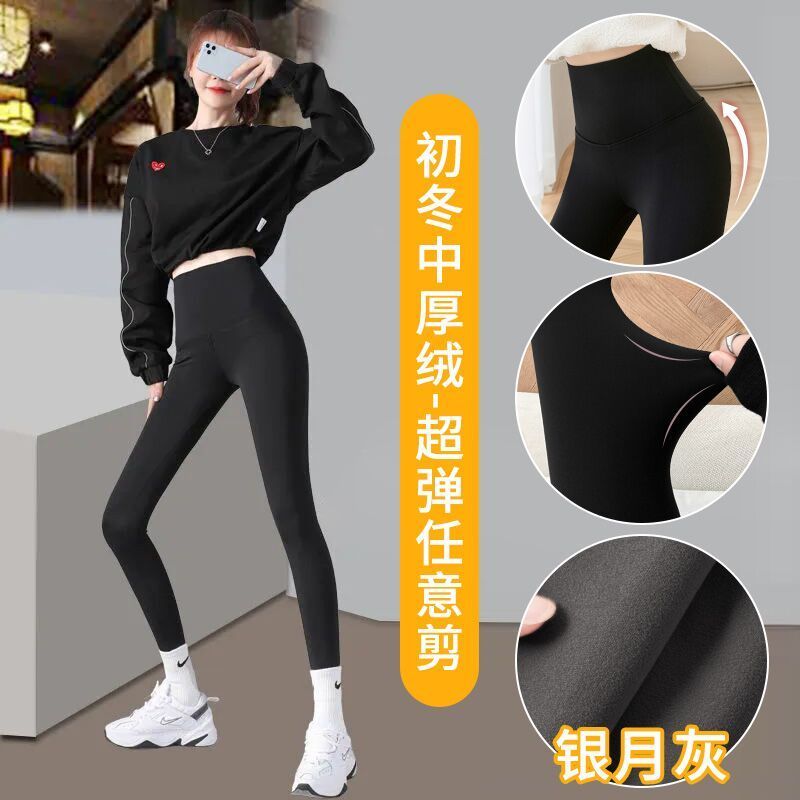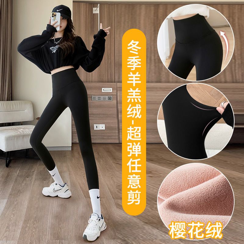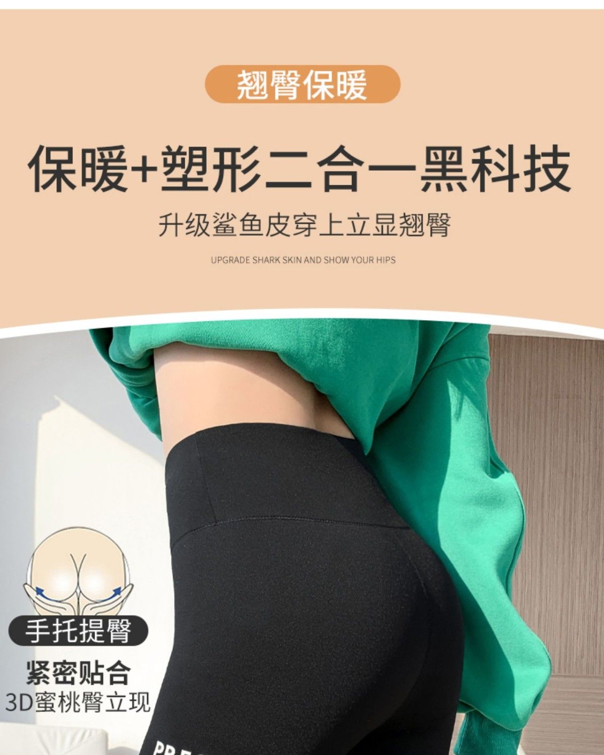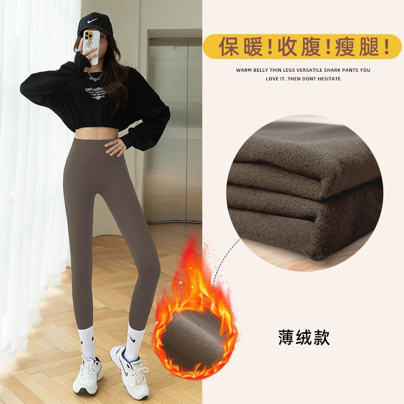 羊羔绒鲨鱼裤外穿秋冬季加厚加绒高腰打底裤女弹力显瘦瑜伽芭比裤