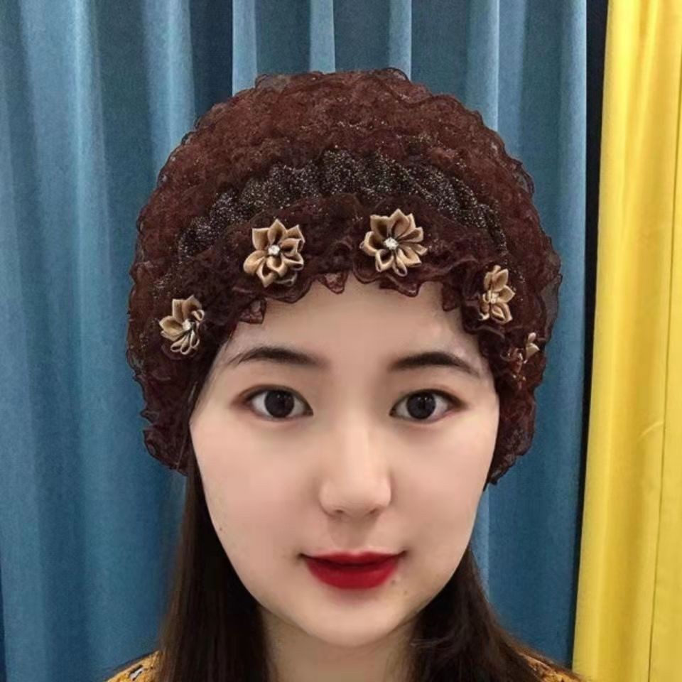 新款花朵包头帽蕾丝帽遮白发帽时尚居家小帽骑车防风帽舞蹈光头帽