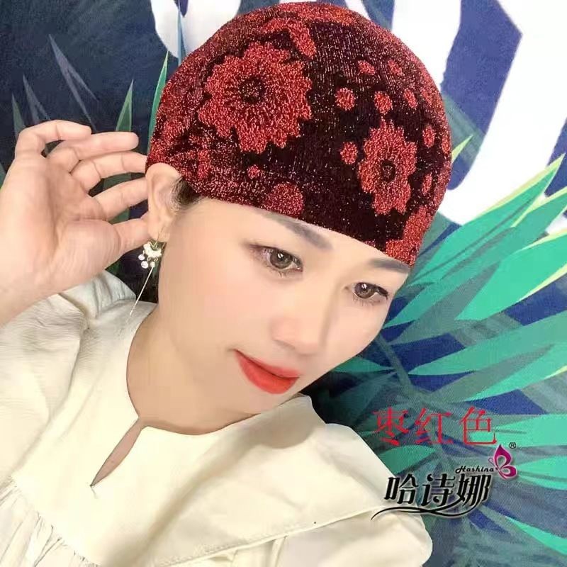 弹性家居女士透气新款白发四季印花妈妈遮帽包头小帽薄款款帽百搭