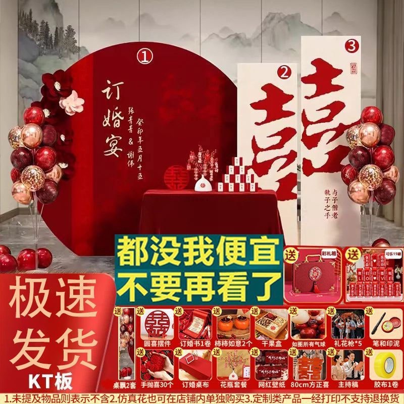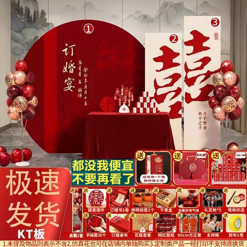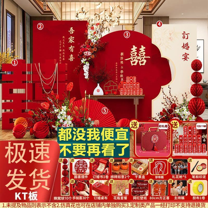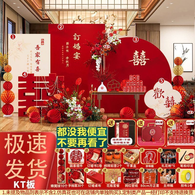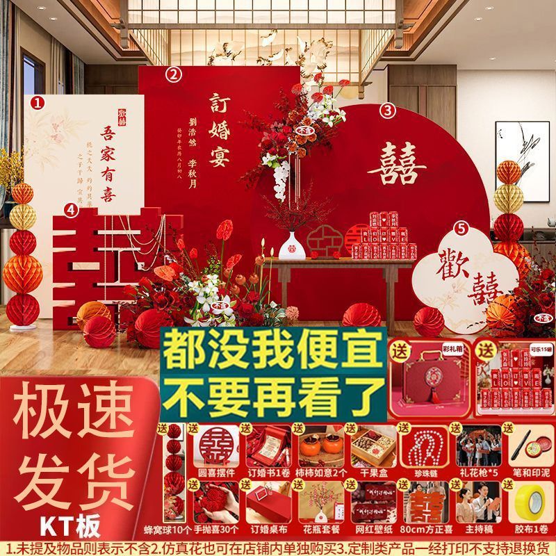 新中式订婚背景板订婚宴装饰结婚kt板布置全套摆件摆台用品大全