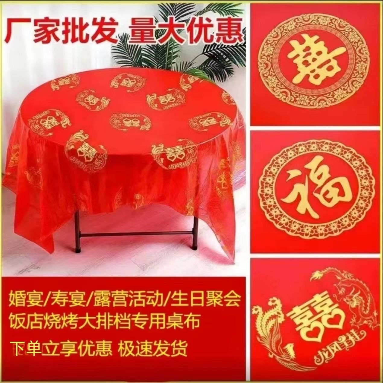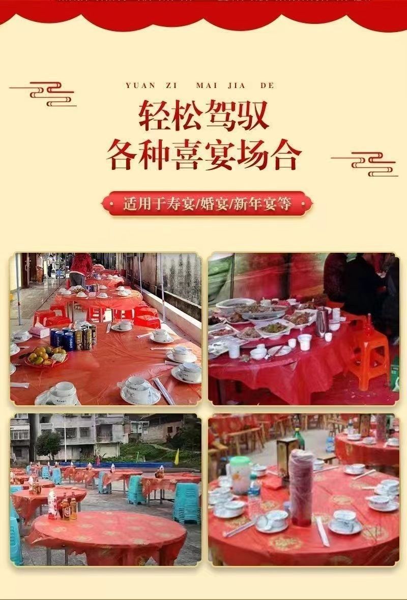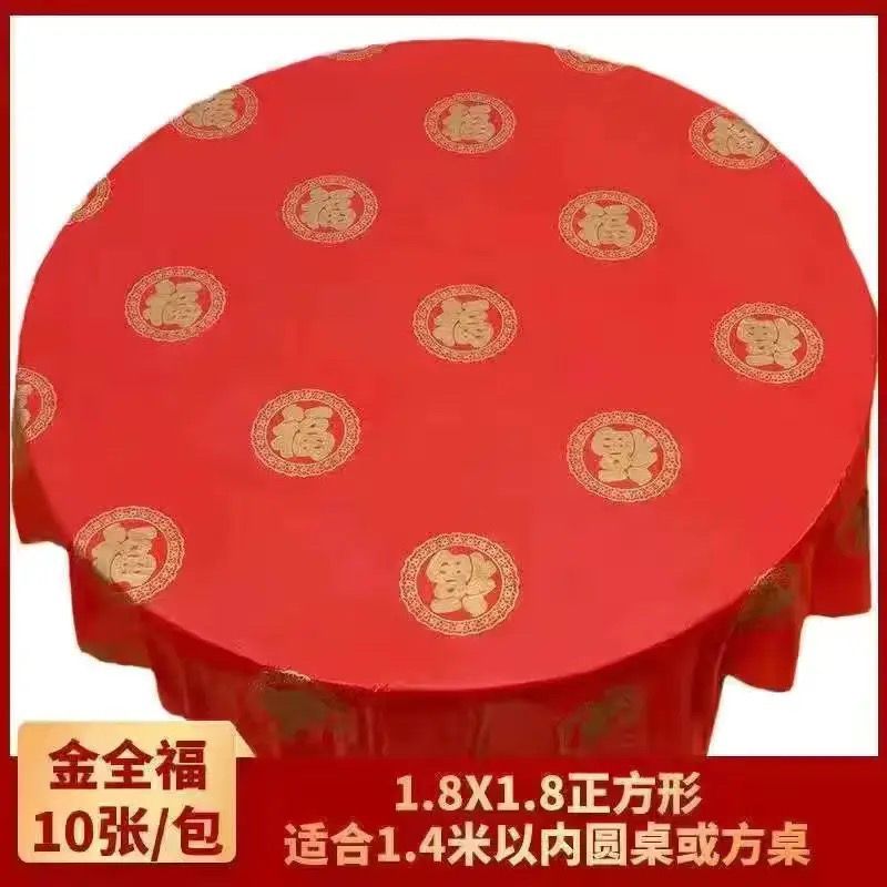 一次性桌布结婚家用加厚酒席圆桌结婚喜宴餐桌布喜字喜庆喜事台布