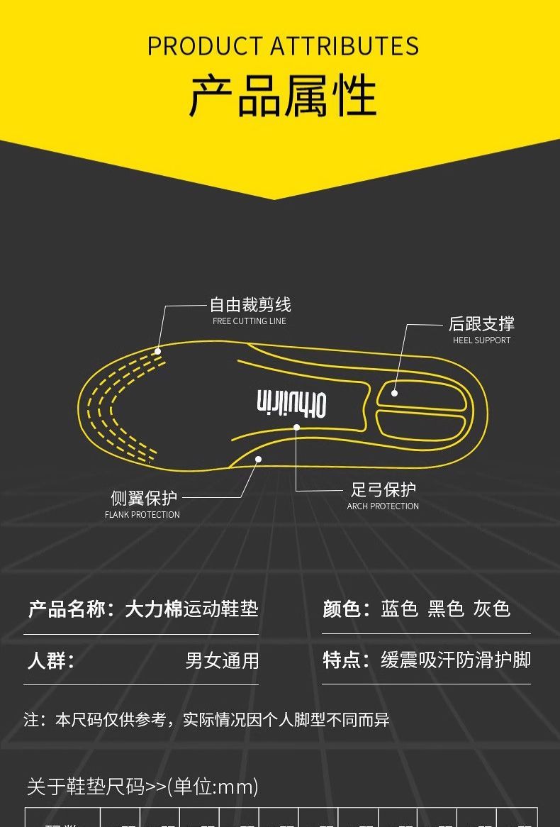 足印部落运动鞋垫男女运动高弹减震加厚超软久站不累吸汗防臭透气