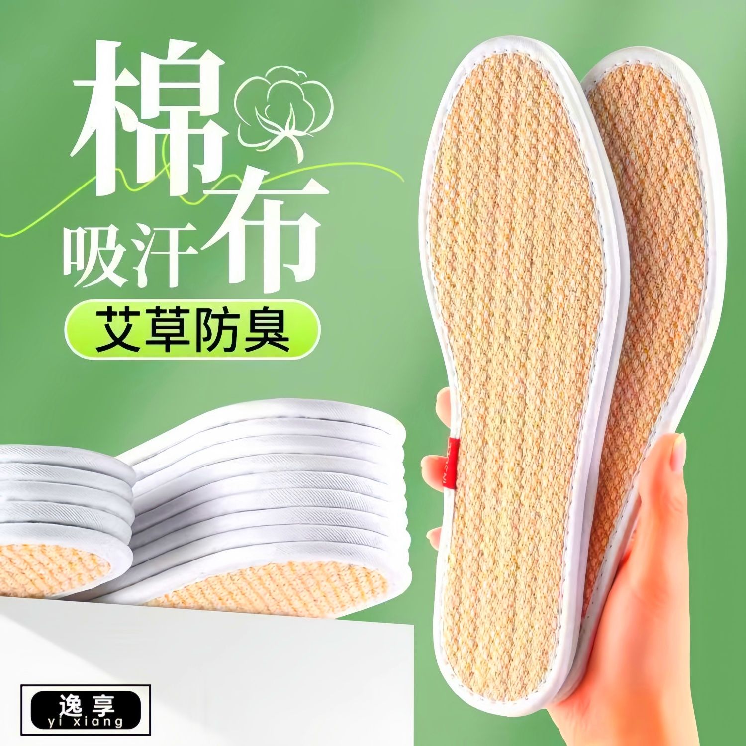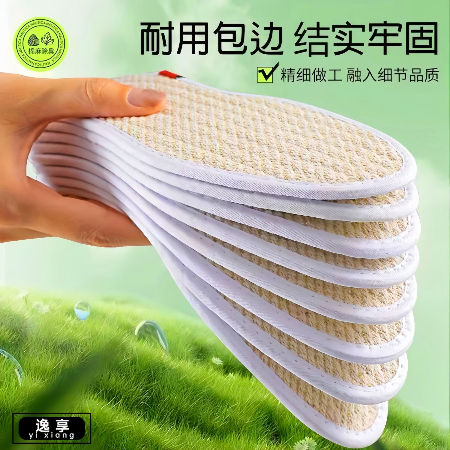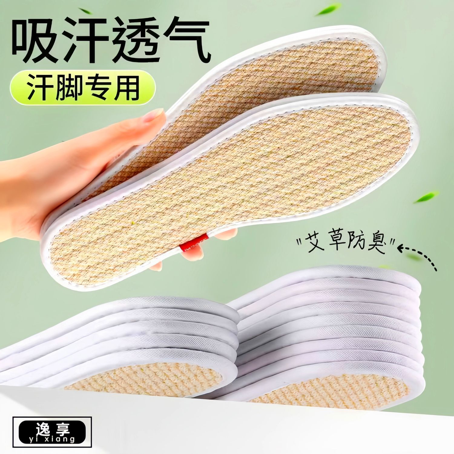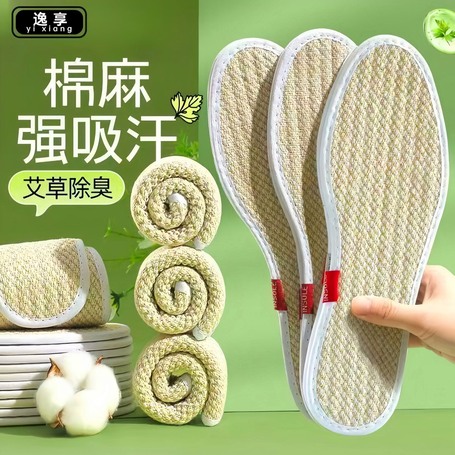 手工棉麻鞋垫女款艾草除臭软底加厚运动男士透气吸汗防臭皮鞋垫子