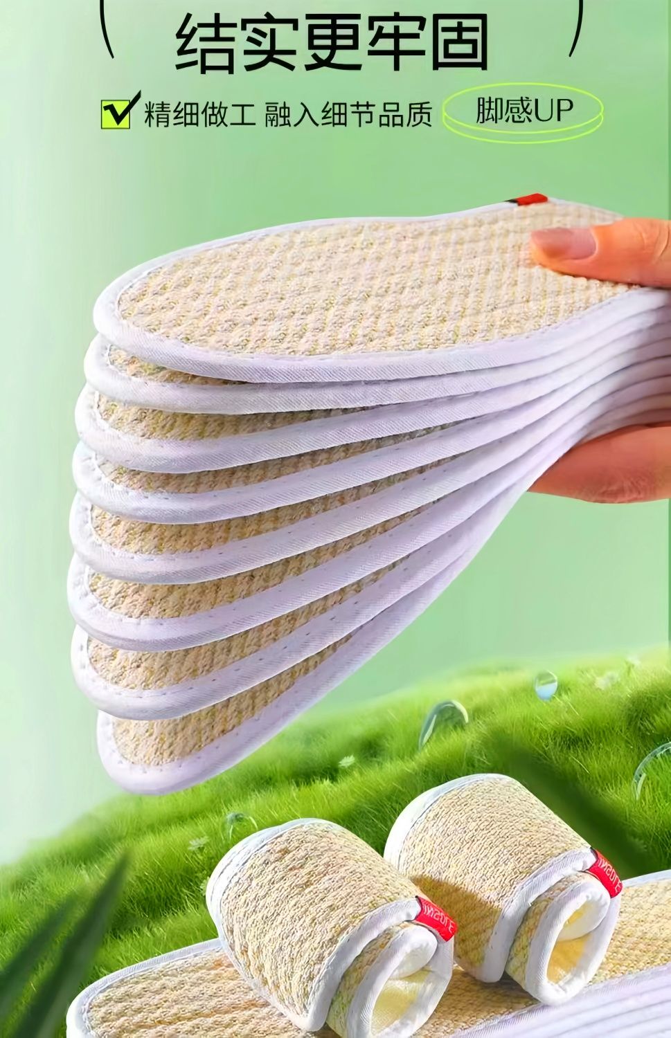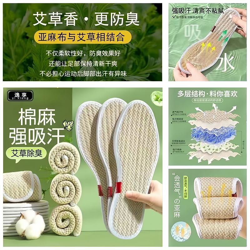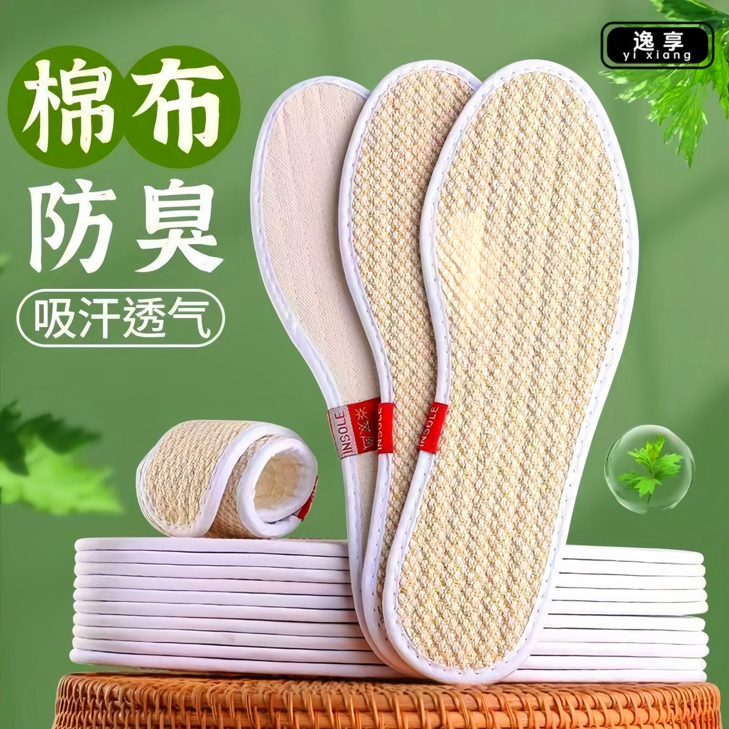 手工棉麻鞋垫女款艾草除臭软底加厚运动男士透气吸汗防臭皮鞋垫子