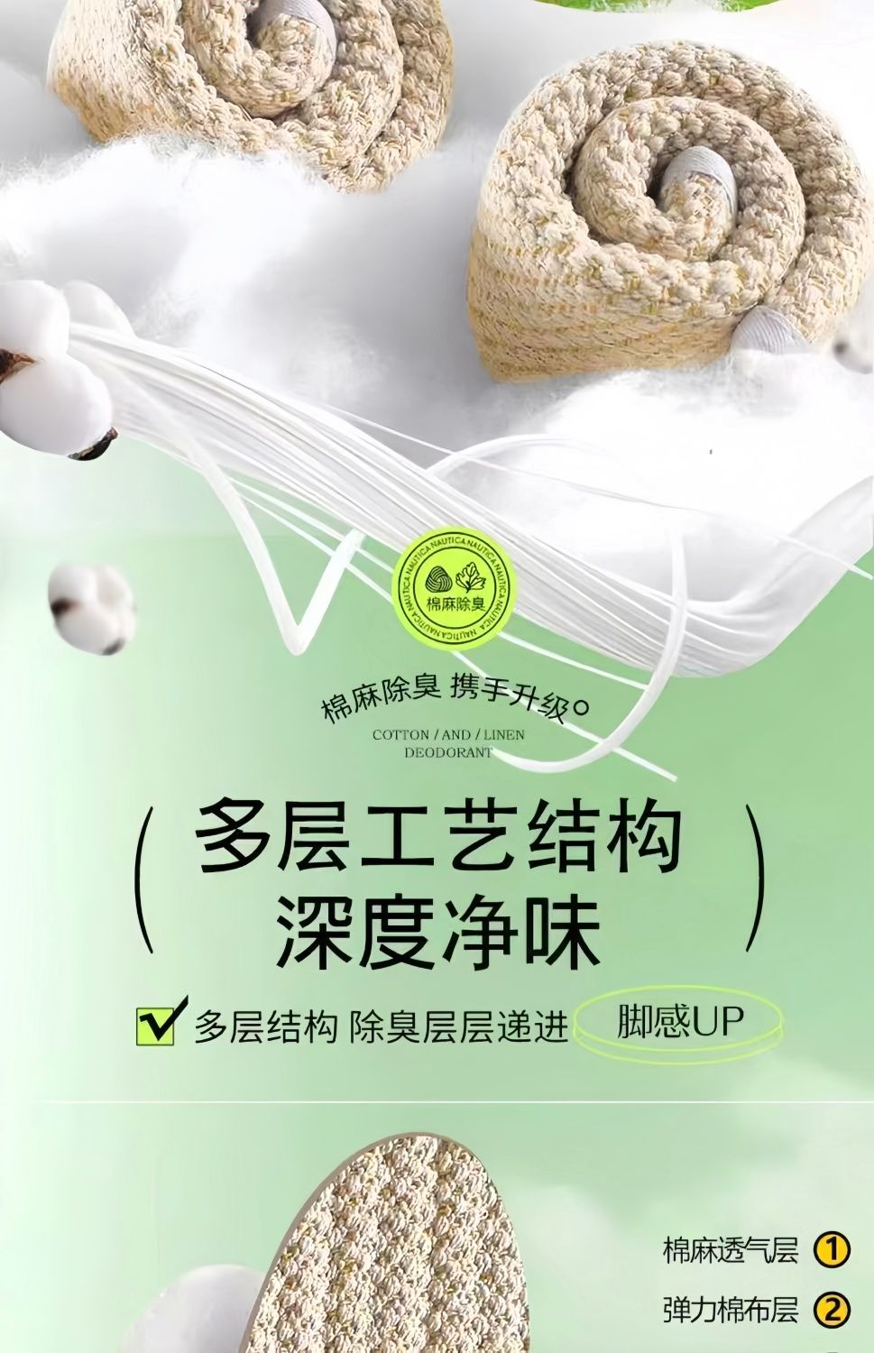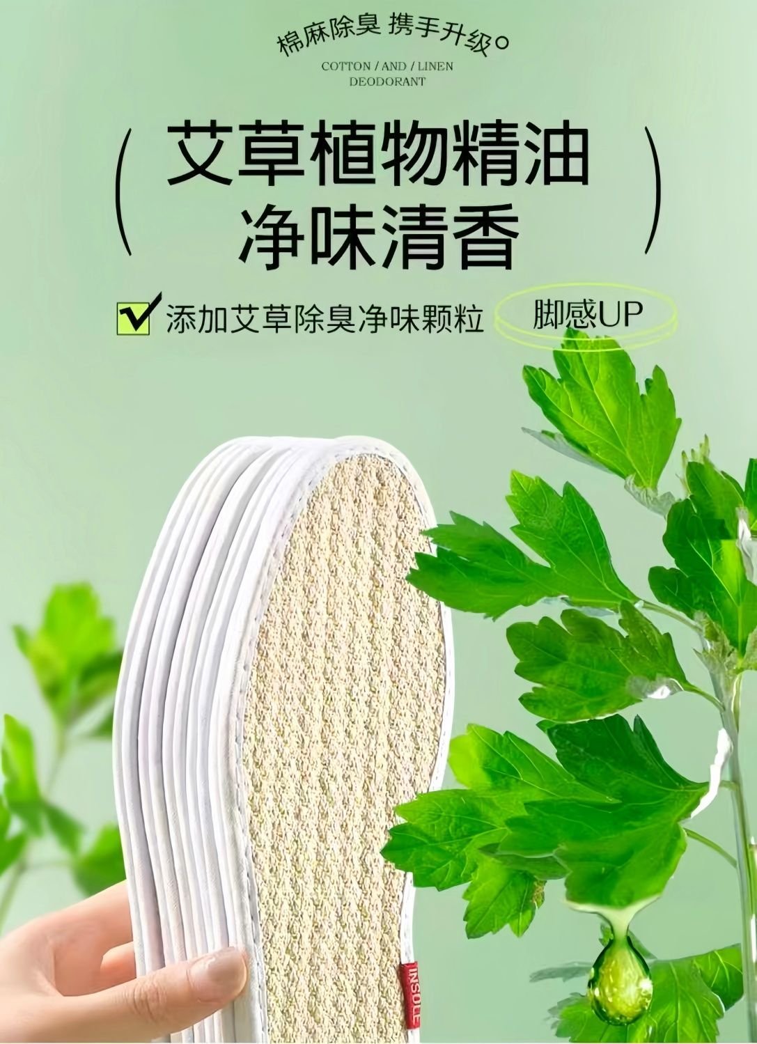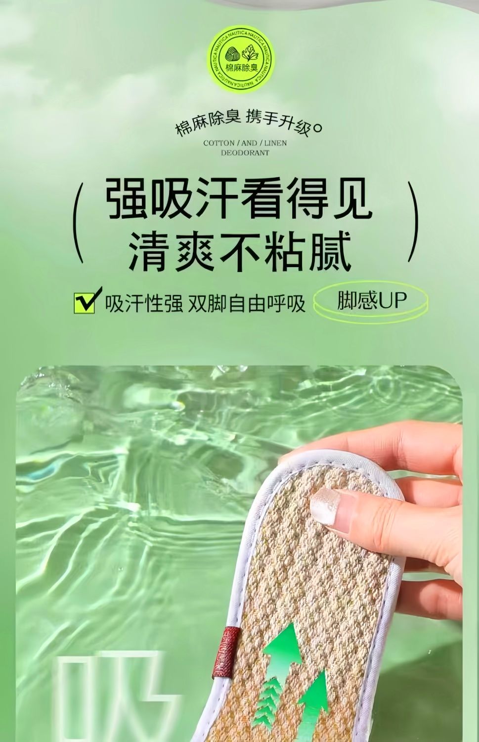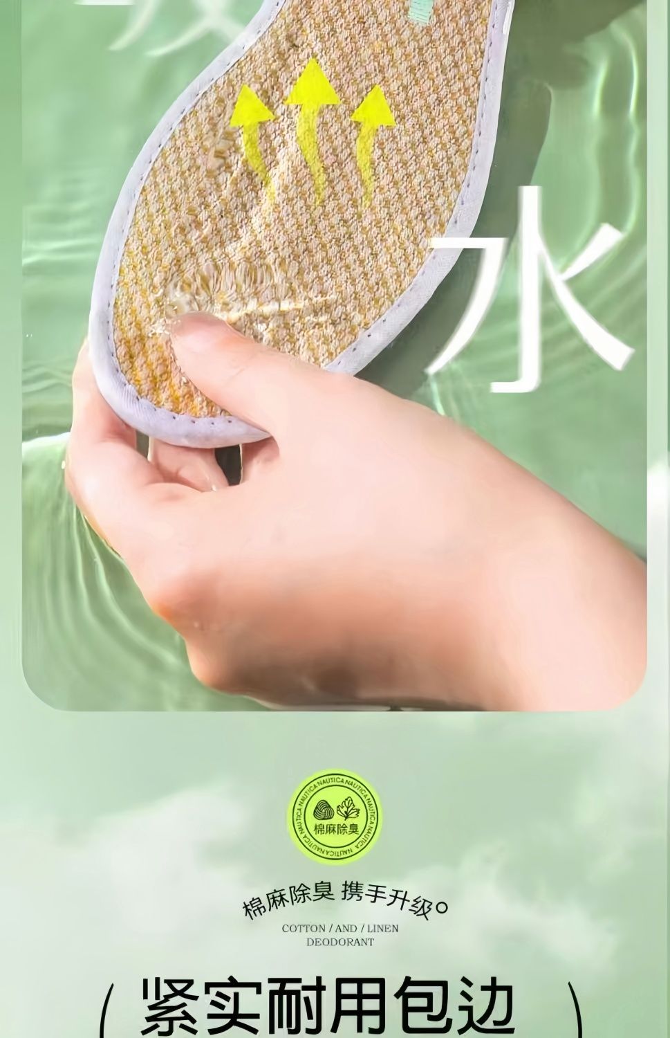 手工棉麻鞋垫女款艾草除臭软底加厚运动男士透气吸汗防臭皮鞋垫子