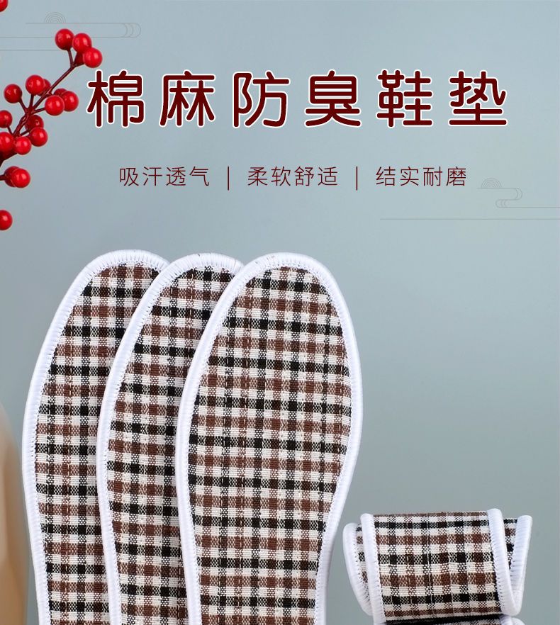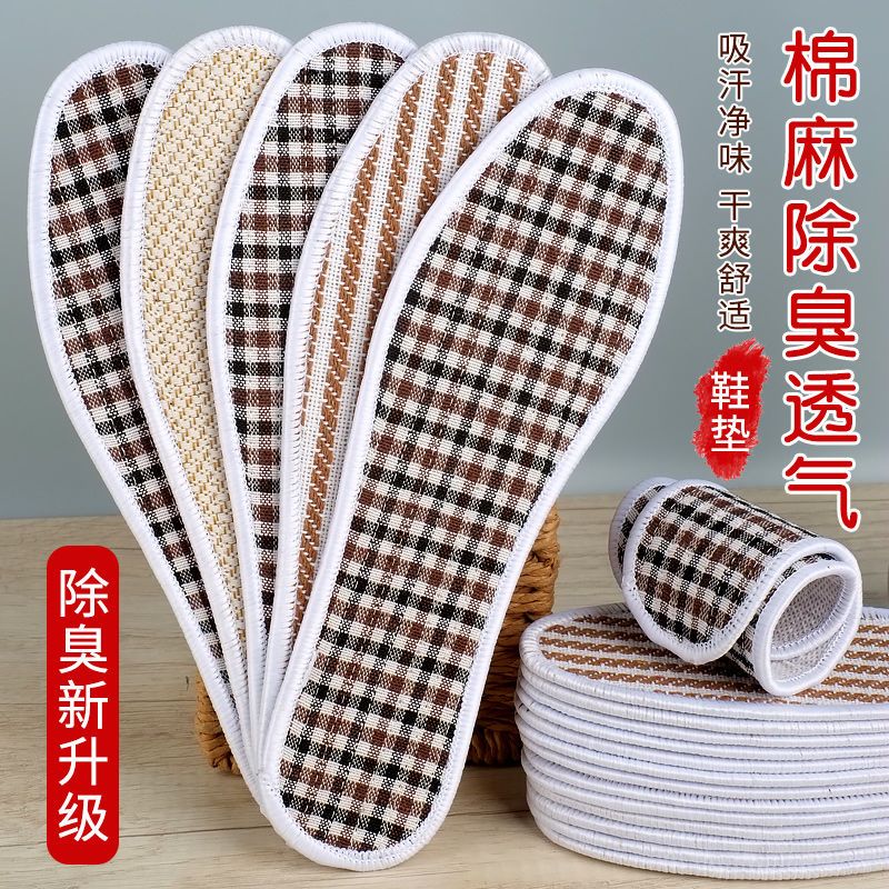 手工棉麻鞋垫子防臭透气男女软底舒适吸汗加厚去脚臭四季通用批发