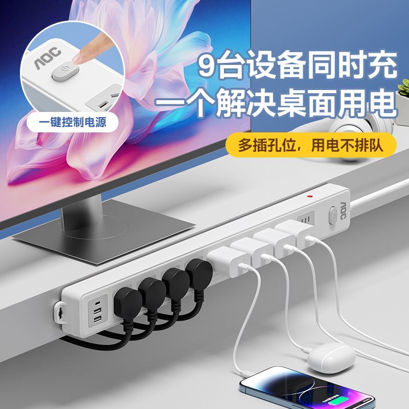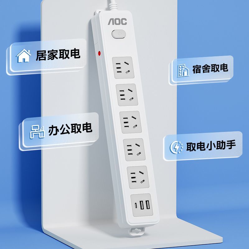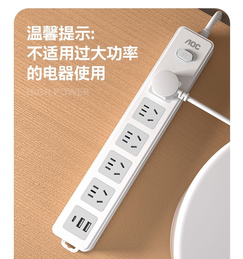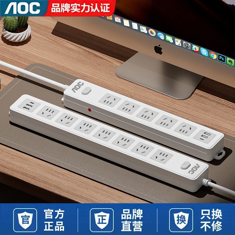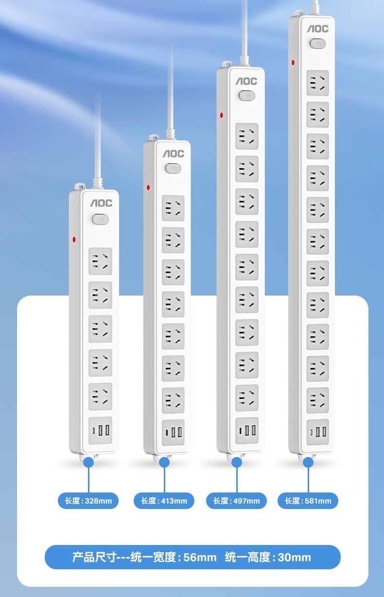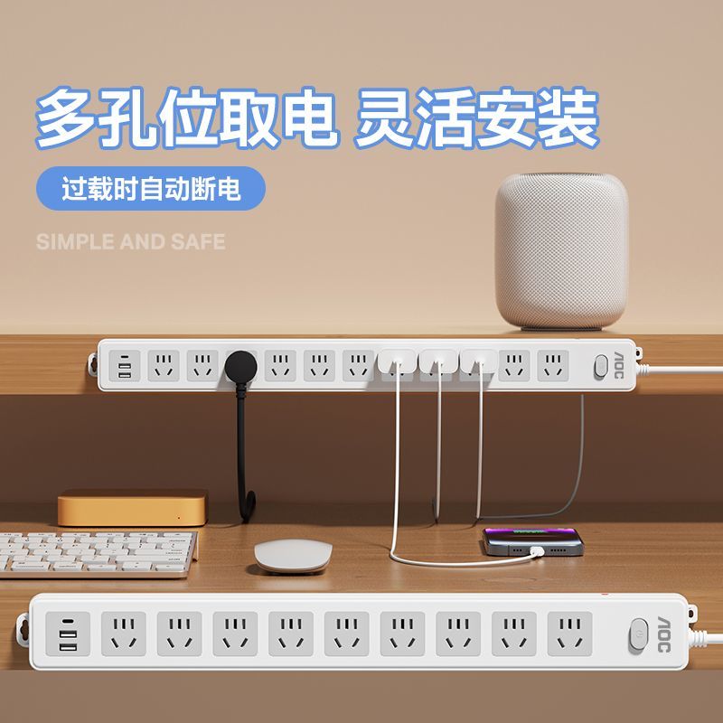 AOC过载家用保护多功能接线板插座长线线板USB无线多孔排插插排