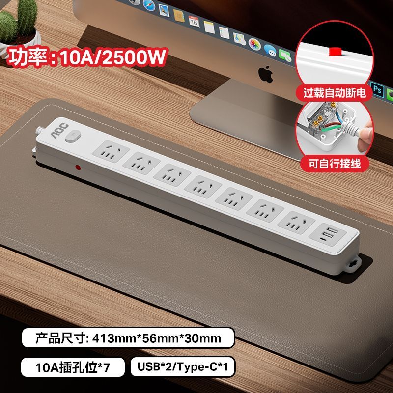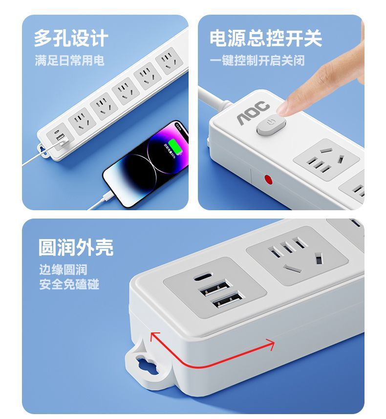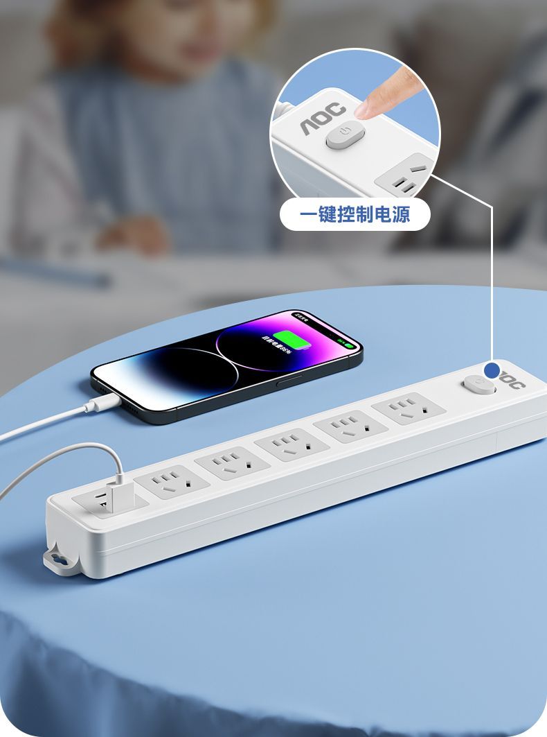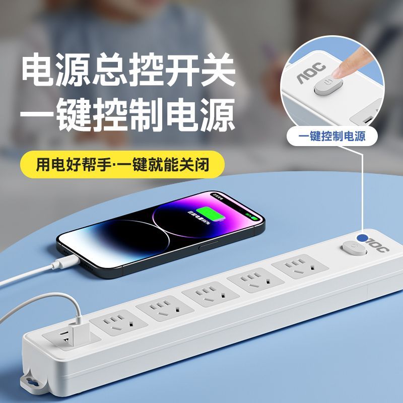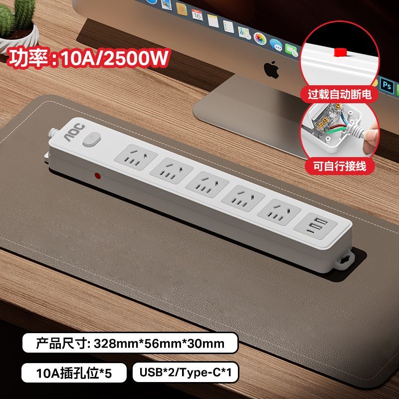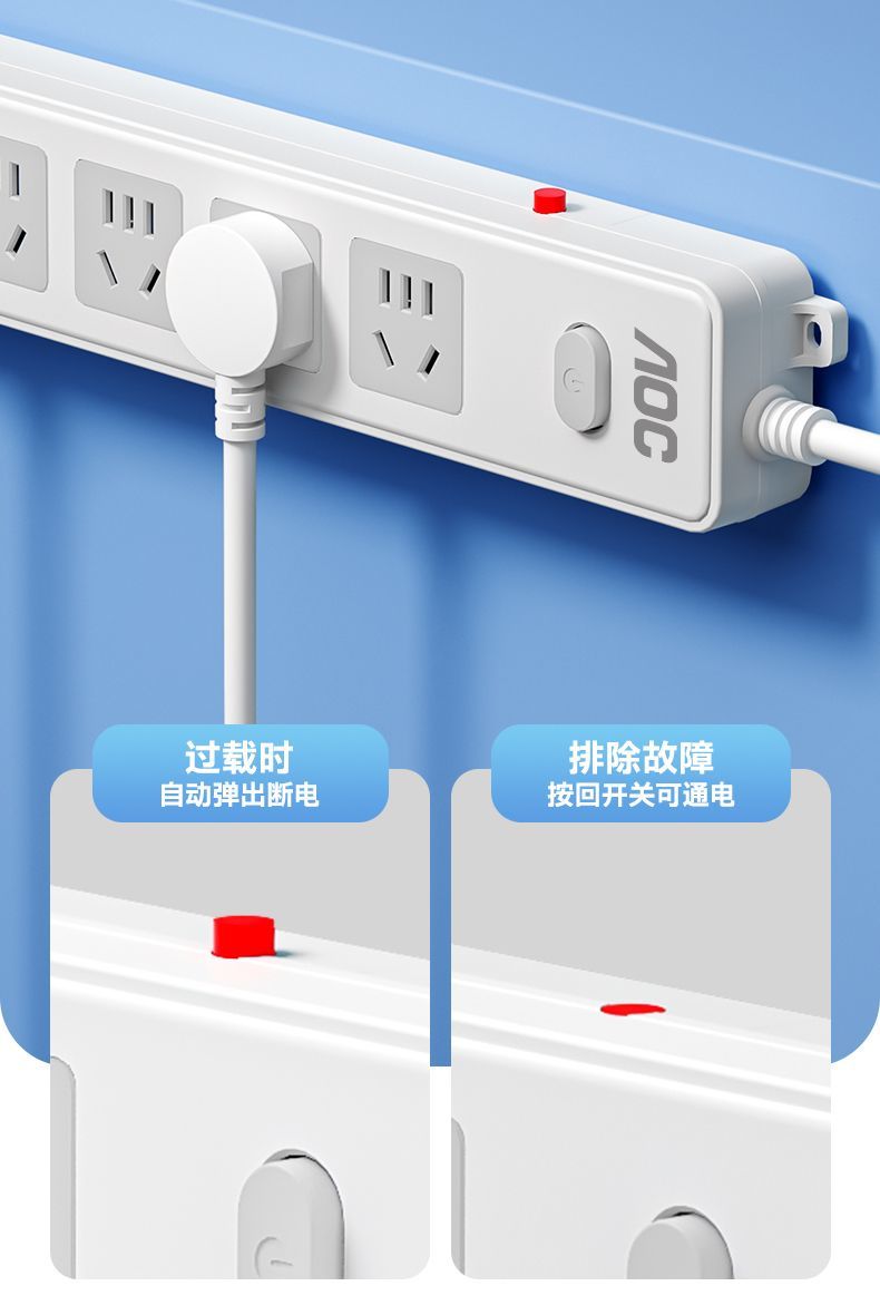 AOC过载家用保护多功能接线板插座长线线板USB无线多孔排插插排