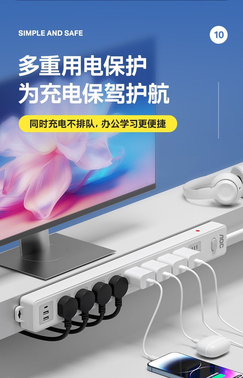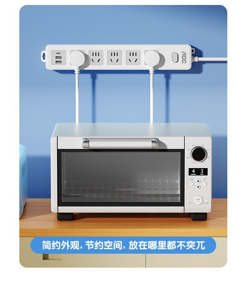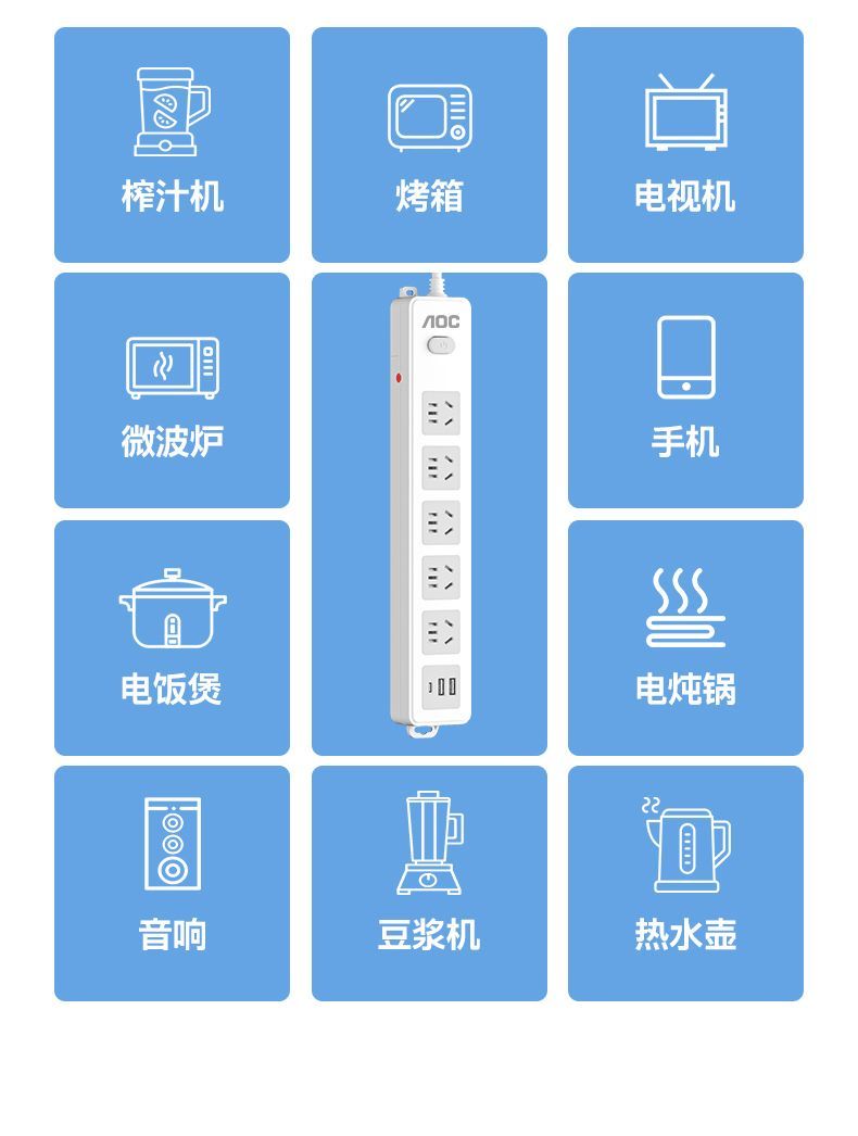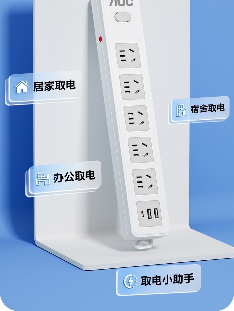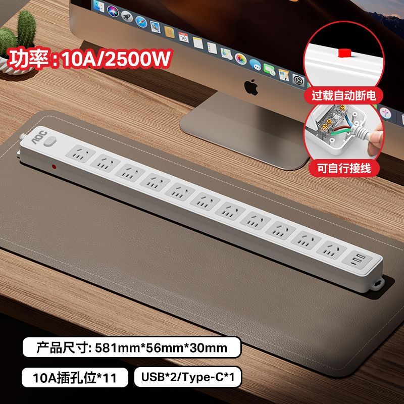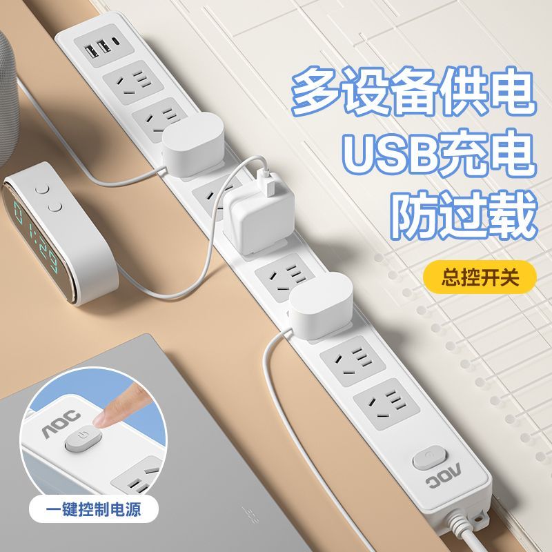 AOC过载家用保护多功能接线板插座长线线板USB无线多孔排插插排
