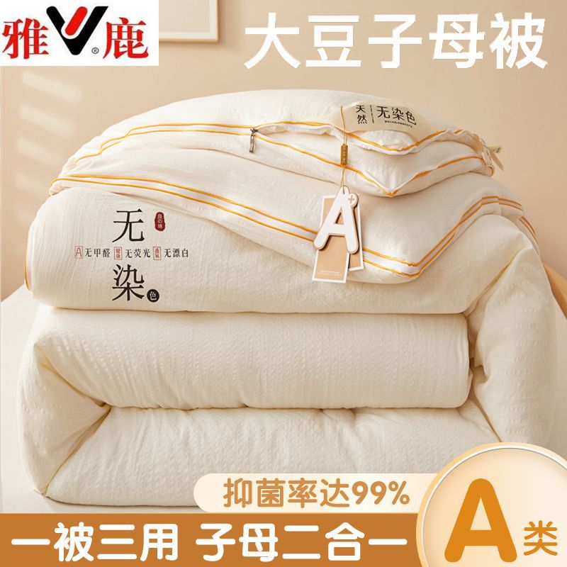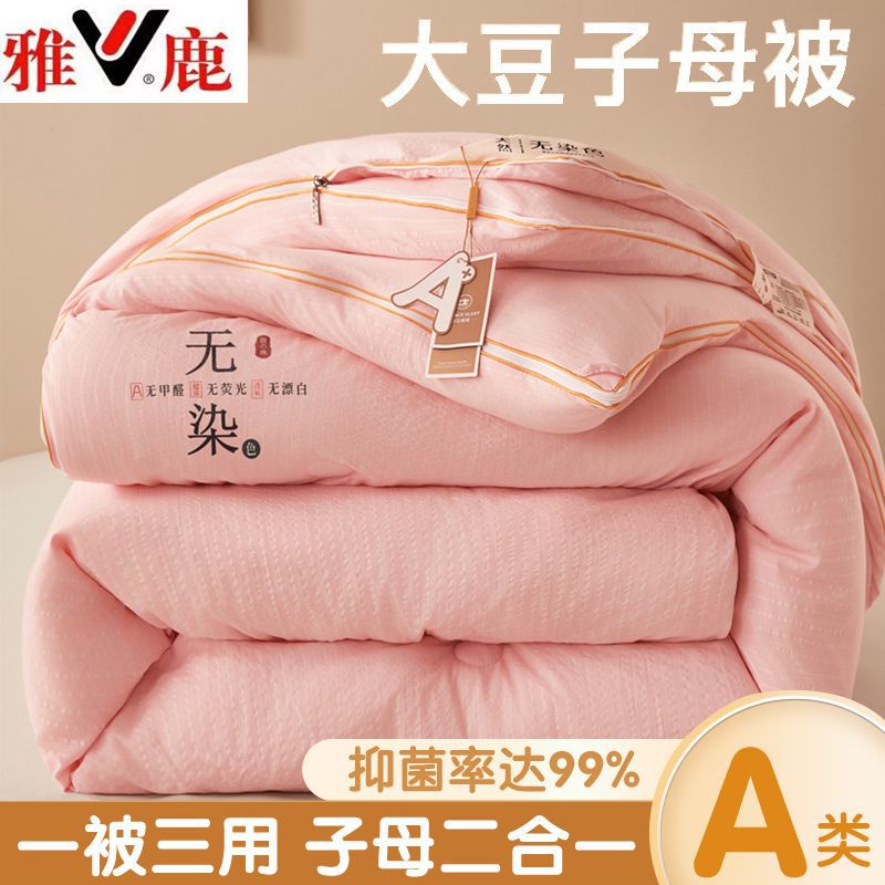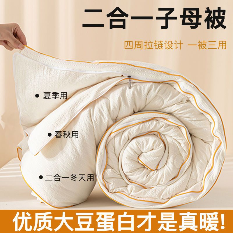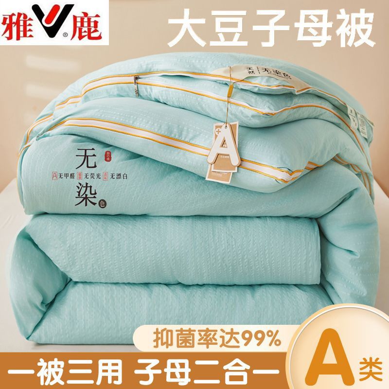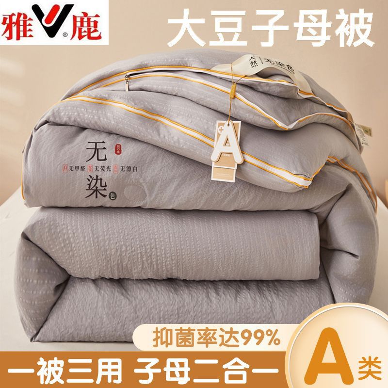 雅鹿大豆纤维被子母被二合一拉链款春秋被冬被棉被加厚保暖被芯